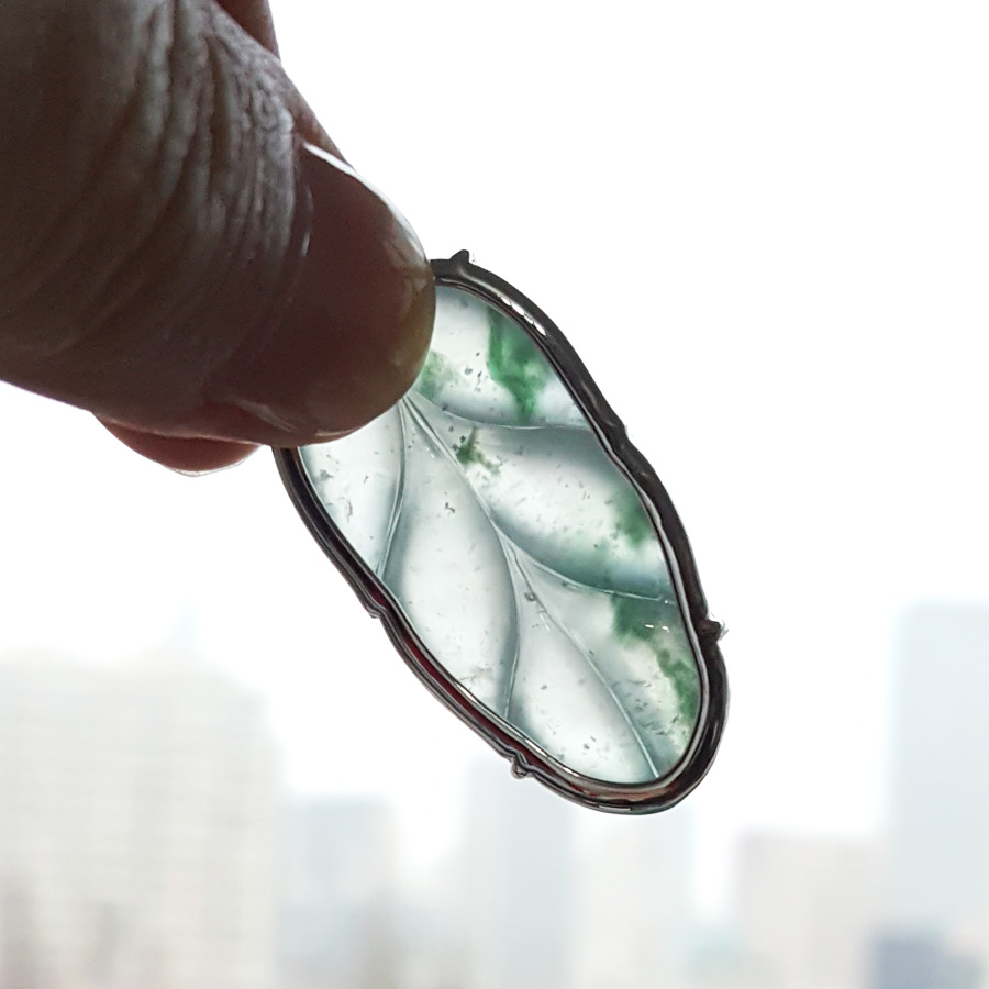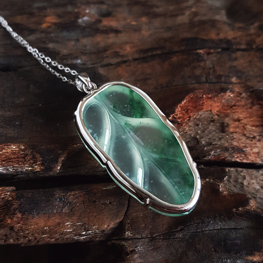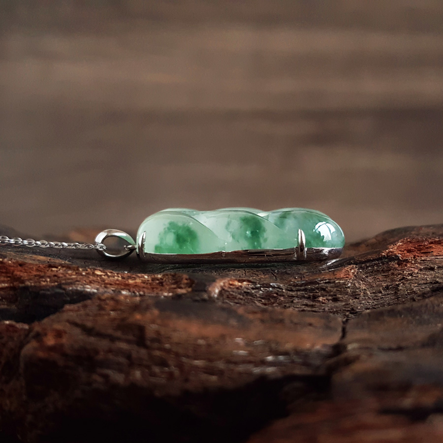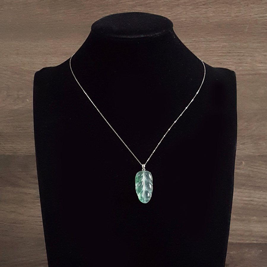名称 | AU750收藏级白金镶天然木那高冰种飘蓝花叶子(金枝玉叶)翡翠吊坠项链 |