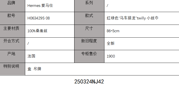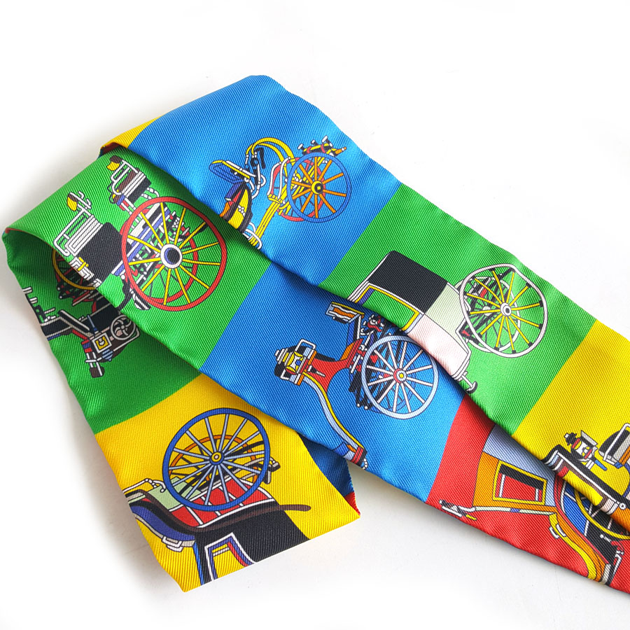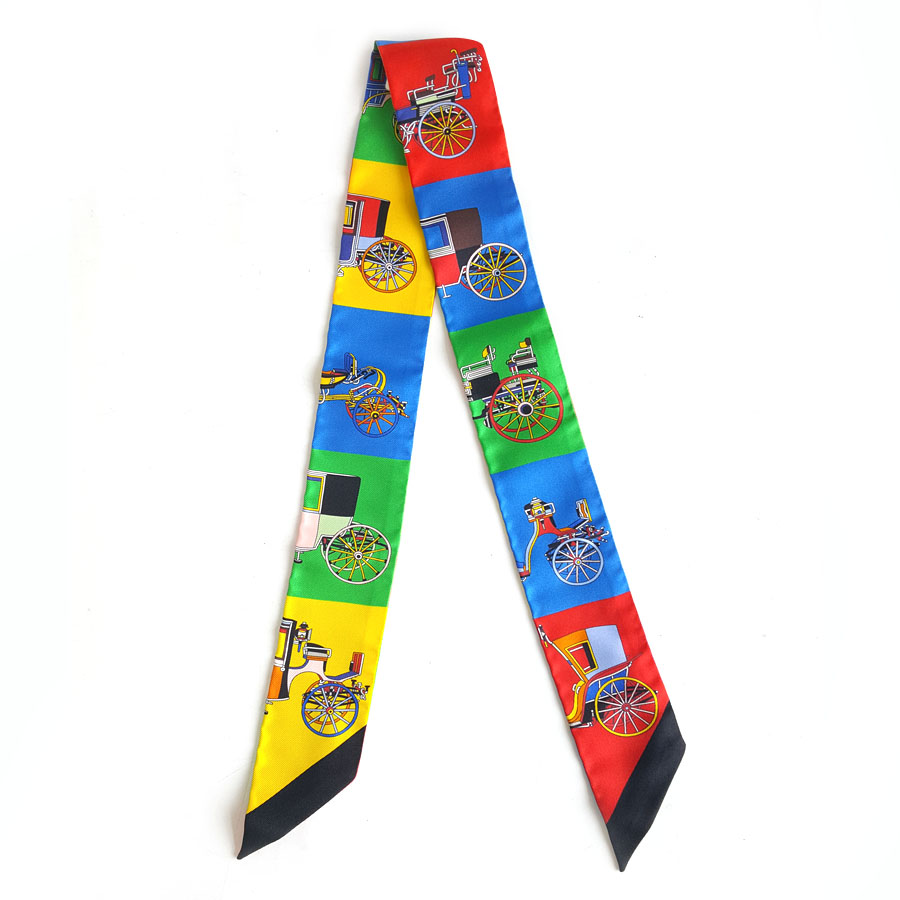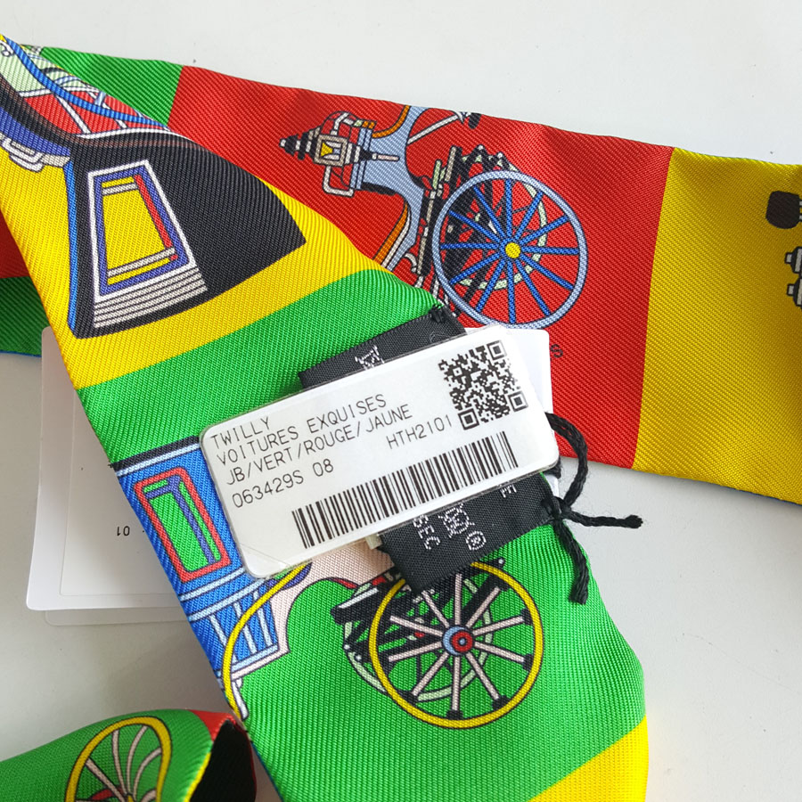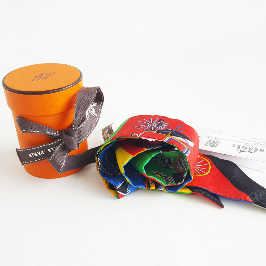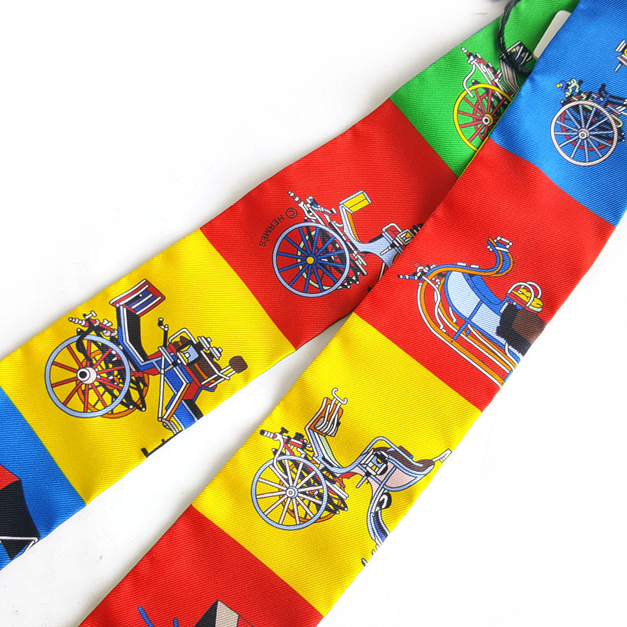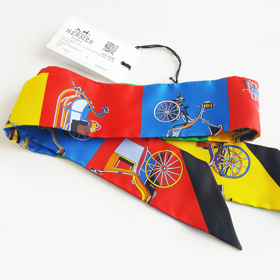 【全新】Hermes爱马仕 红绿色“马车接龙”twilly小丝巾 250324NJ42
