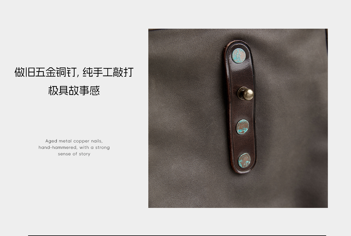ROMI STUDIO 首饰袋 水染头层牛皮手工铜钉单肩托特包RWCAP05947