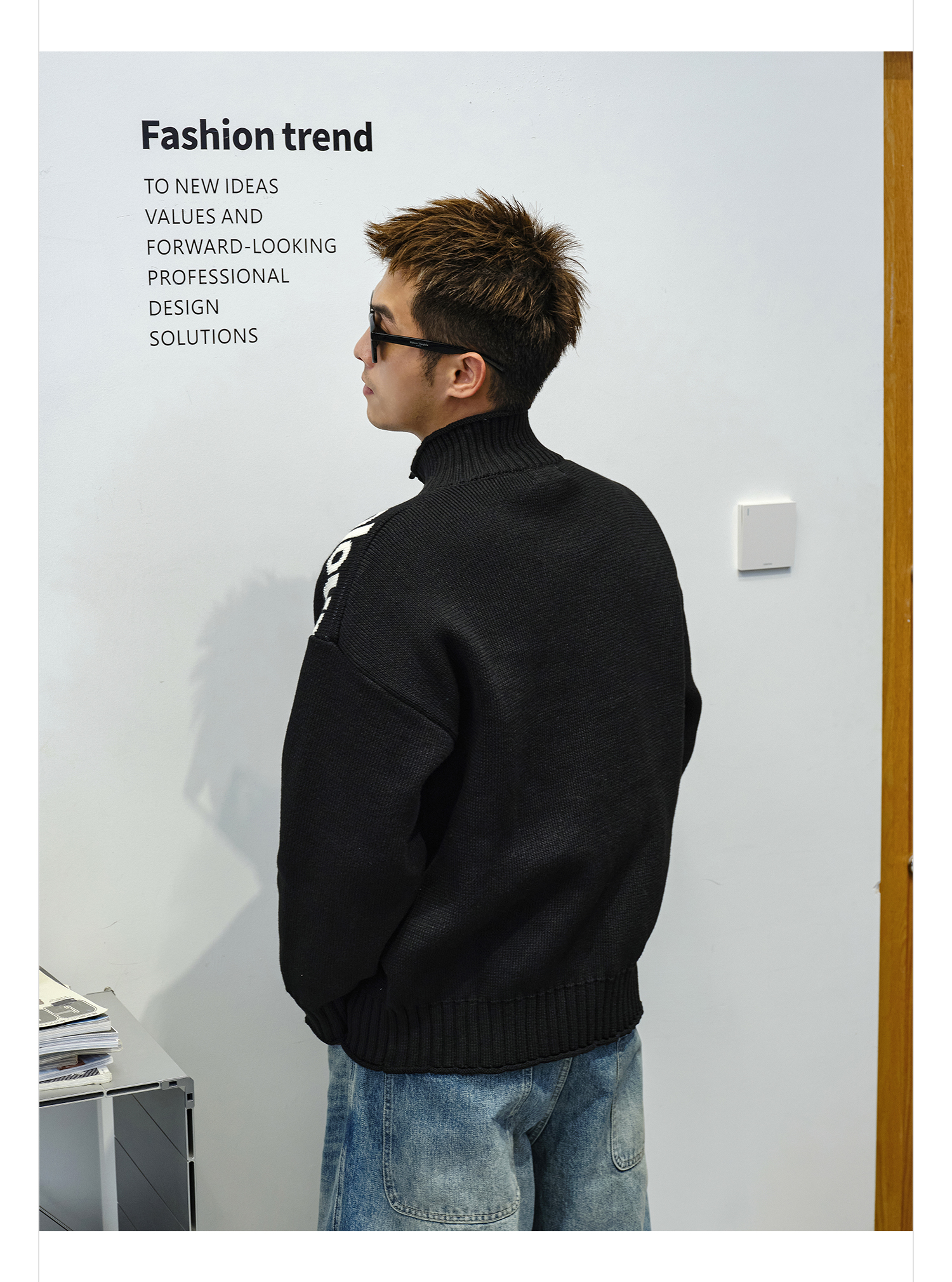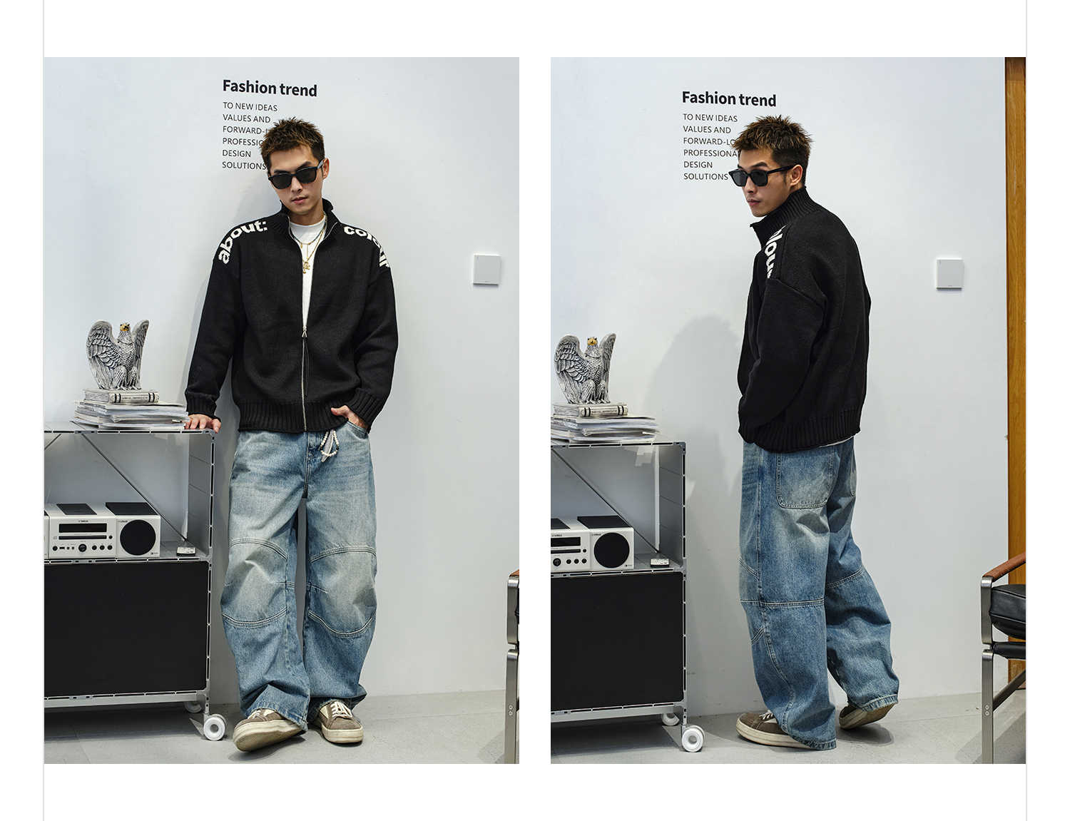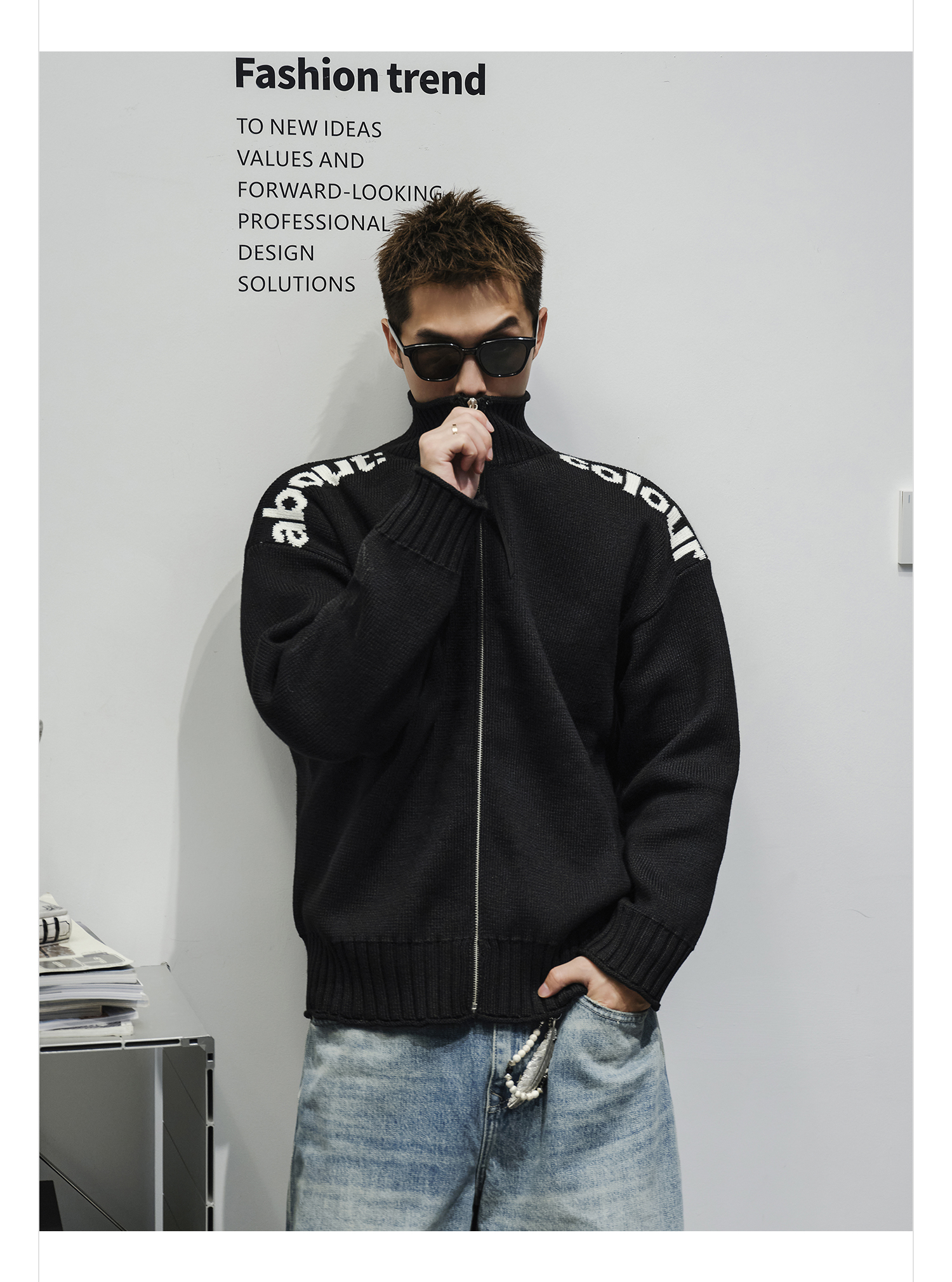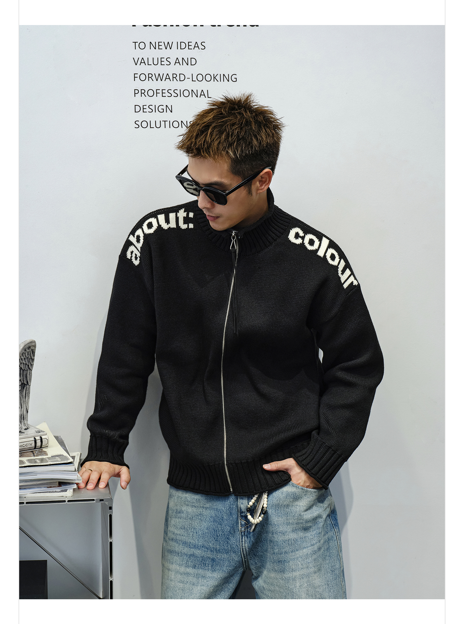 徐太浪【913g重磅 字母提花】黑色开衫毛衣男春秋休闲针织衫外套