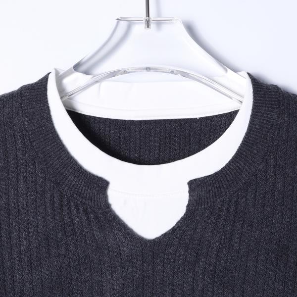 SDSA男士秋冬新款痞帅男装韩版撞色竖纹圆领假两件毛衣慵懒风毛衣