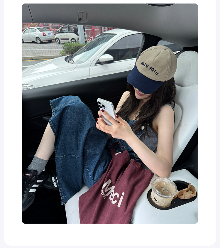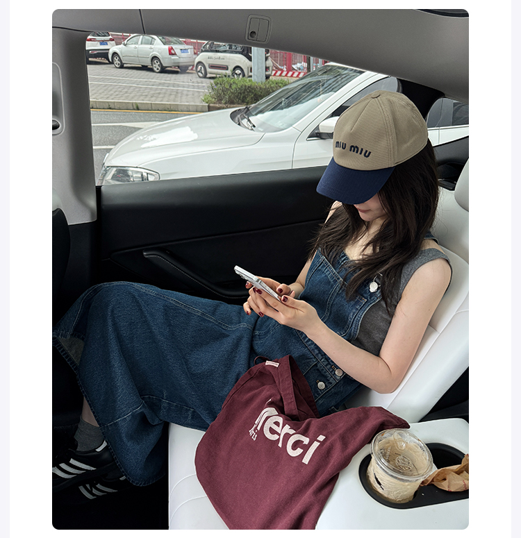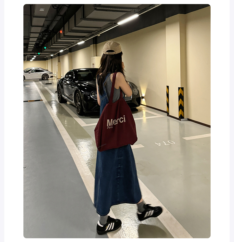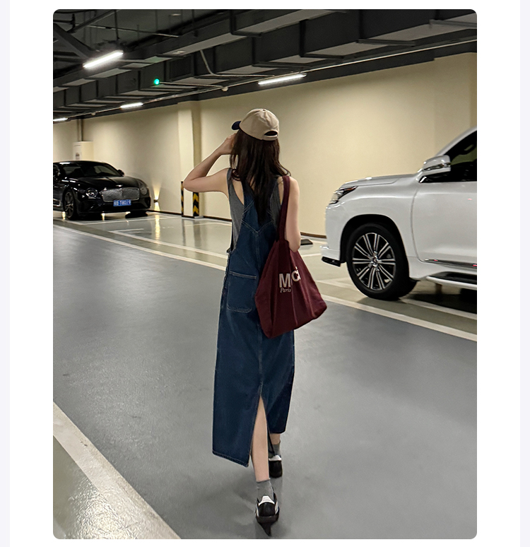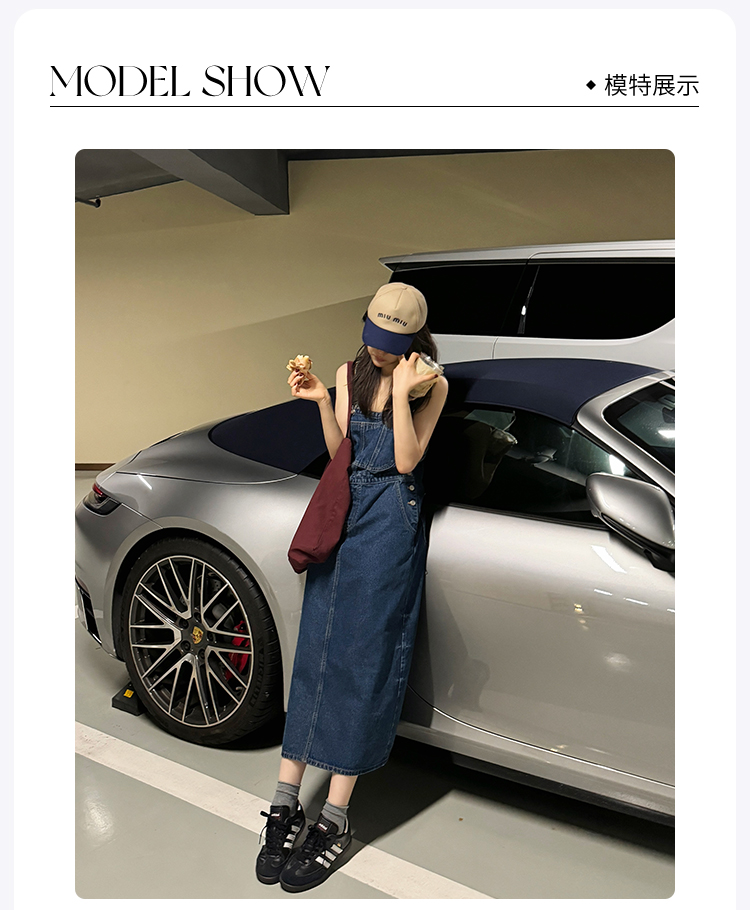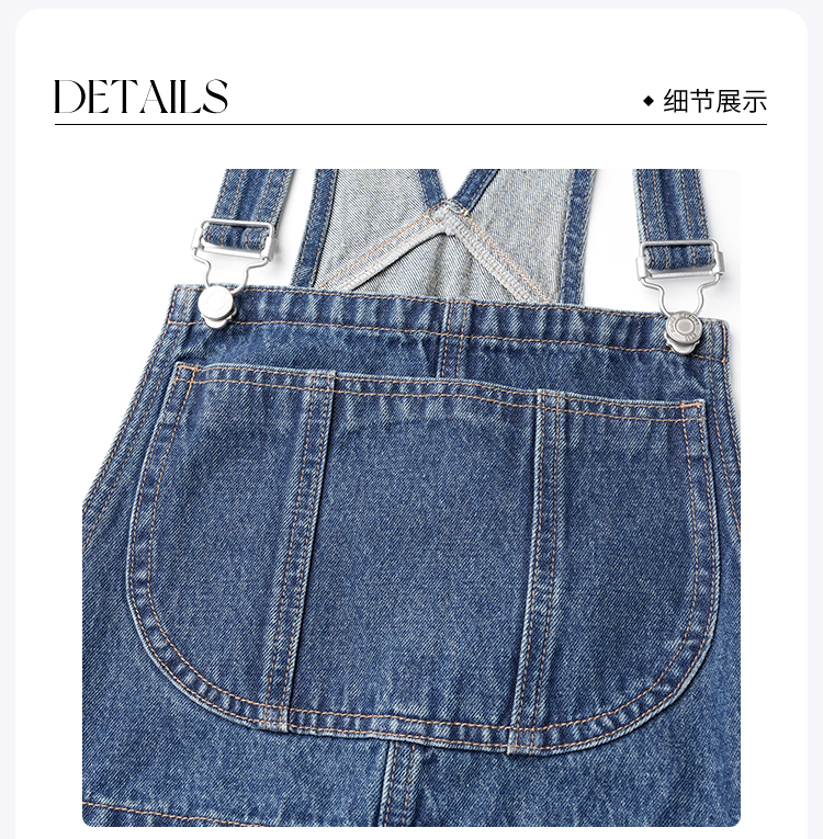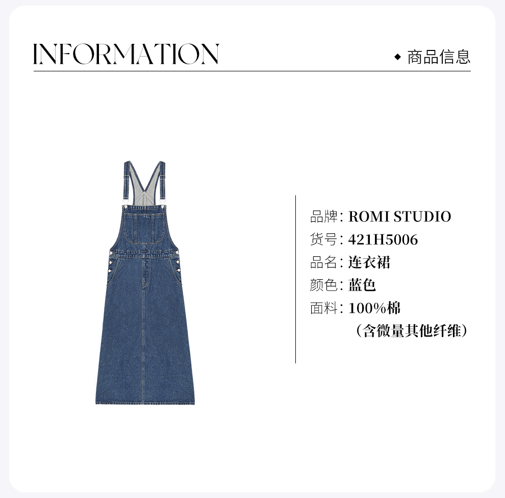 ROMI STUDIO“美式复古”100长绒斜纹竹节棉背带直筒牛仔裙421H5006