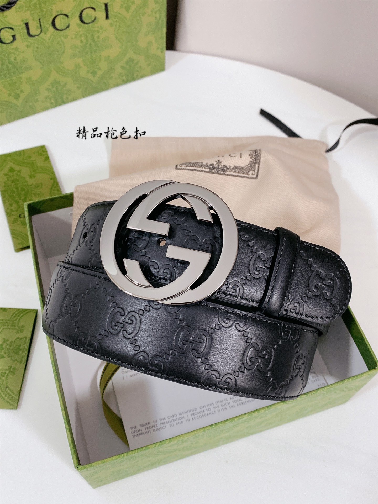 gucci.古驰 全套包装 4cm进口小牛皮压花,正品完美.原版牛皮底,采用热压印技术的 gucci signature皮革精制而成,触感厚实,印花图案清晰