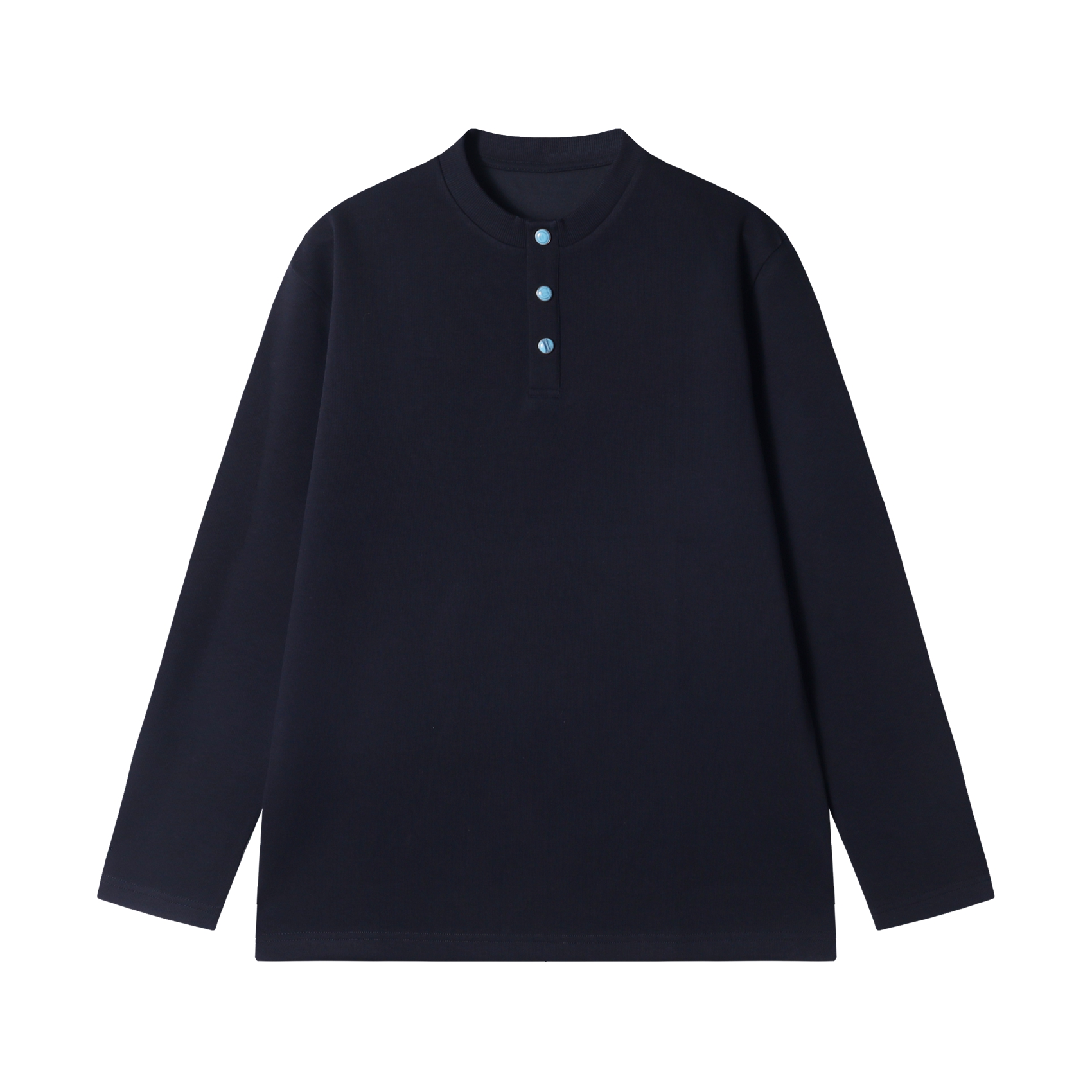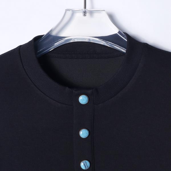 T1900新款时尚个性纯色彩色纽扣圆领套头长袖T恤休闲百搭简约上衣