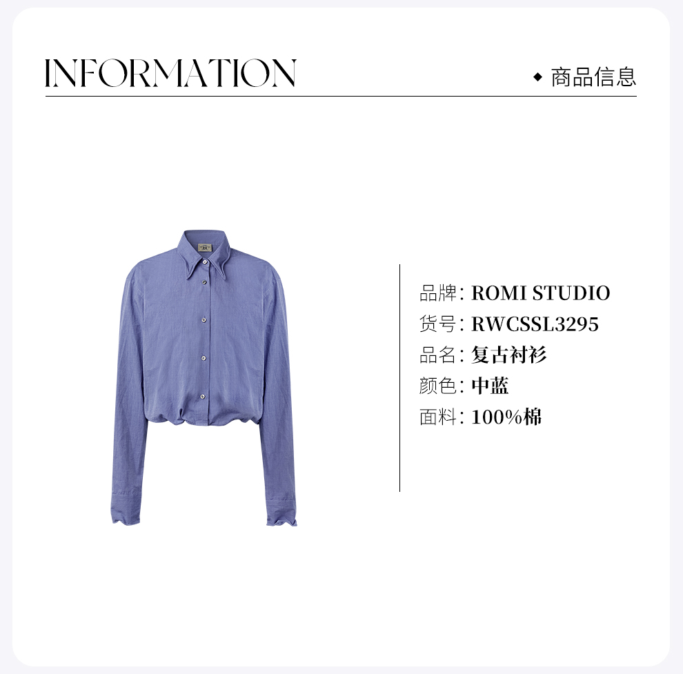 ROMI STUDIO“蓝调时刻”干爽棉质蓝紫色翻领开襟短衬衫RWCSSL3295 【发货时间25-30天】