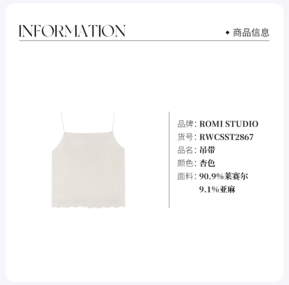 ROMI STUDIO 亚麻莱赛尔混纺轻薄凉感蕾丝绣花吊带背心RWCSST2867