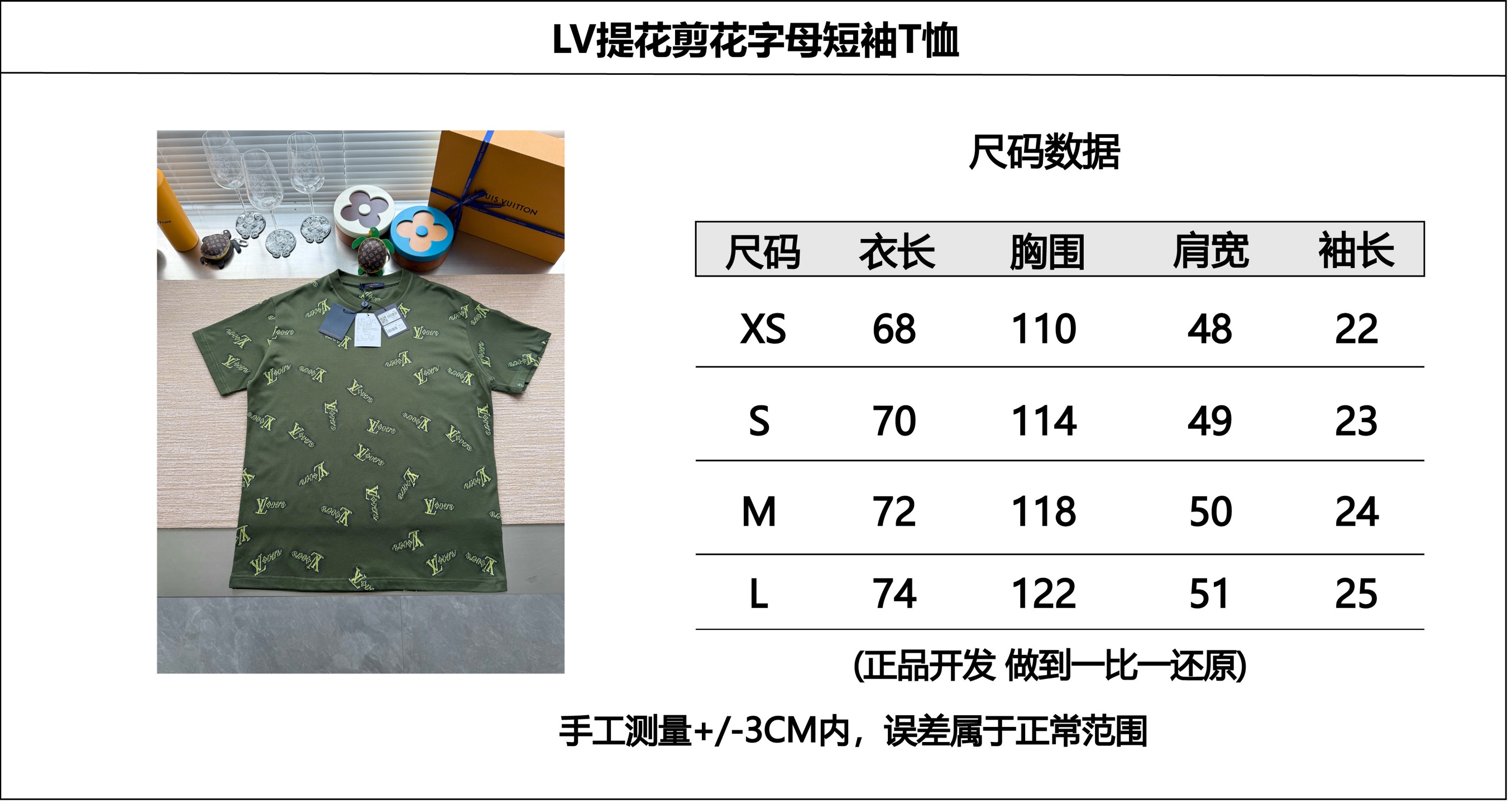 Louis Vuitton25ss提花剪花字母短袖T恤‼️整件衣服8950购买ZP拆解打造,采用定制纯棉面料,做到100%全棉进口纱线,意大利制造,全幅饰以LV Lovers提花,提花做到与面料融为一体,定制标志性罗纹领口,超紧密度局部编织,真正做到1:1copy 码数:XS S M L