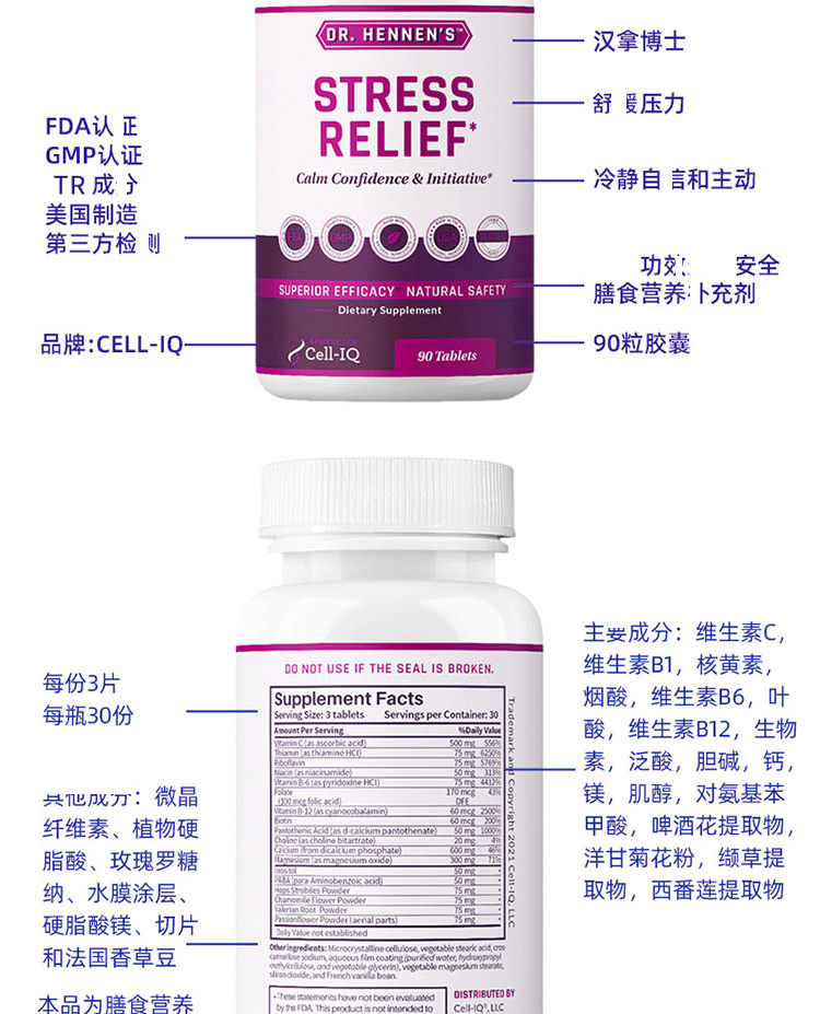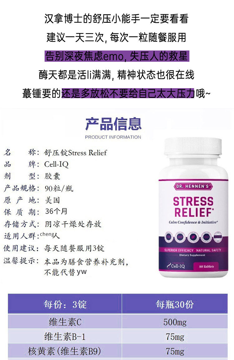 1v1咨询方案美国汉拿博士舒压锭胶囊舒缓解压放松综合维生素