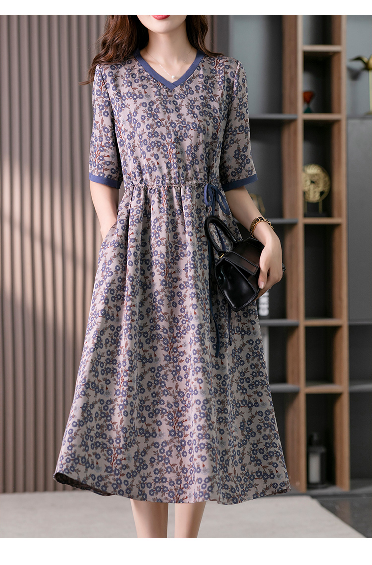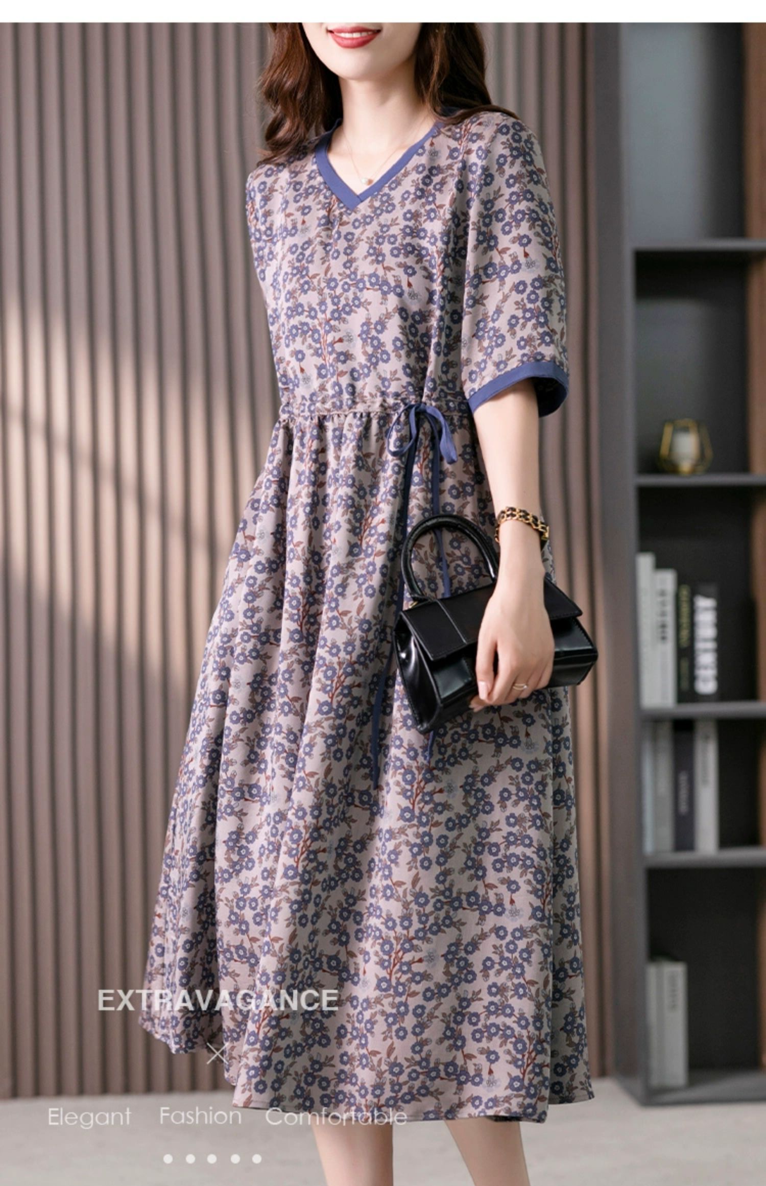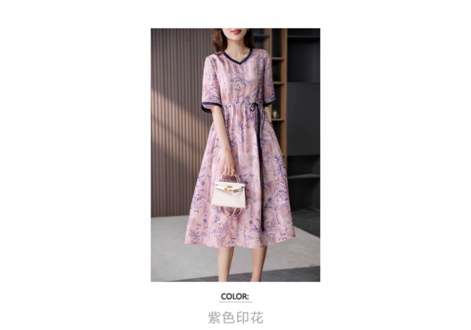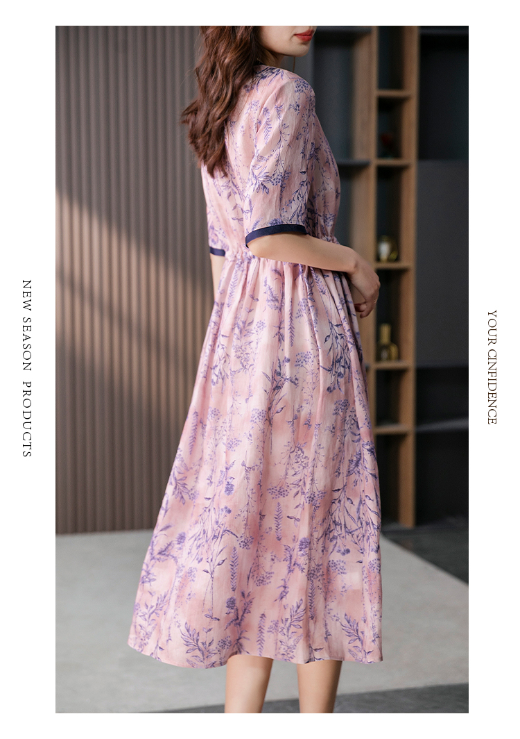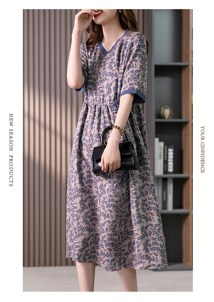 85885原形气质减龄印花连衣裙女夏季2024新款韩版收腰显瘦碎花长裙子