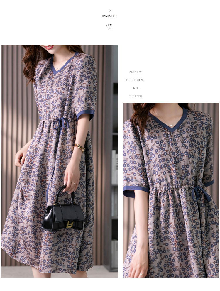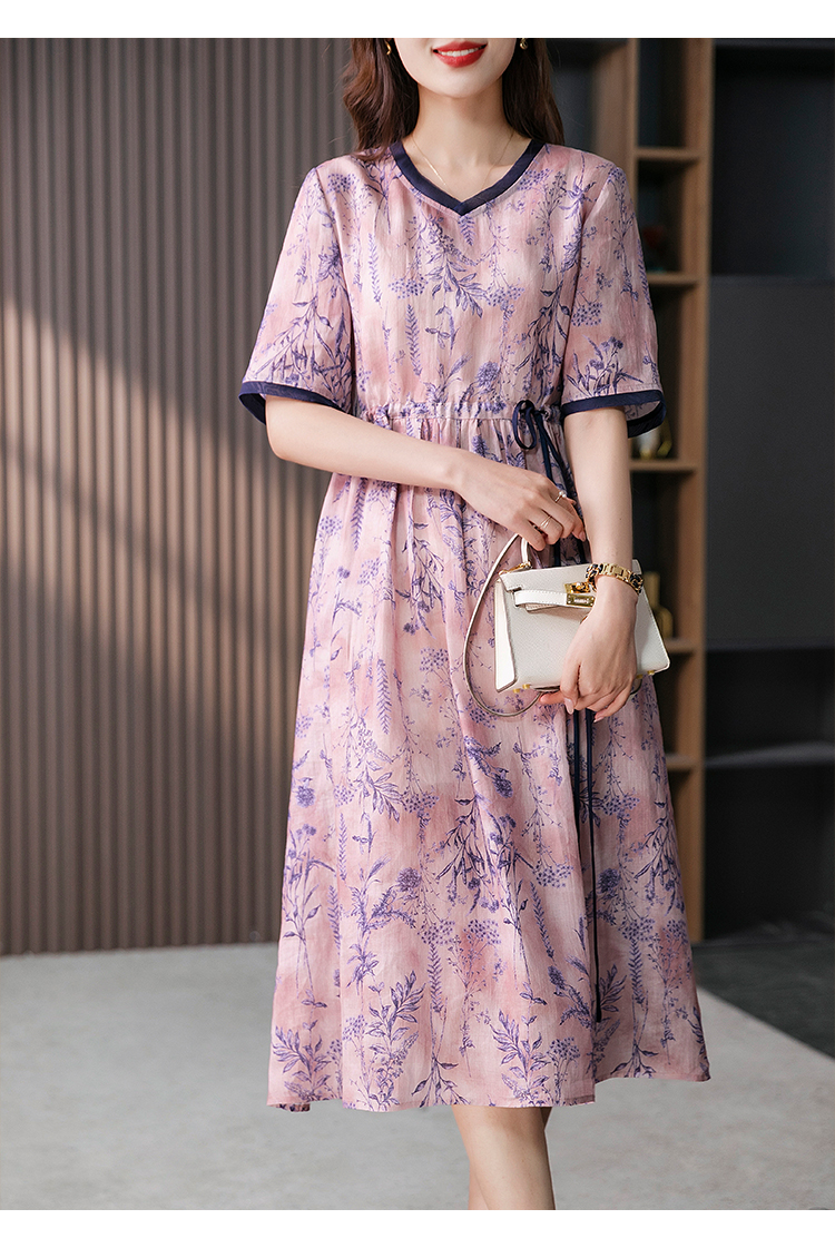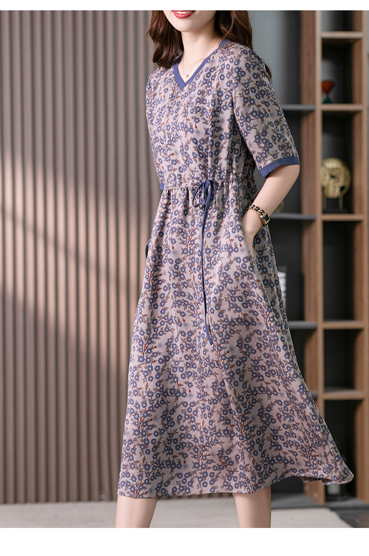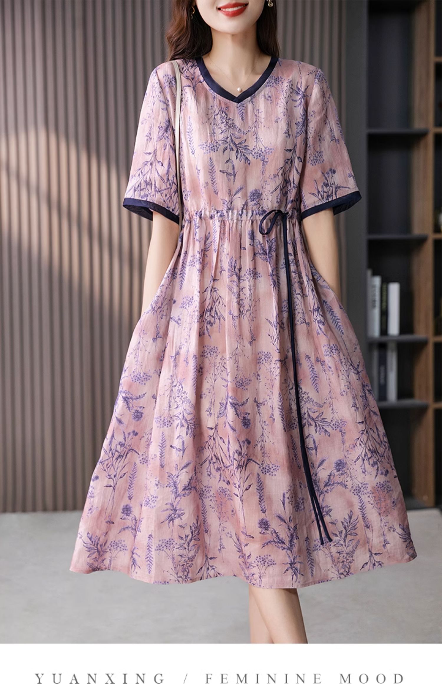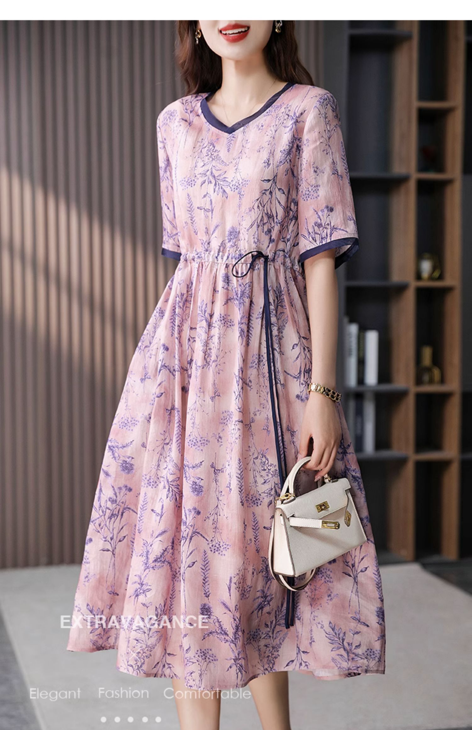 85885原形气质减龄印花连衣裙女夏季2024新款韩版收腰显瘦碎花长裙子