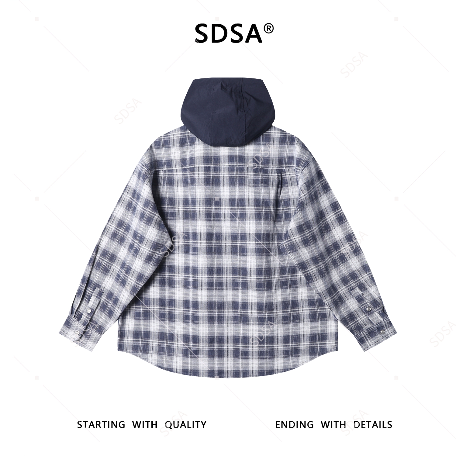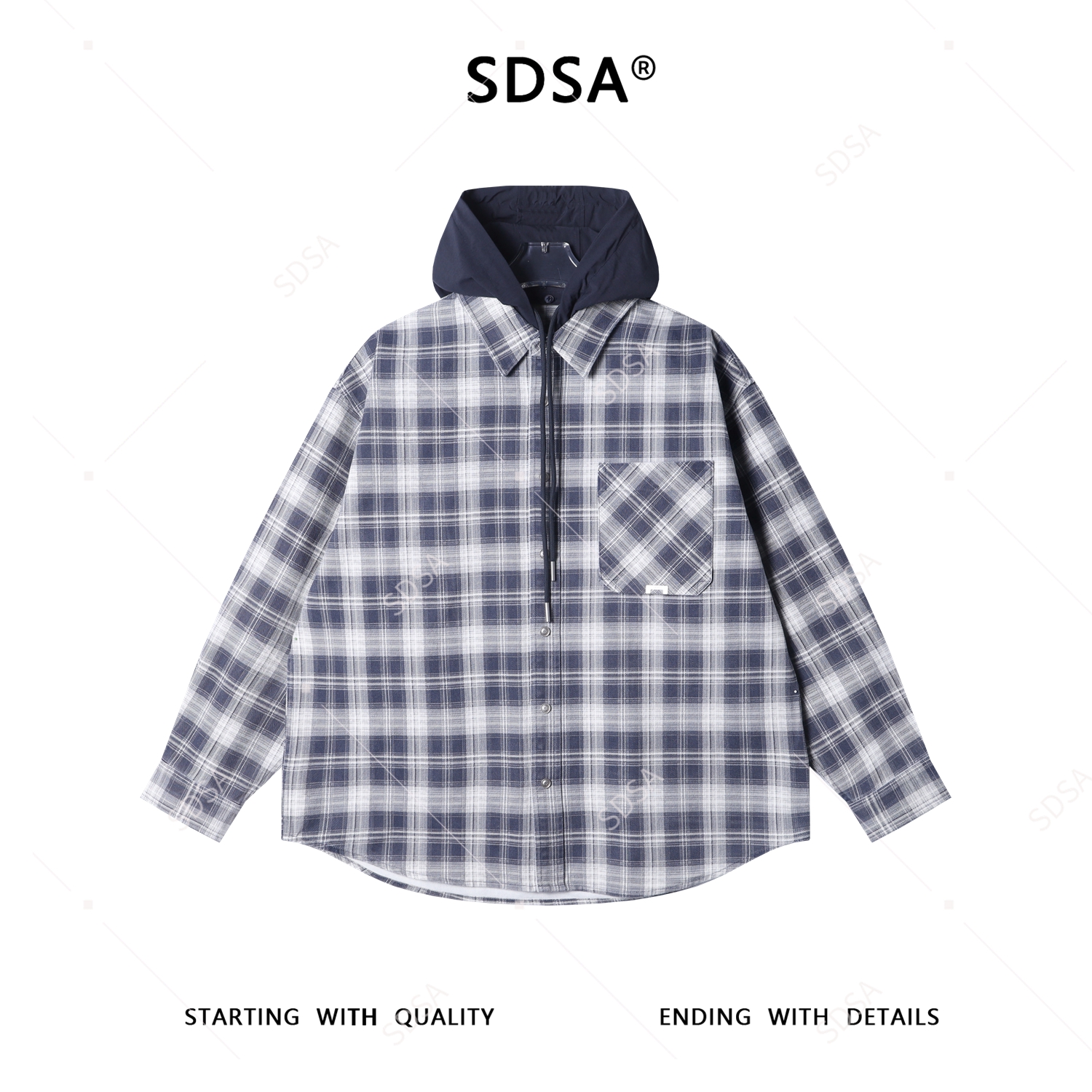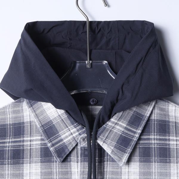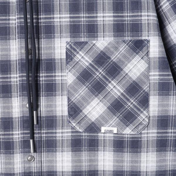 12702SDSA男士秋冬新款痞帅男装潮牌撞色格纹拼接连帽按扣长袖衬衫百搭