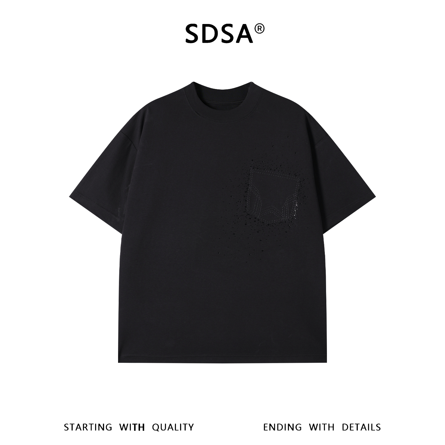 SDSA男装2026新款高贵轻奢潮牌重工烫钻设计圆领短袖T恤百搭上衣