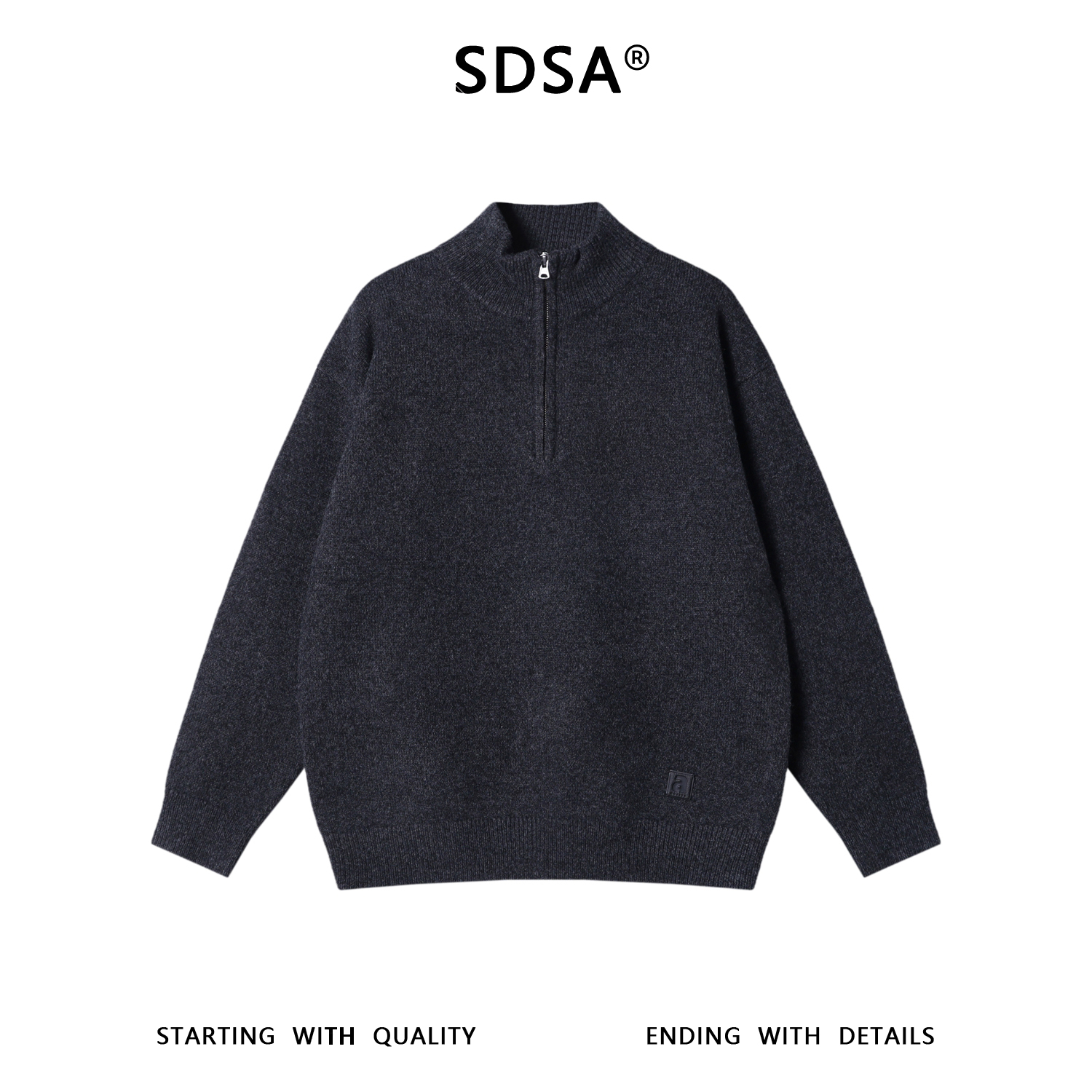SDSA男士秋冬新款痞帅男装慵懒风简约半拉链立领毛衣百搭针织衫