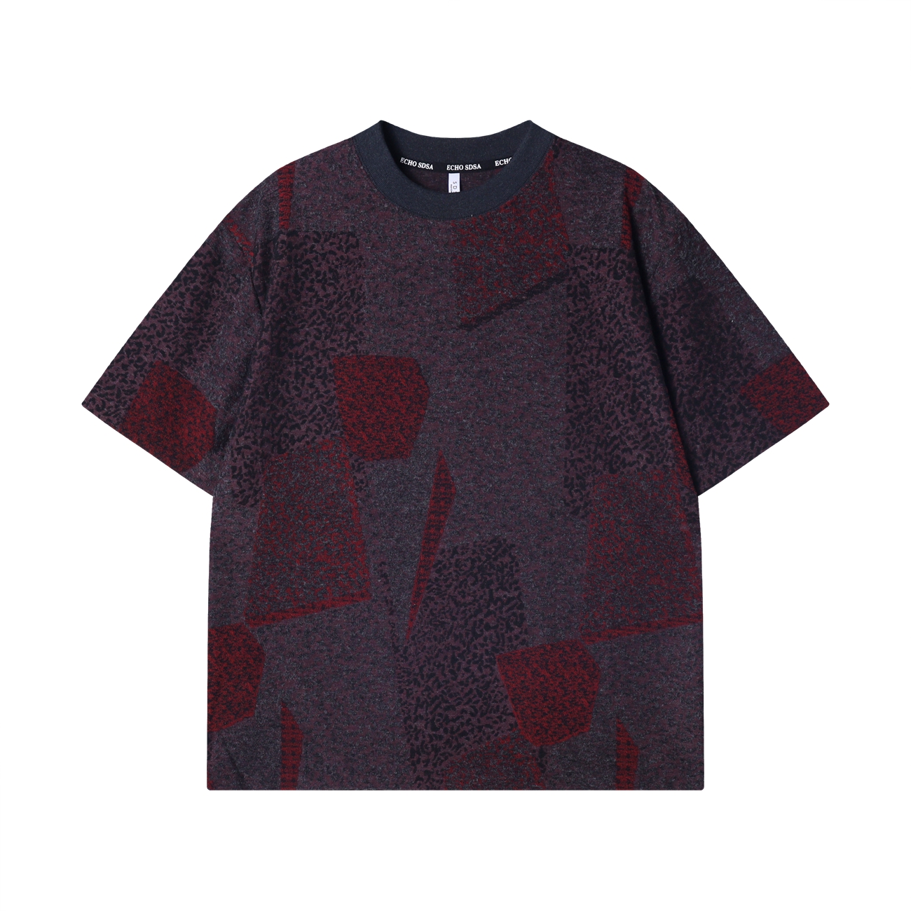 T3001夏季高级感新款美式撞色立体磨毛短袖T恤时尚圆领宽松百搭上衣