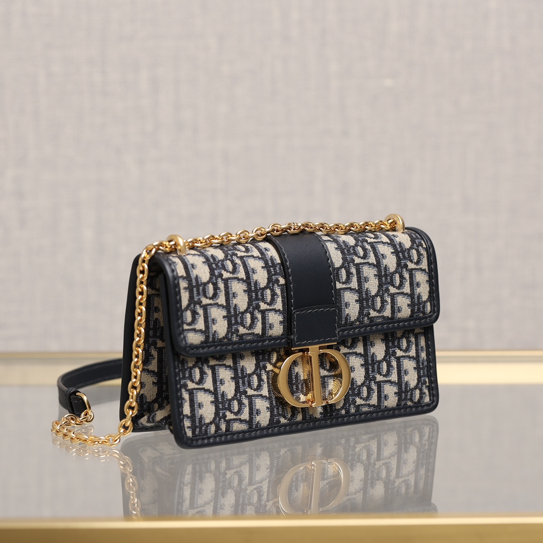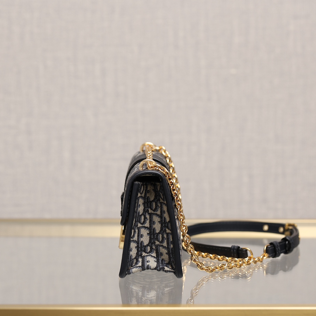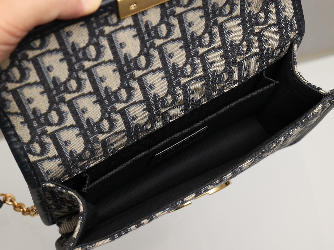 翻盖饰以复古金色饰面金属 CD 扣环,灵感源自 Christian Dior 香水瓶的封口。