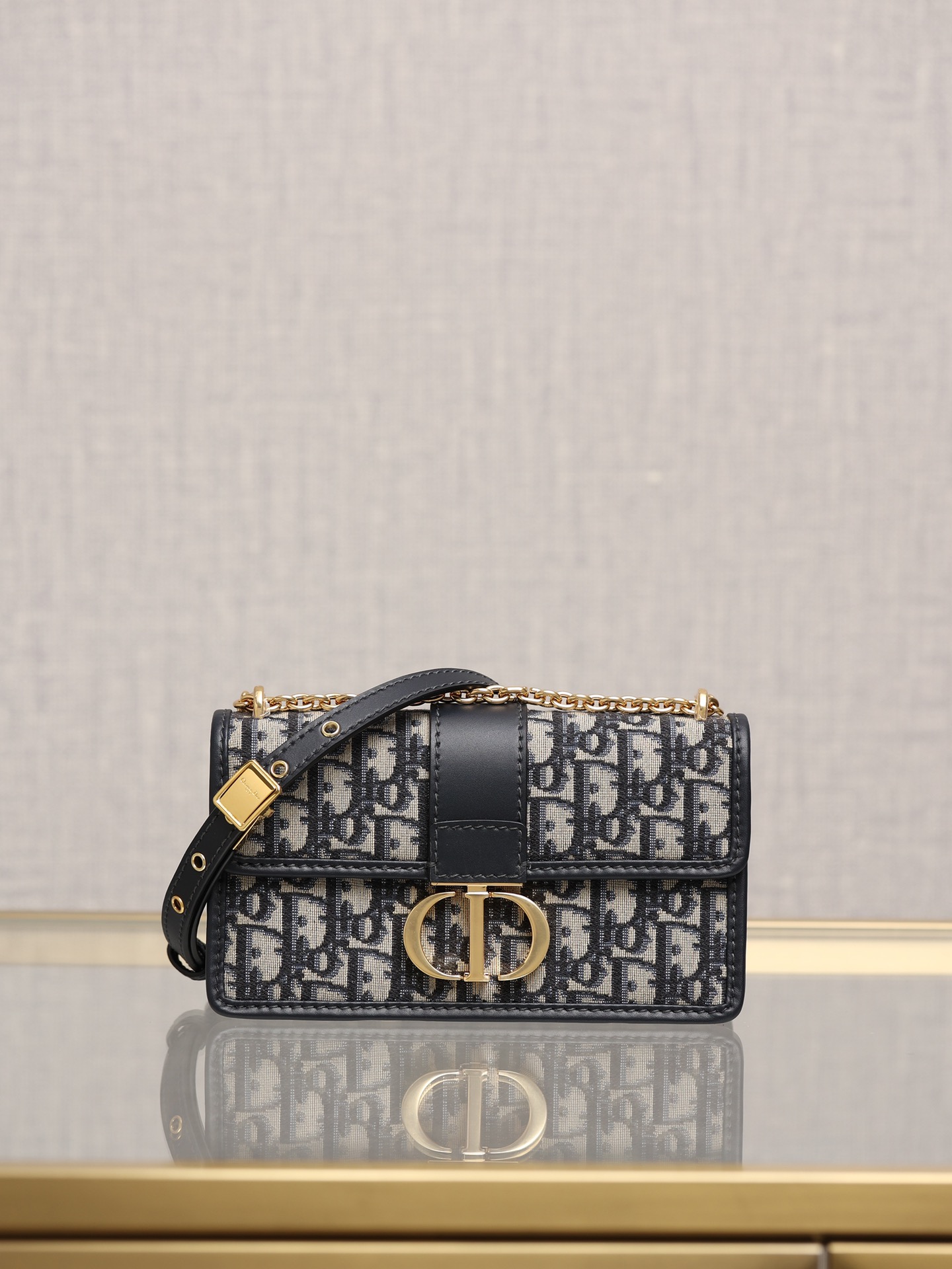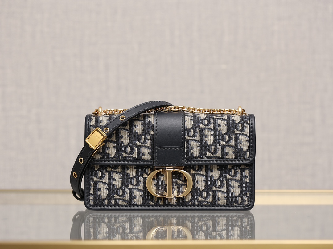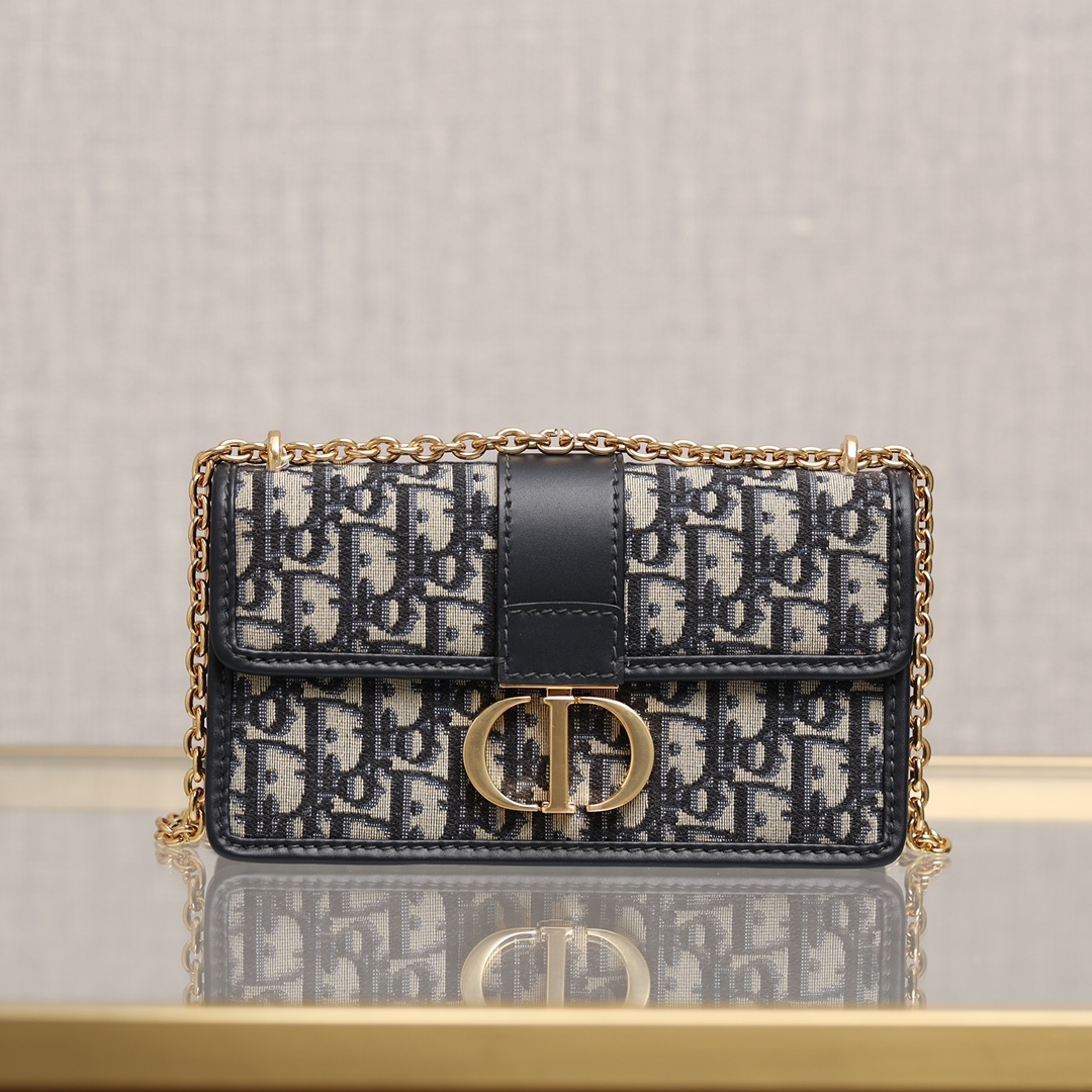 翻盖饰以复古金色饰面金属 CD 扣环,灵感源自 Christian Dior 香水瓶的封口。