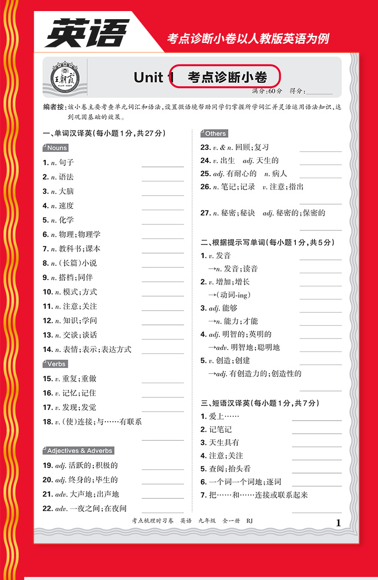 2026考点梳理时习卷9年级初三全一册