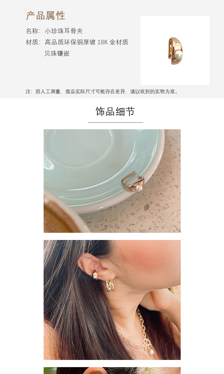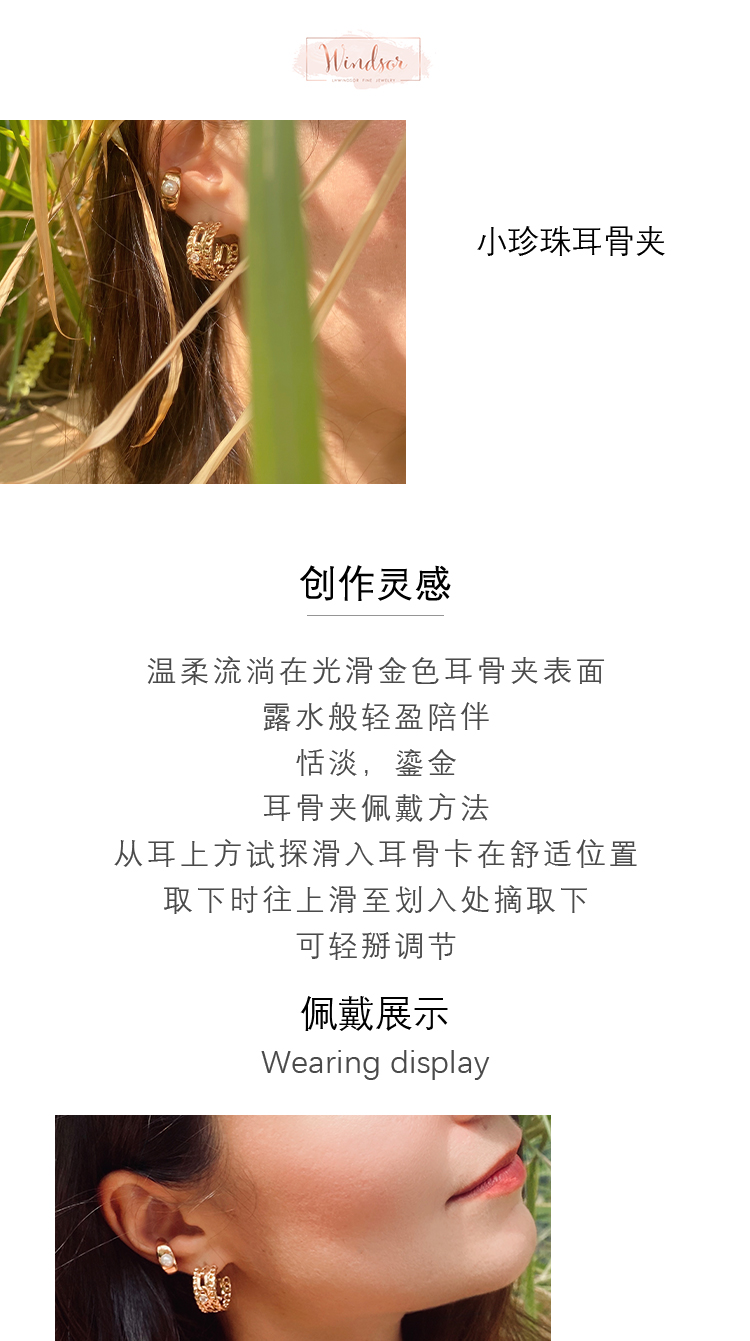 LHWINDSOR 小珍珠耳骨夹贝珠C型简约气质无耳洞复古耳饰高级感耳挂