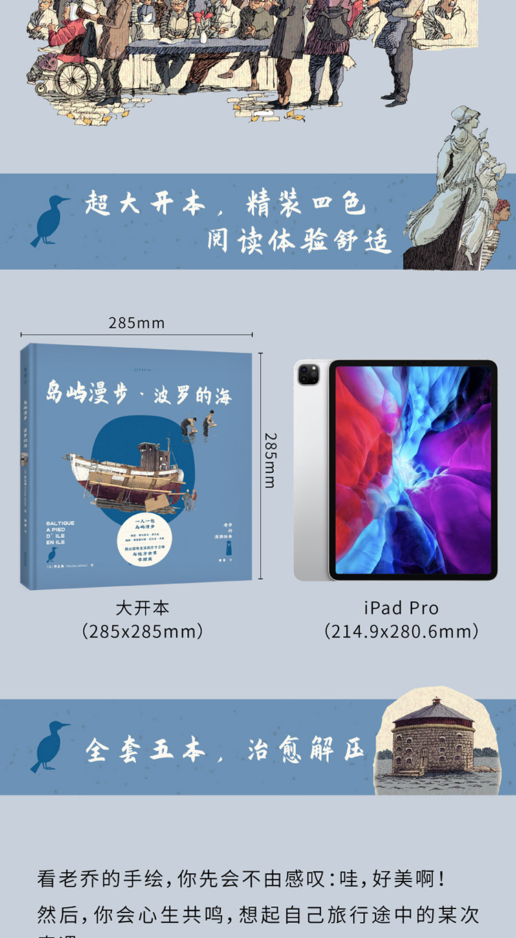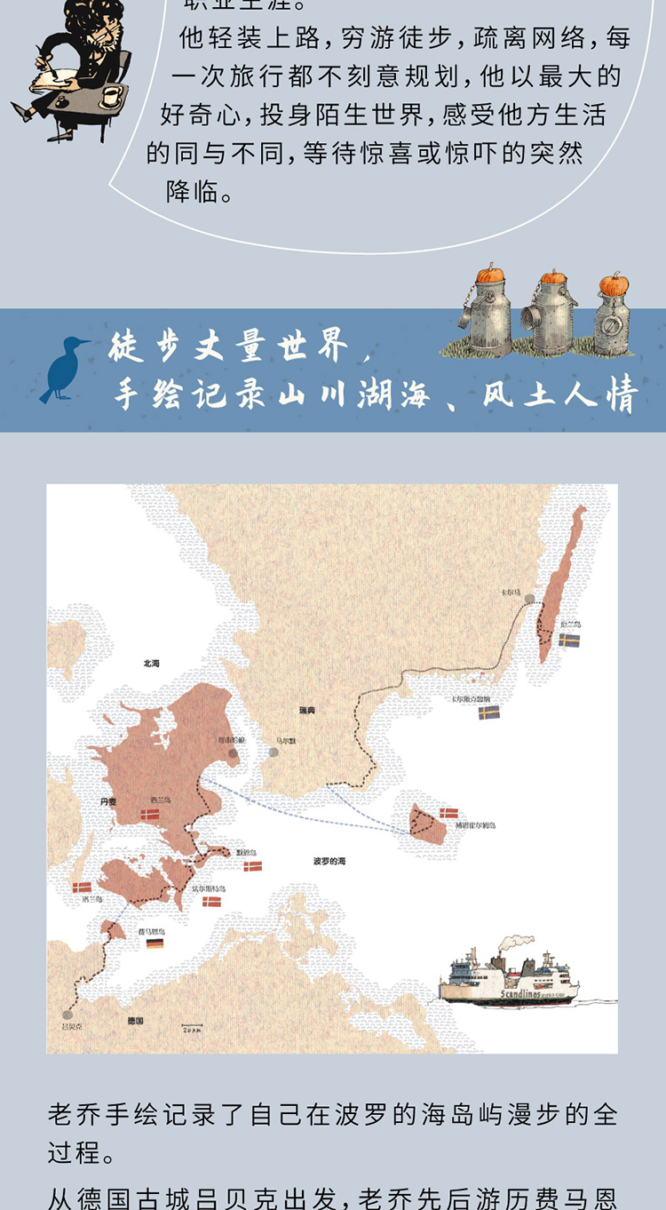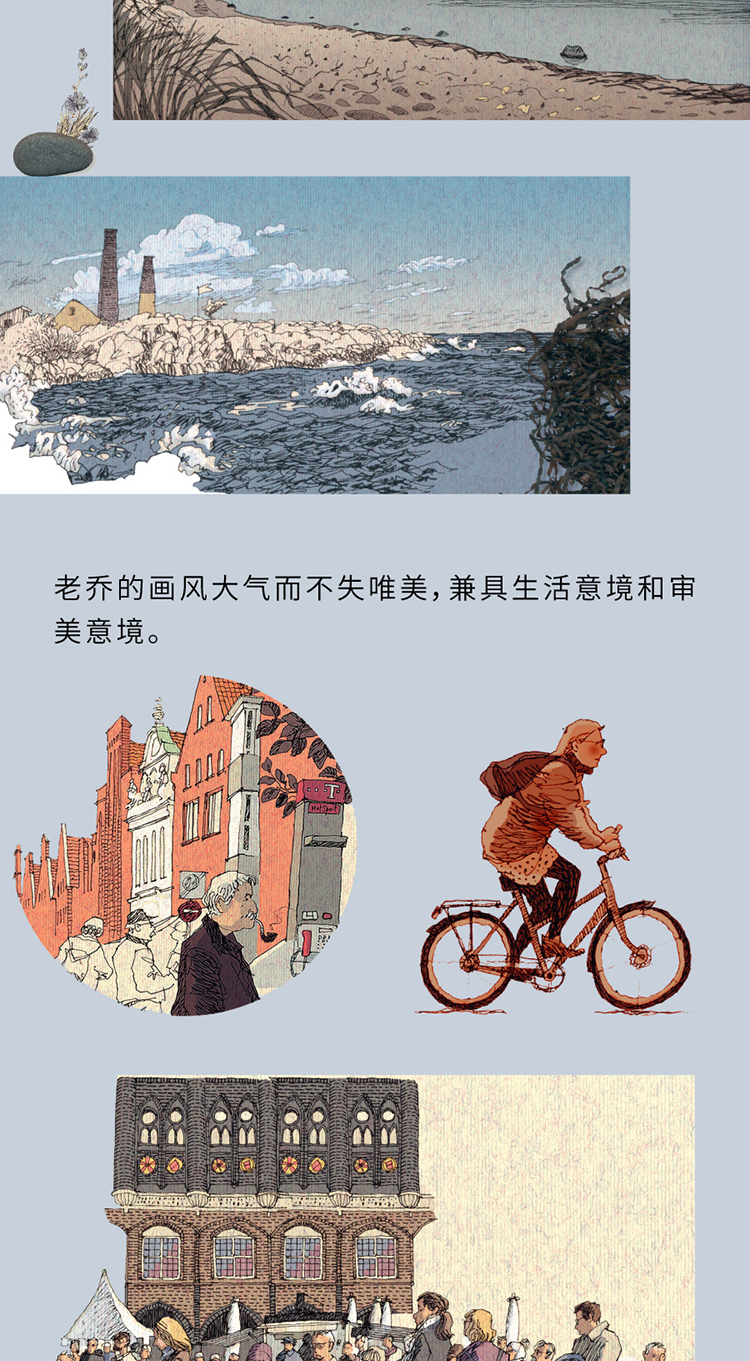 德国、瑞典、丹麦3个国家,费马恩岛、西兰岛、博恩霍尔姆、厄兰岛等7座岛屿,老乔岛屿漫步的手绘记录。相对写实的风景绘画,高度还原欧洲风情、环海风景,打开书页,身临其境,视觉震撼,阅读体验不能再舒适了。