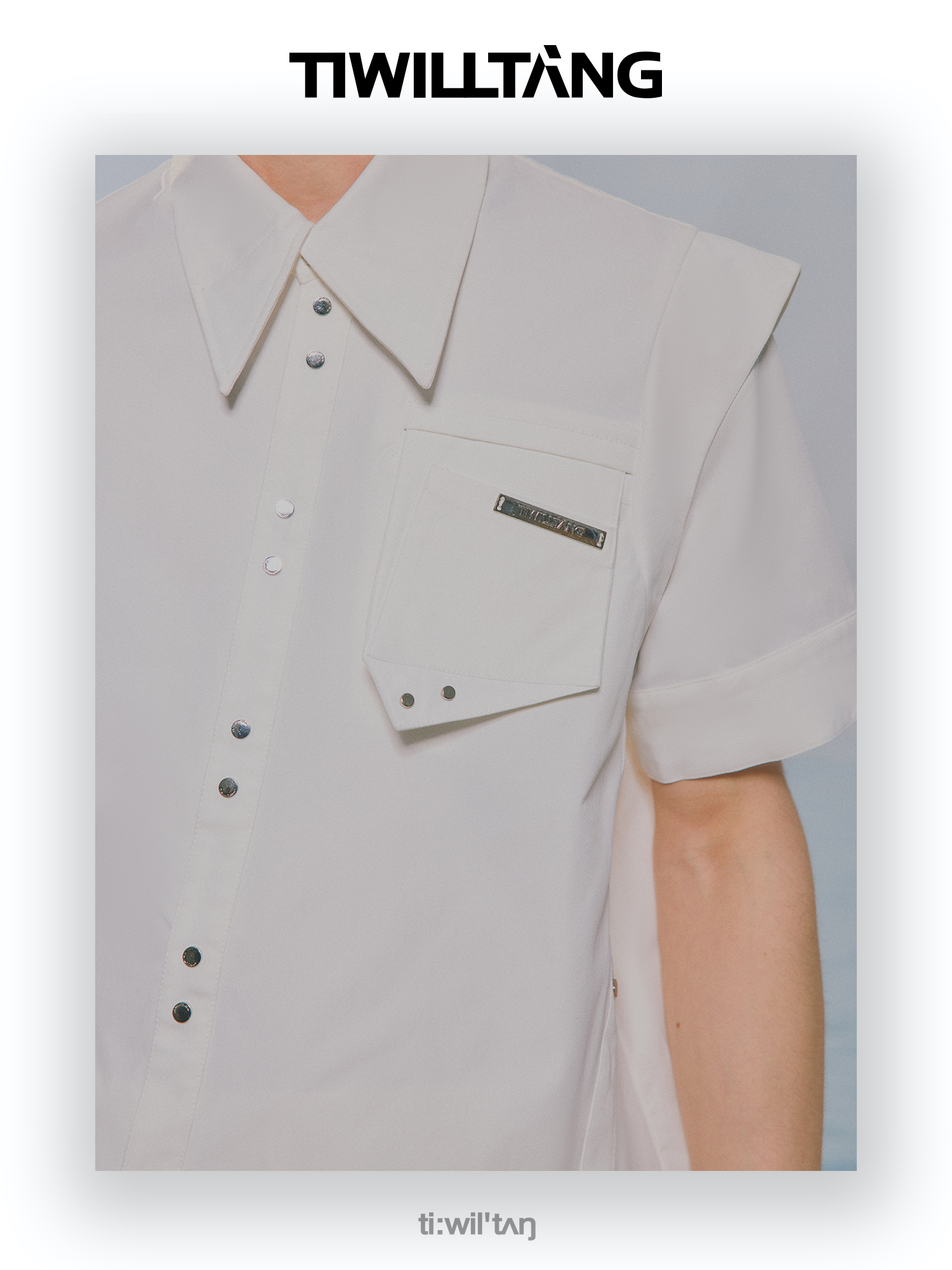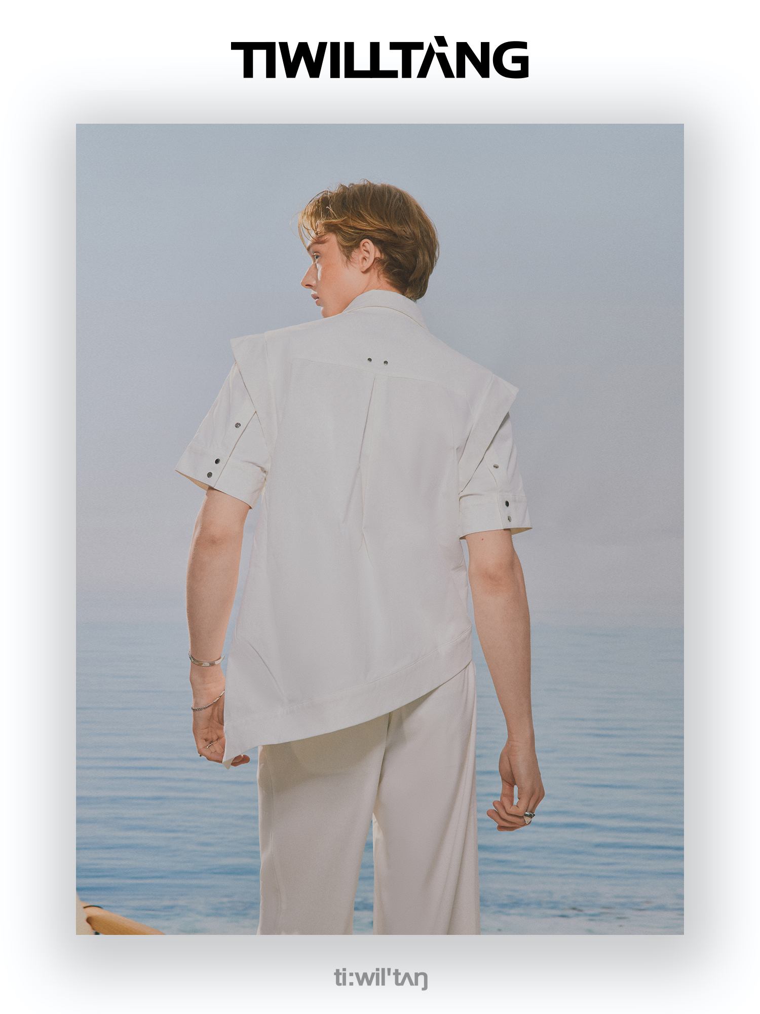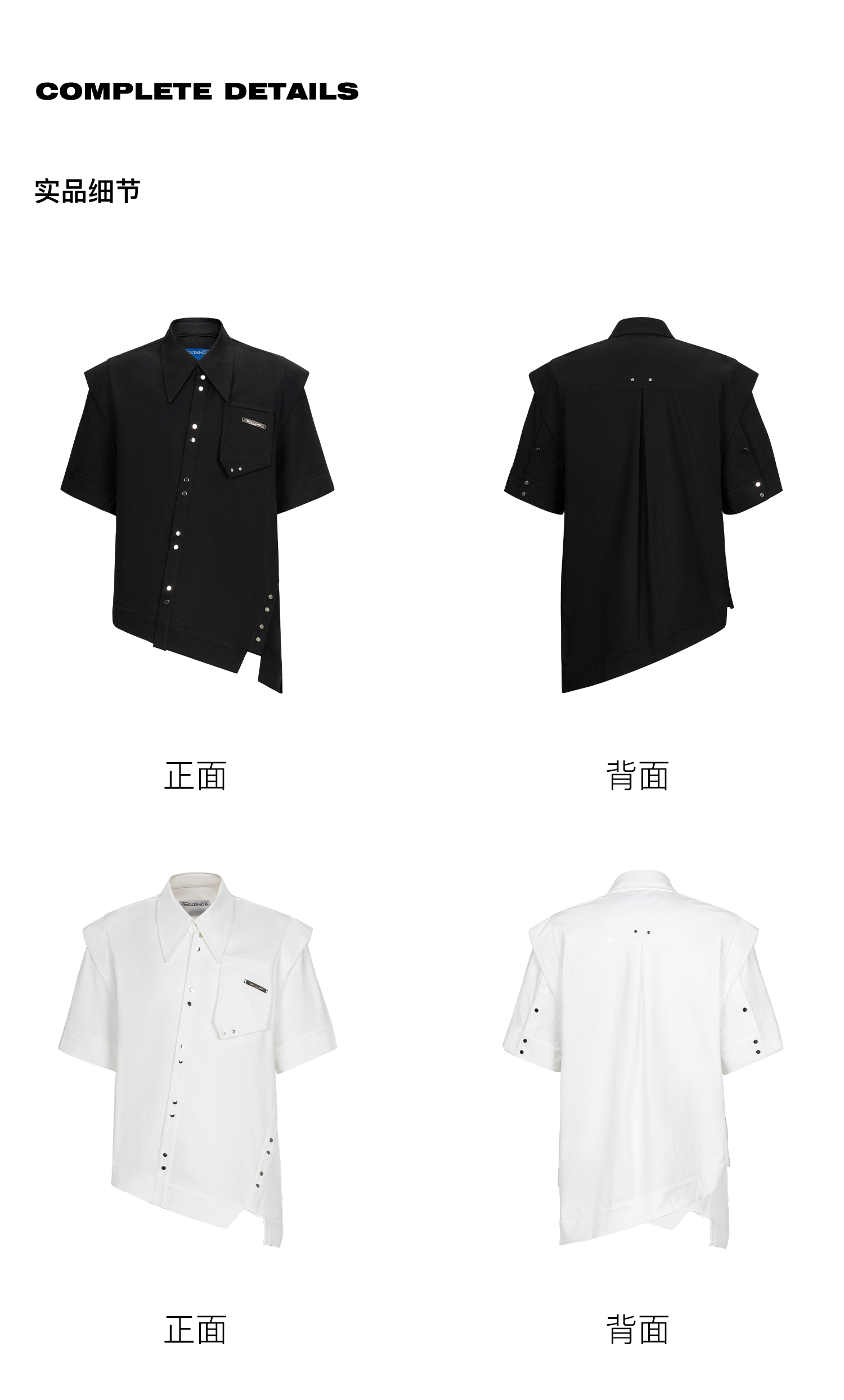 启世录TIWILLTANG“原焐汔制”斜门襟短袖衬衫黑白薄款衬衣修身男