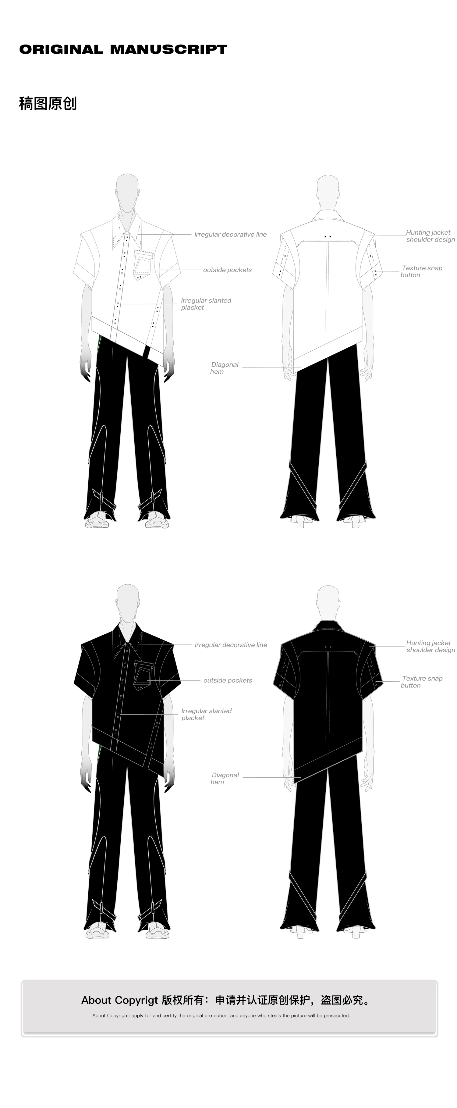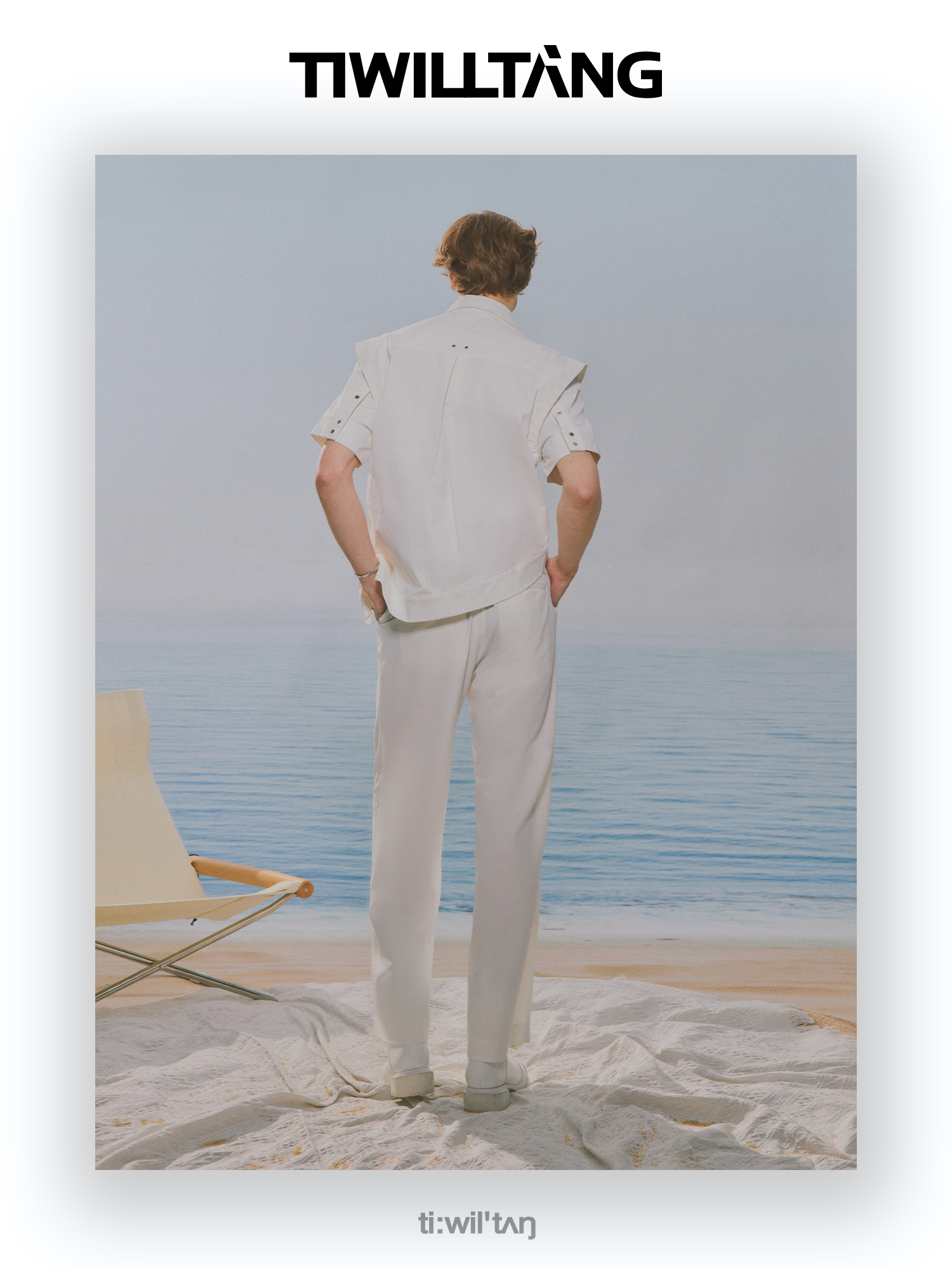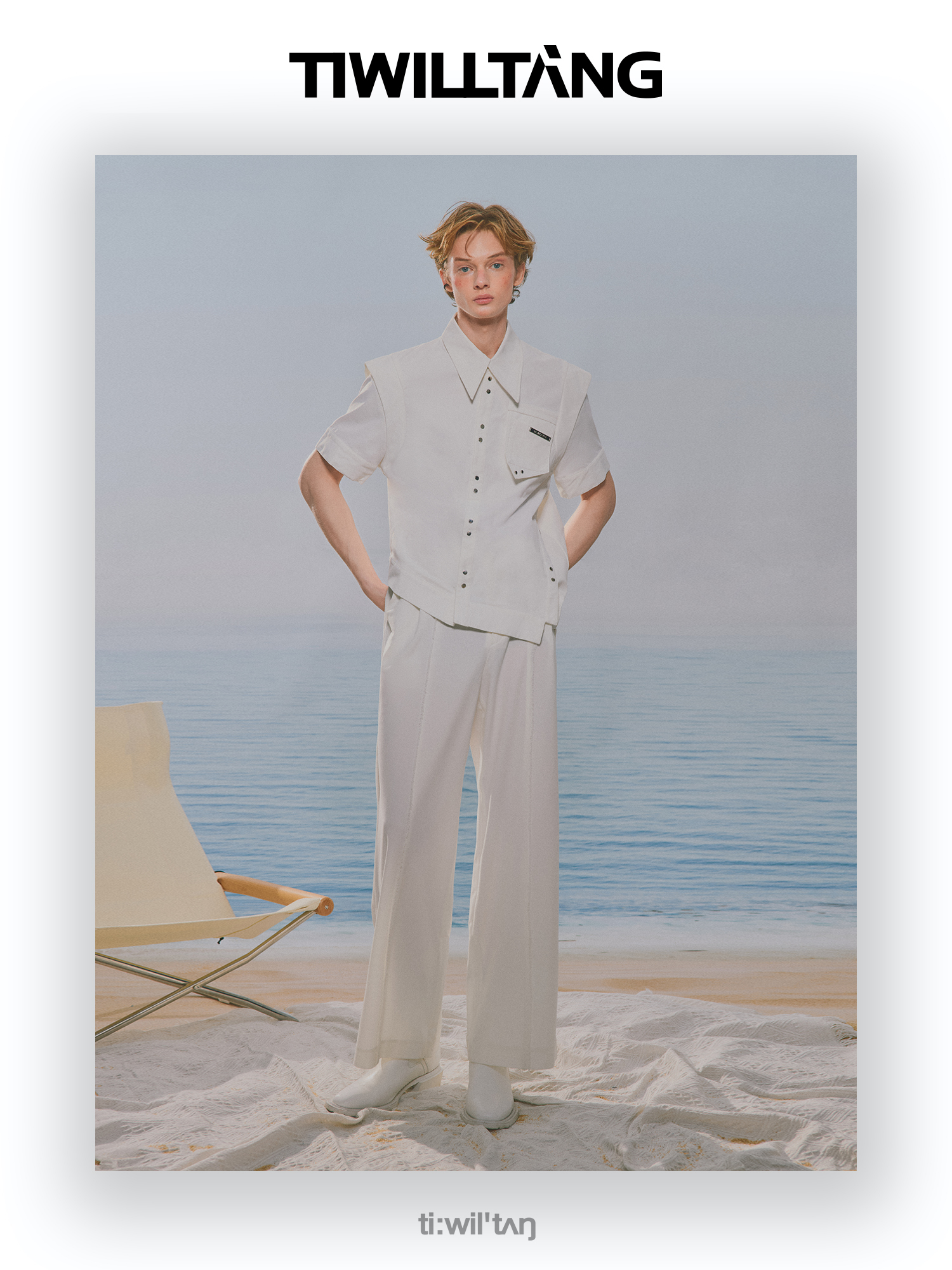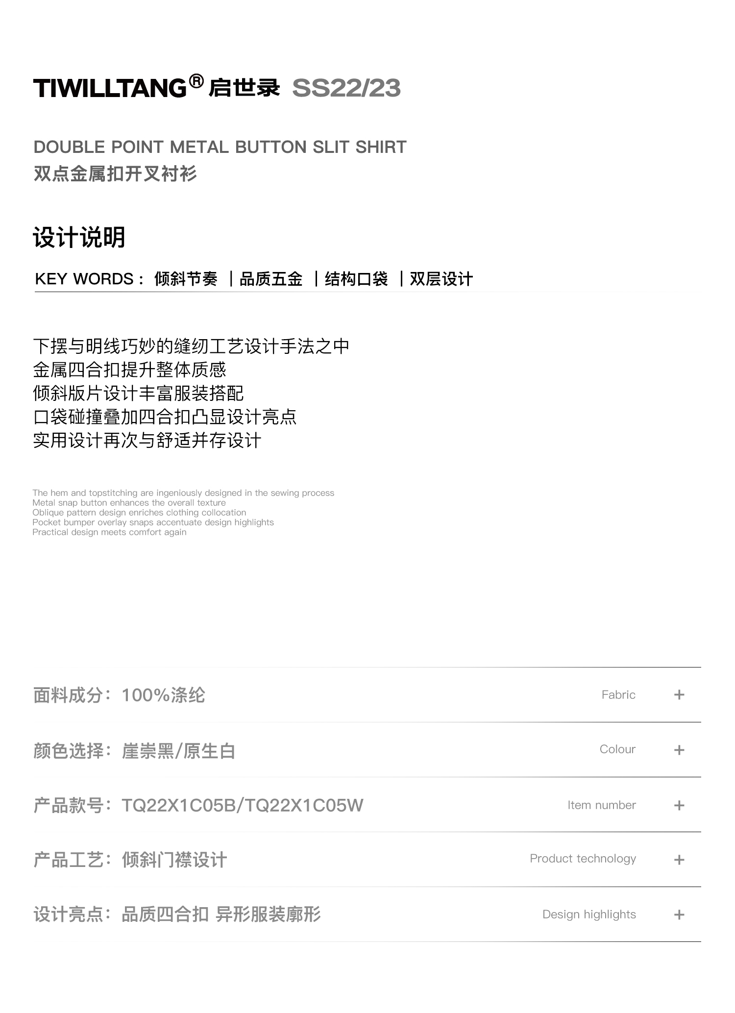 启世录TIWILLTANG“原焐汔制”斜门襟短袖衬衫黑白薄款衬衣修身男