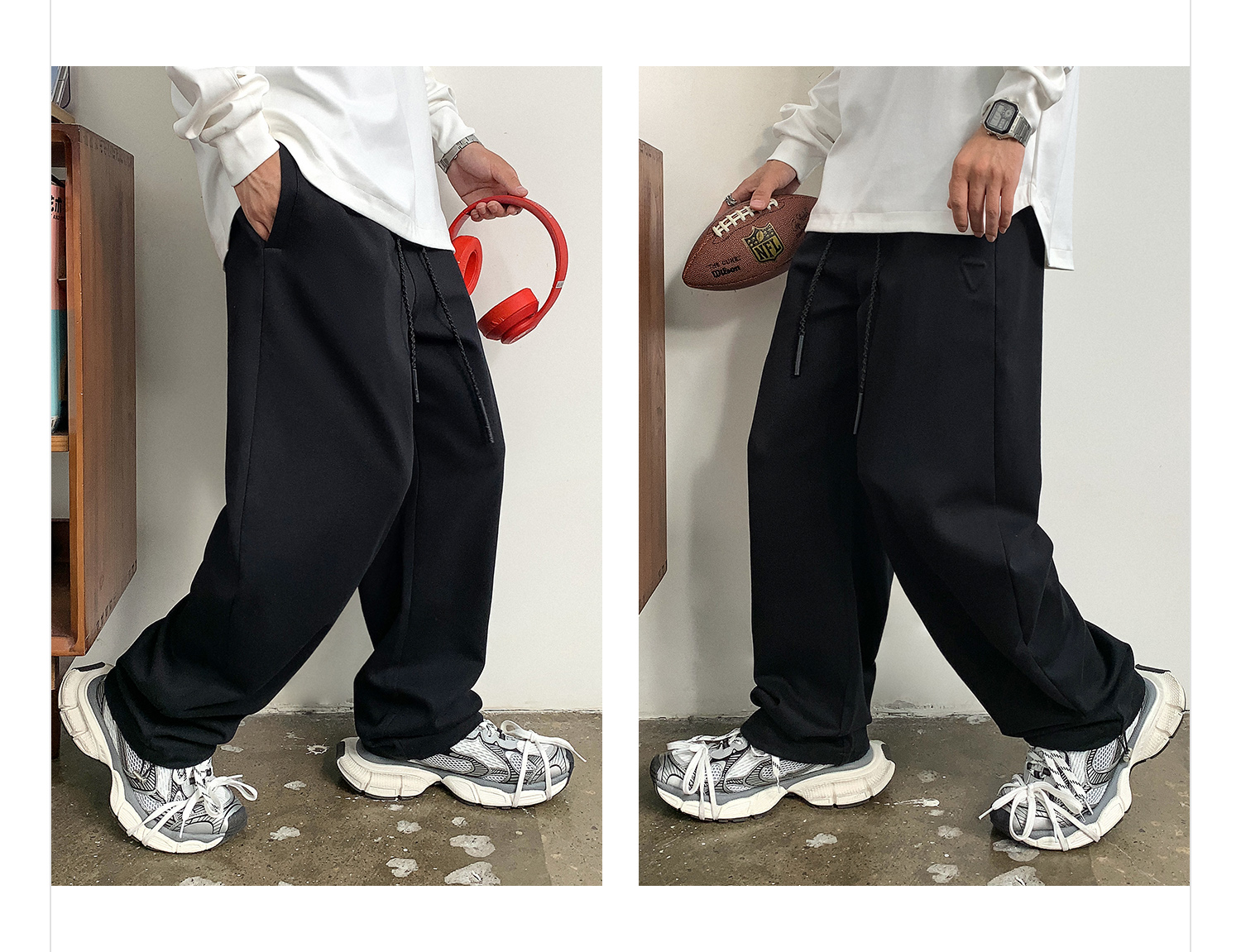 徐太浪简约绣标运动休闲卫裤男秋季潮流百搭宽松直筒阔腿裤子长裤
