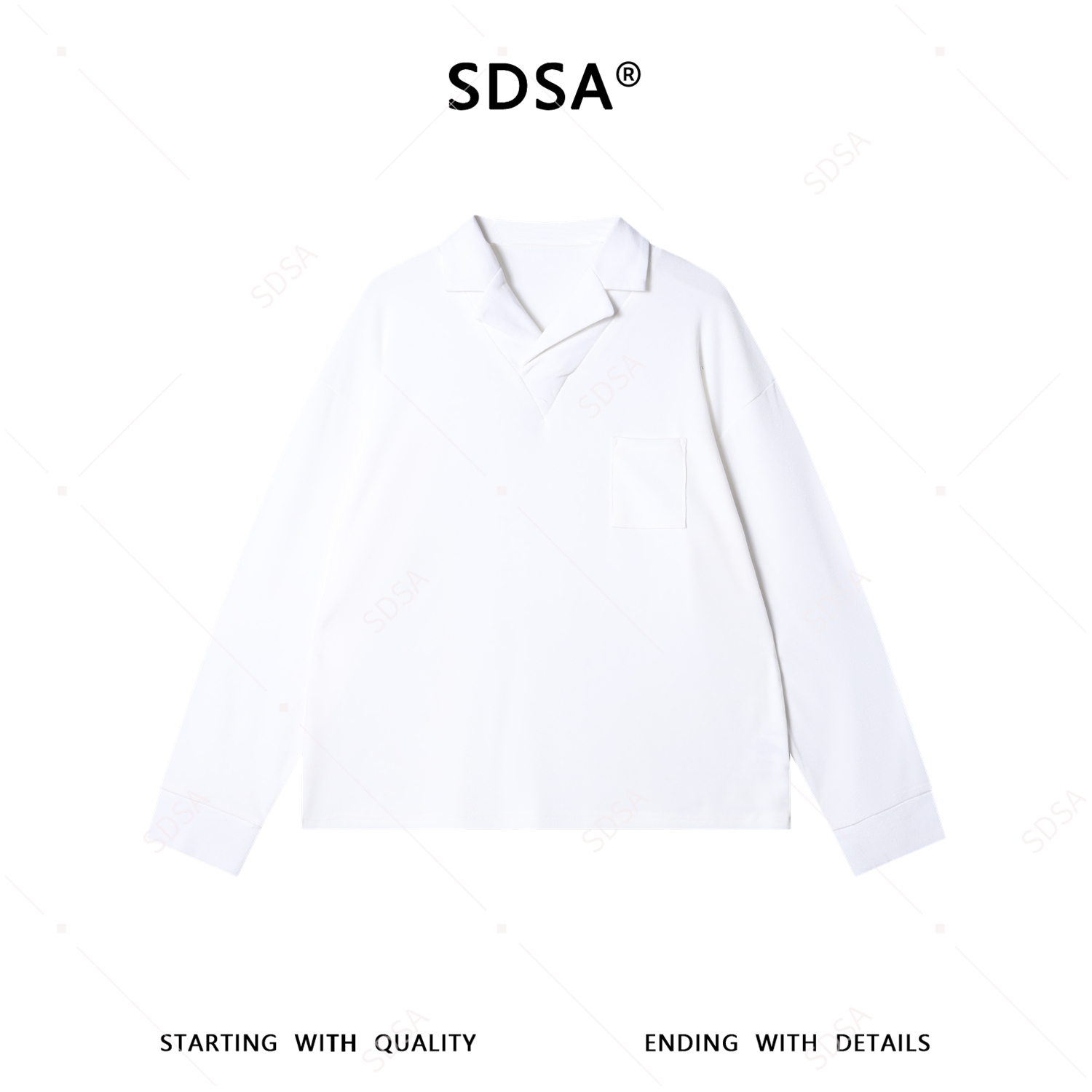 SDSA男装2026新款高贵轻奢松弛感纯色翻领长袖T恤百搭简约上衣