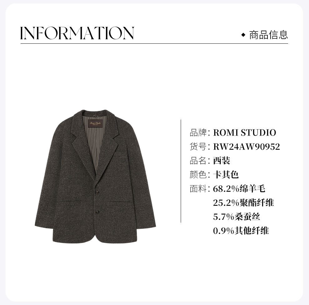 ROMI STUDIO“自我轮廓”桑蚕丝绵羊毛混纺花纱西装外套RW24AW90952