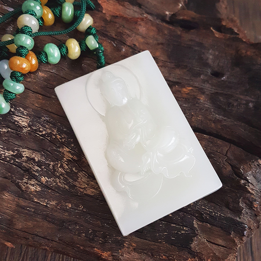 名称 | 天然无杂裂青海料观音牌和田玉(平安、吉祥)吊坠项链 |