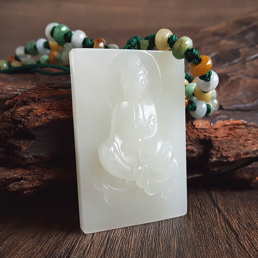 【天然正品】天然无杂裂青海料观音牌和田玉(平安、吉祥)吊坠项链吊坠:60.8*40.212.6MM / 项链:56CM(长度可调节)男士191025NJS43