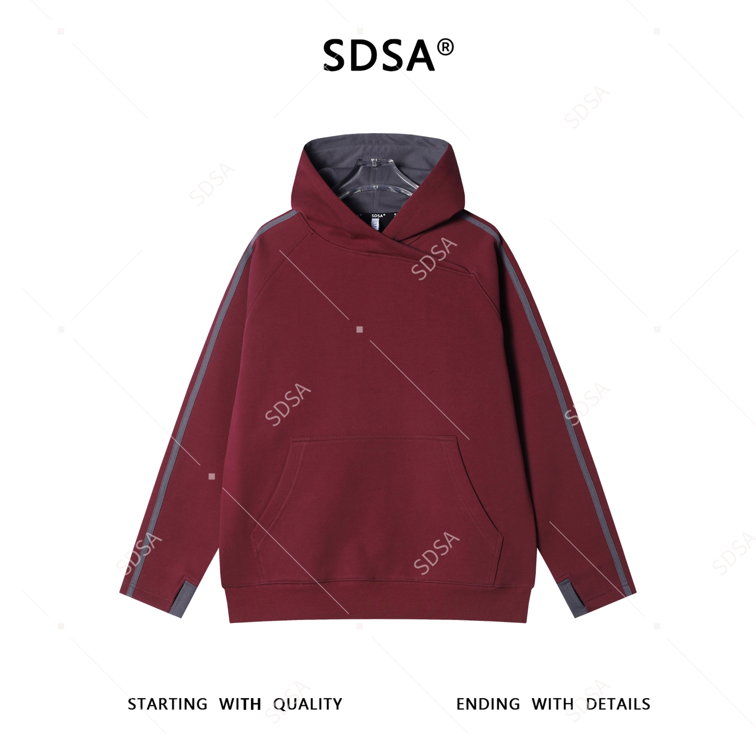 SDSA男士秋冬新款痞帅男装高街潮牌撞色织带连帽卫衣百搭宽松上衣