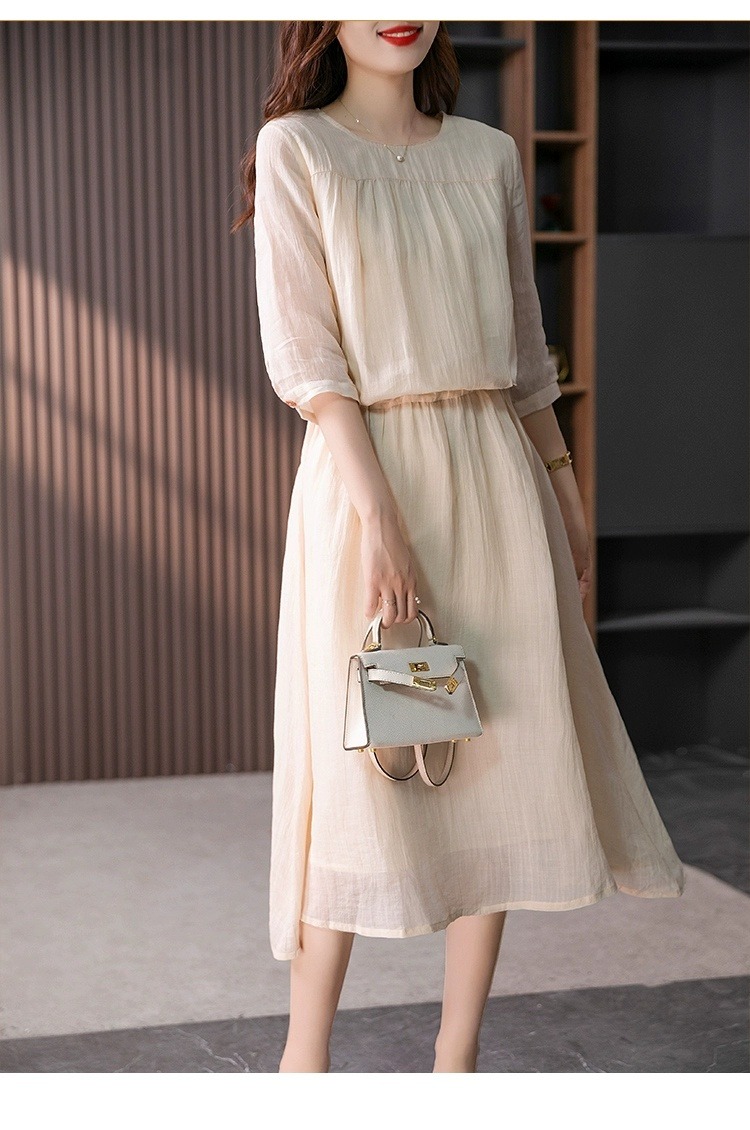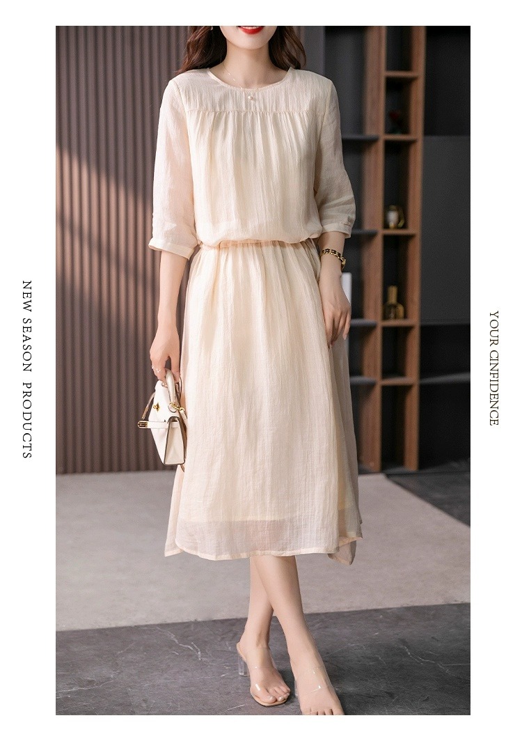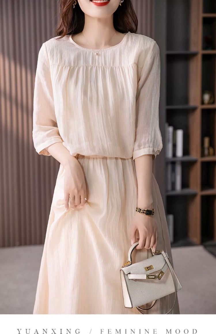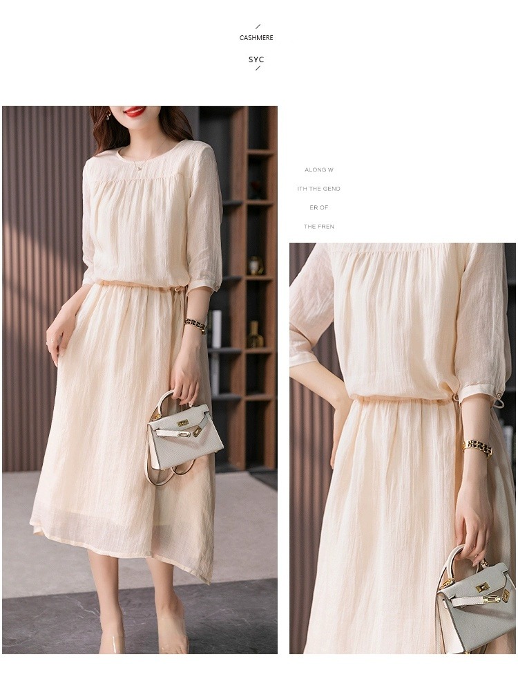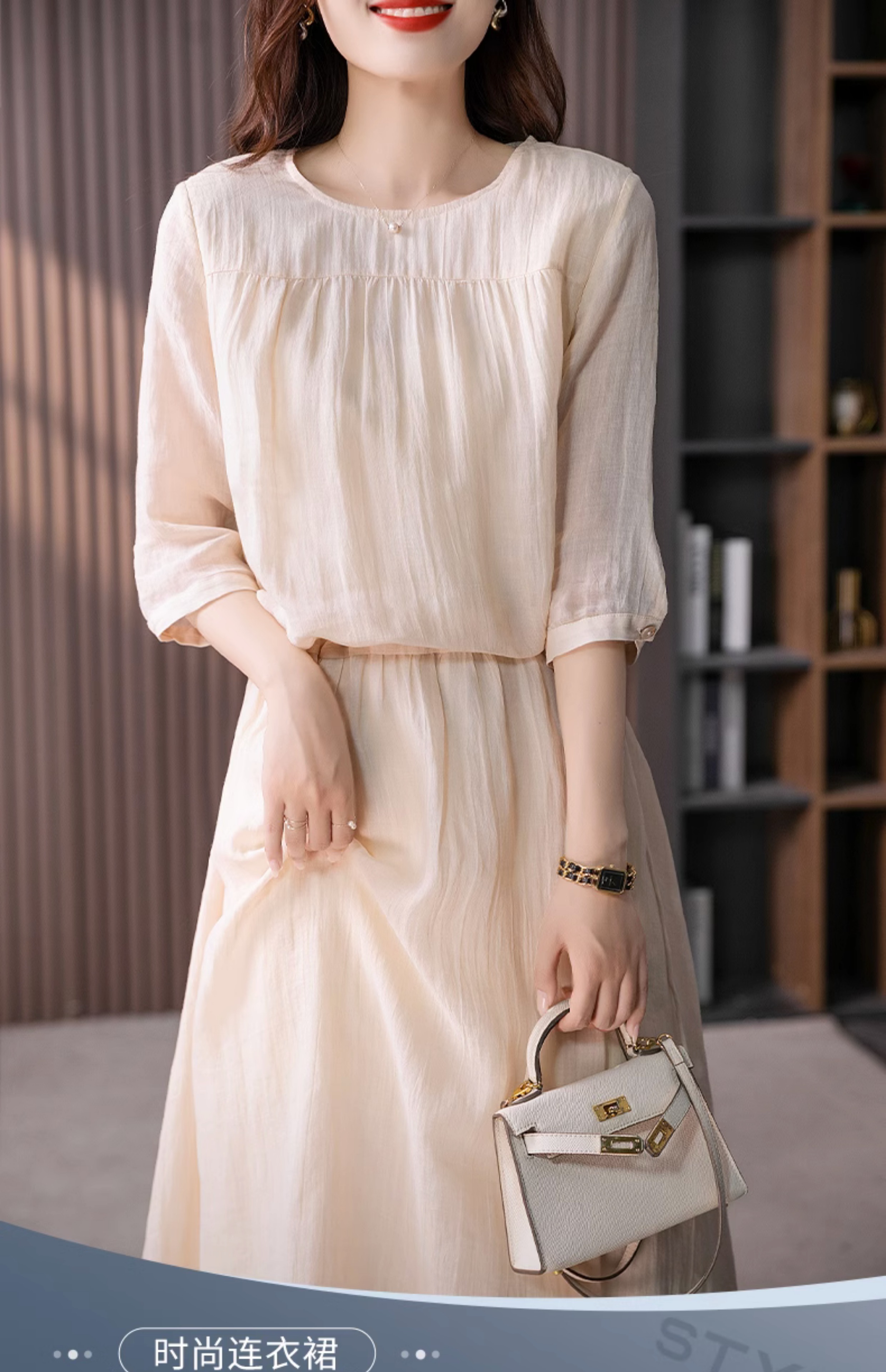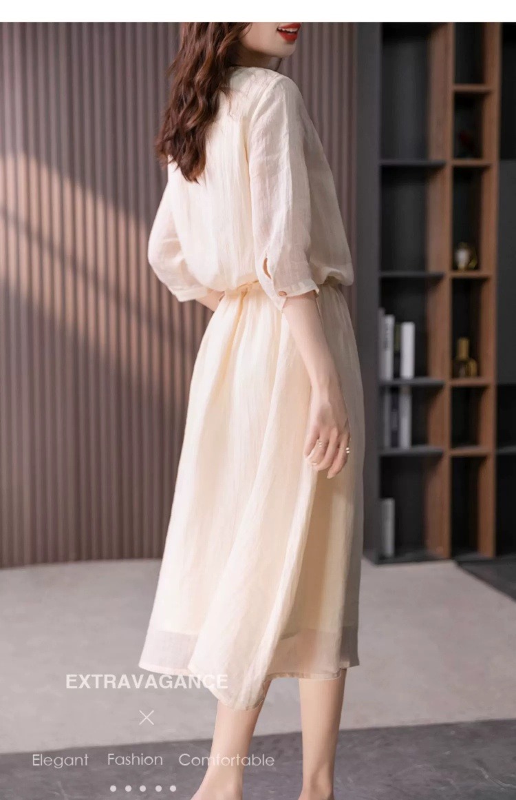 【现货7天】复古苎麻连衣裙女2023夏季新款宽松飘逸气质优雅减龄长裙子