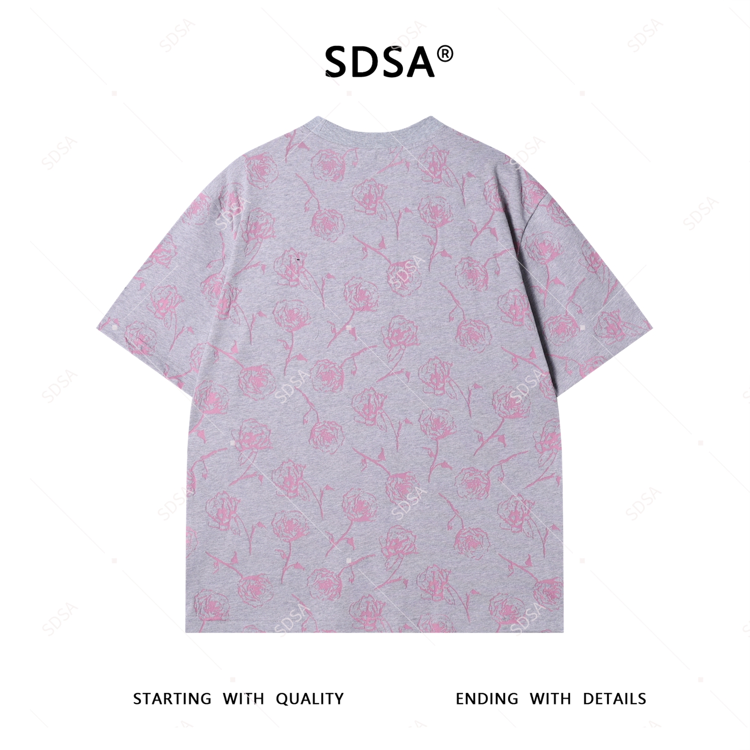 T4472SDSA男士短袖t恤2025新款轻痞帅男装撞色割破玫瑰花设计网红款