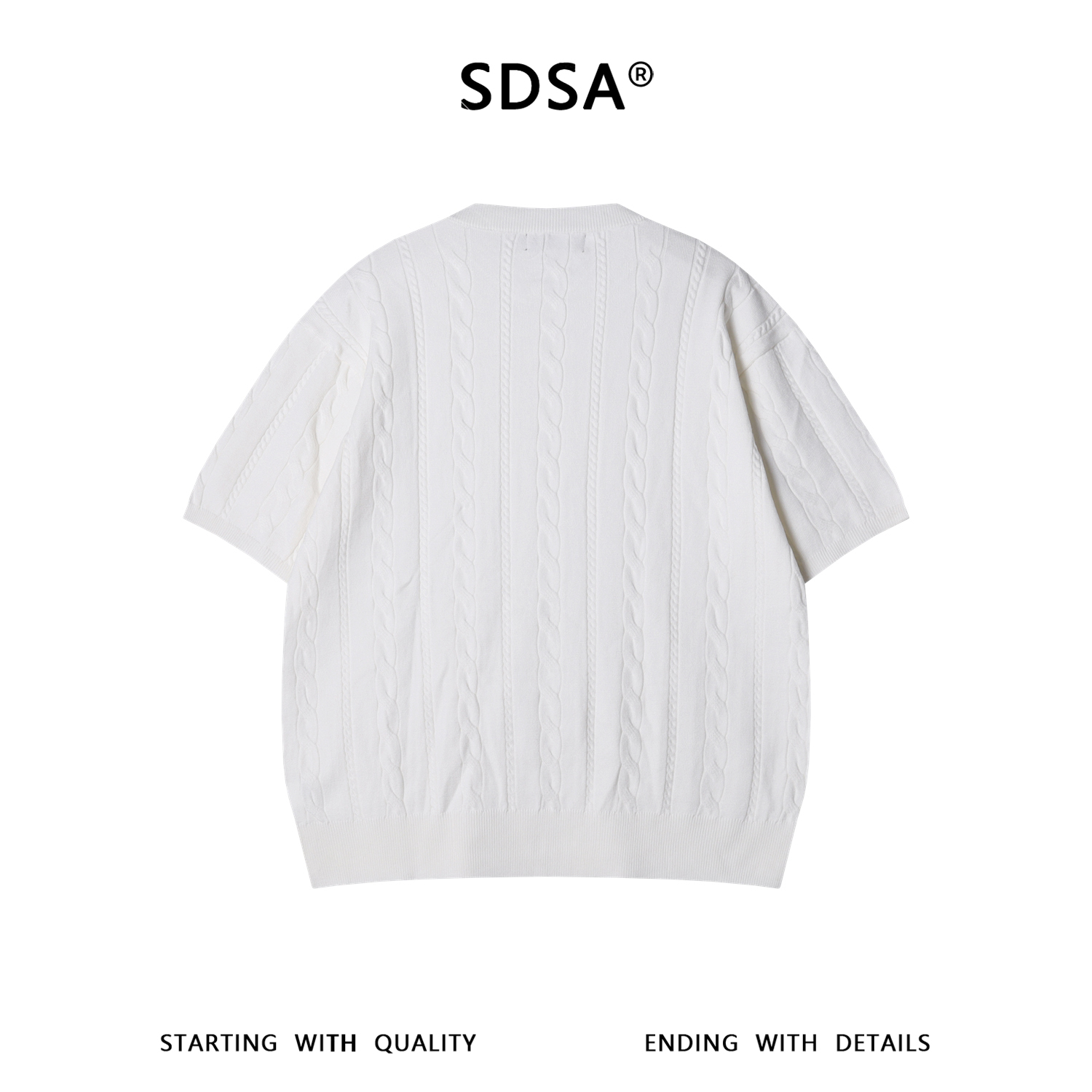 SDSA男装2026新款高贵轻奢老钱风纯色竖纹半纽扣设计短袖T恤百搭