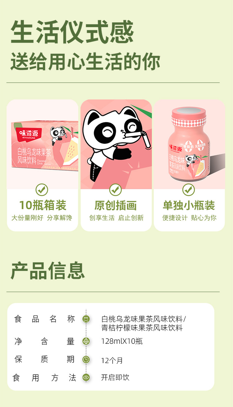 【酸甜清新,一口润心田~】味滋源白桃乌龙味果茶 整箱装 无添蔗糖 青桔柠檬味风味饮料饮品-QQ