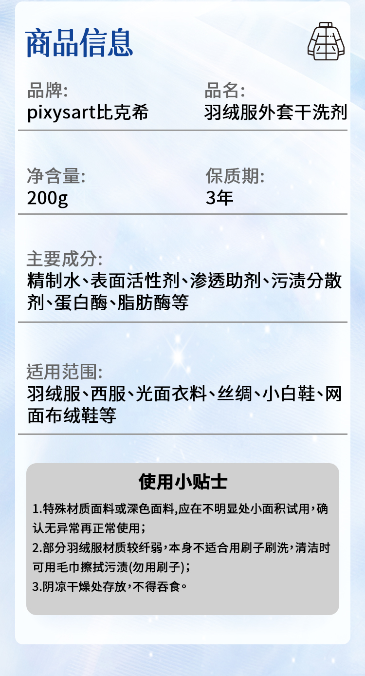 【原装进口】Pixysart比克希羽绒服干洗剂(200ml/瓶)