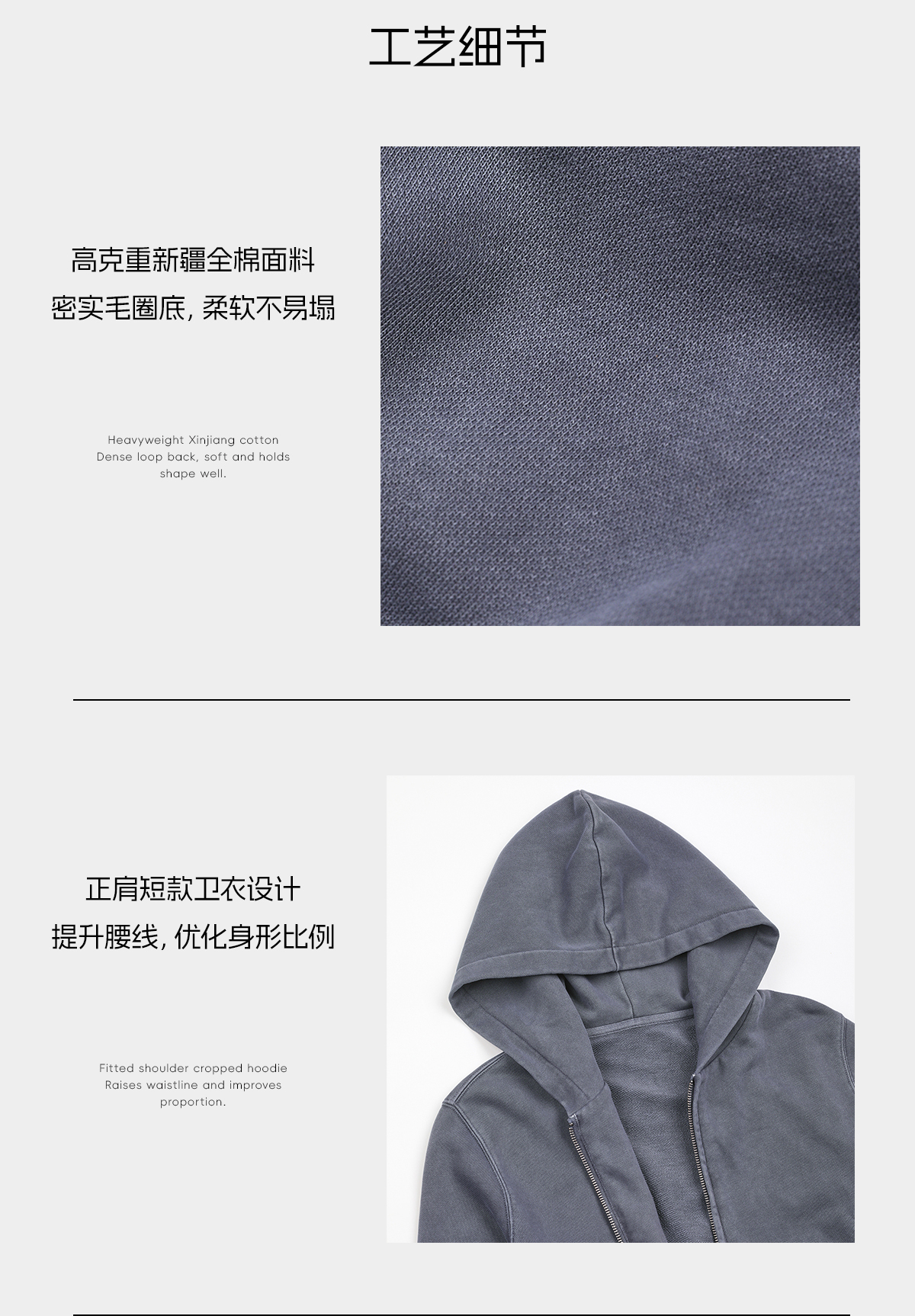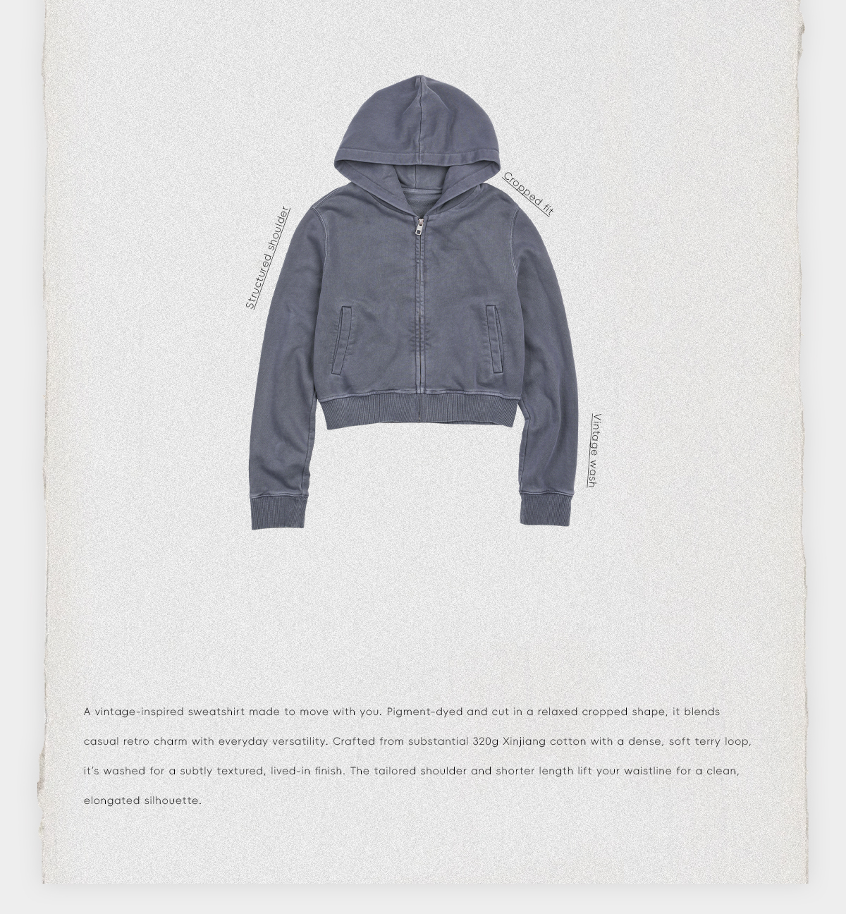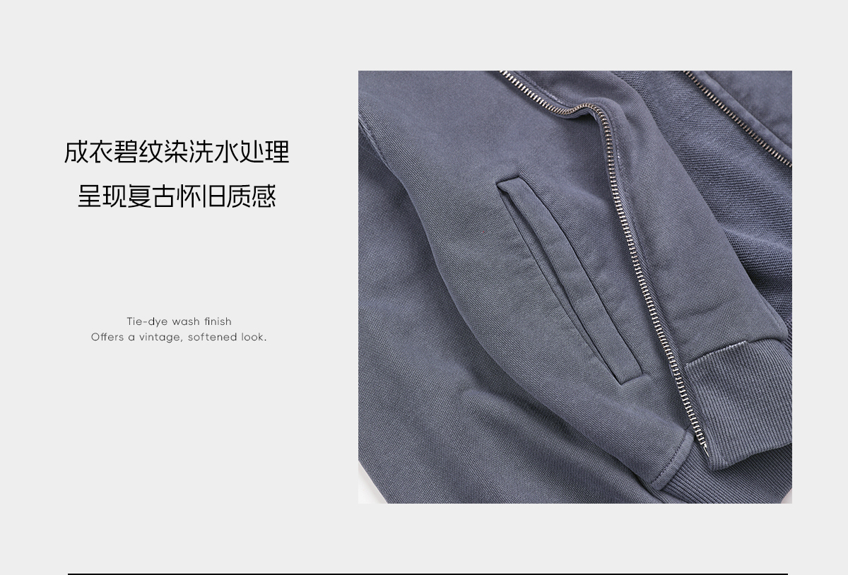 ROMI STUDIO“休闲简约”100精梳棉做旧磨白帽衫卫衣外套RWCWS67304