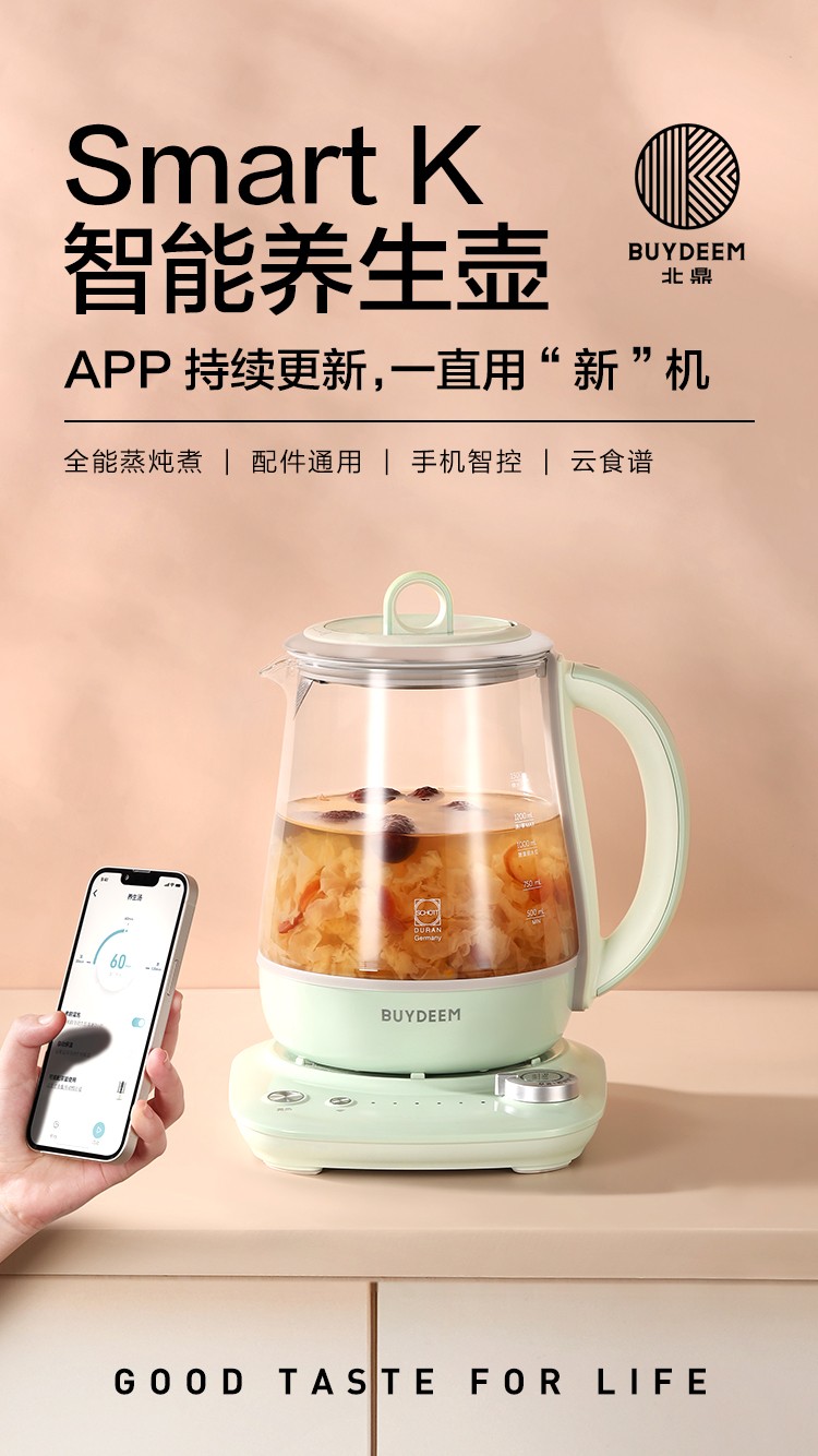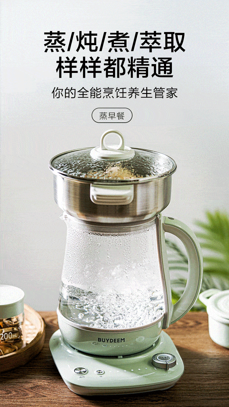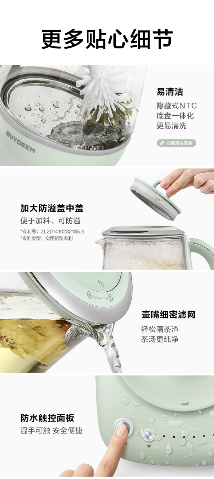 北鼎(Buydeem)智能养生壶 1500ml智联wifi家用多功能煮茶壶 办公室煮茶器 全能蒸炖煮 手机智控 Smart K IK121 浅杉绿