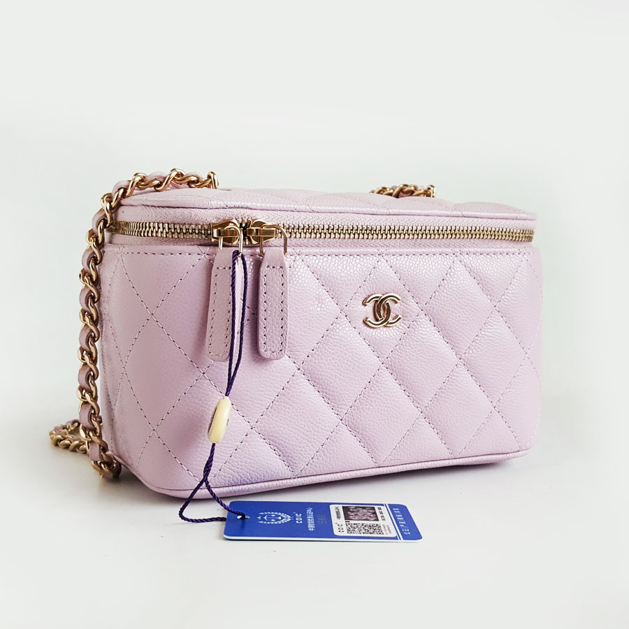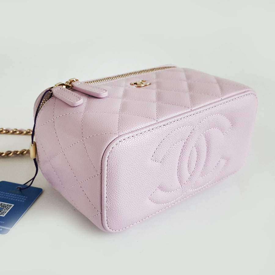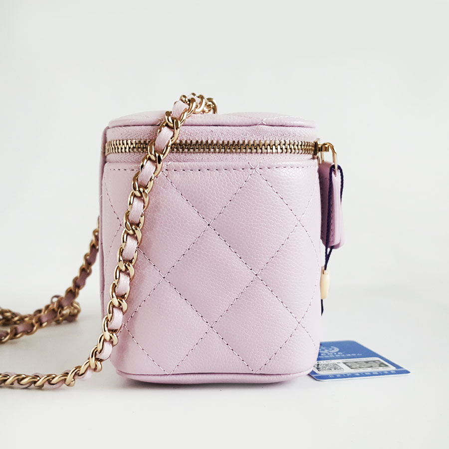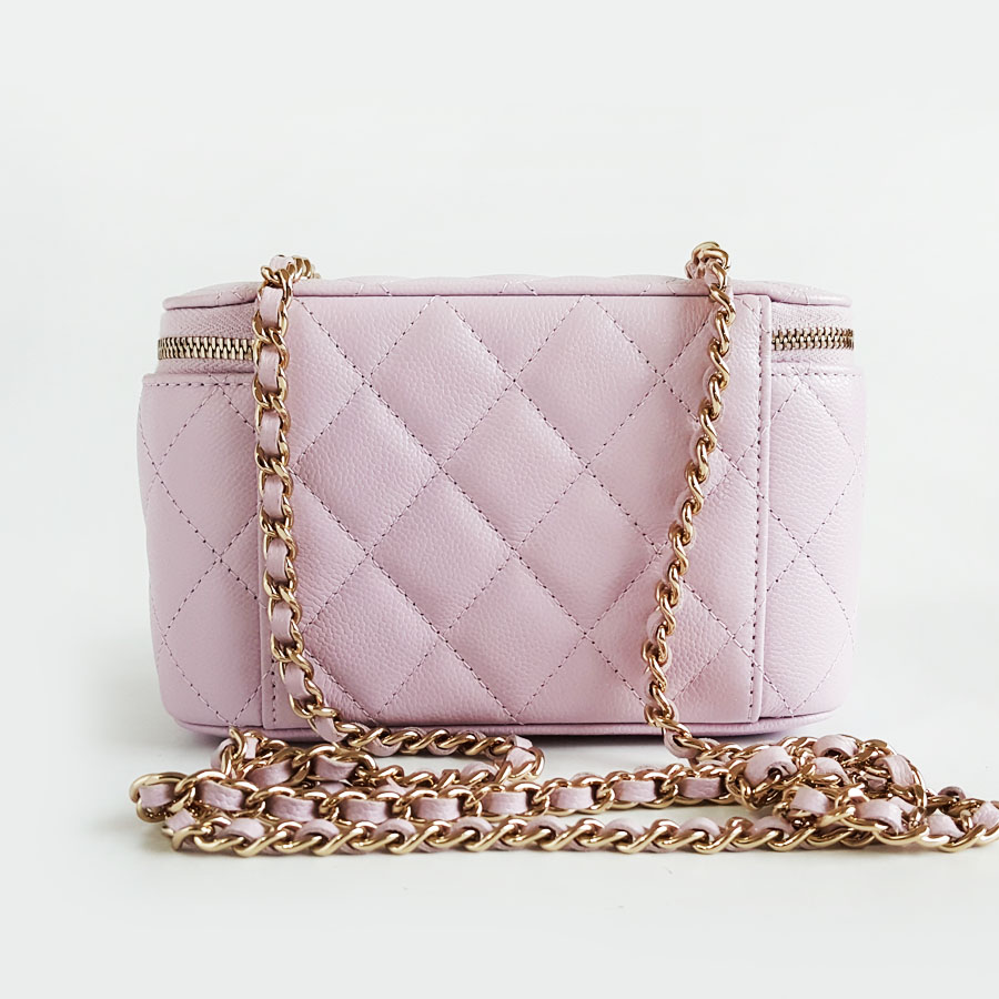 【闲置】CHANEL香奈儿AP1341 B10583 NW78424S淡紫色荔枝牛皮化妆盒链条包单肩斜挎包女士230326NJS08
