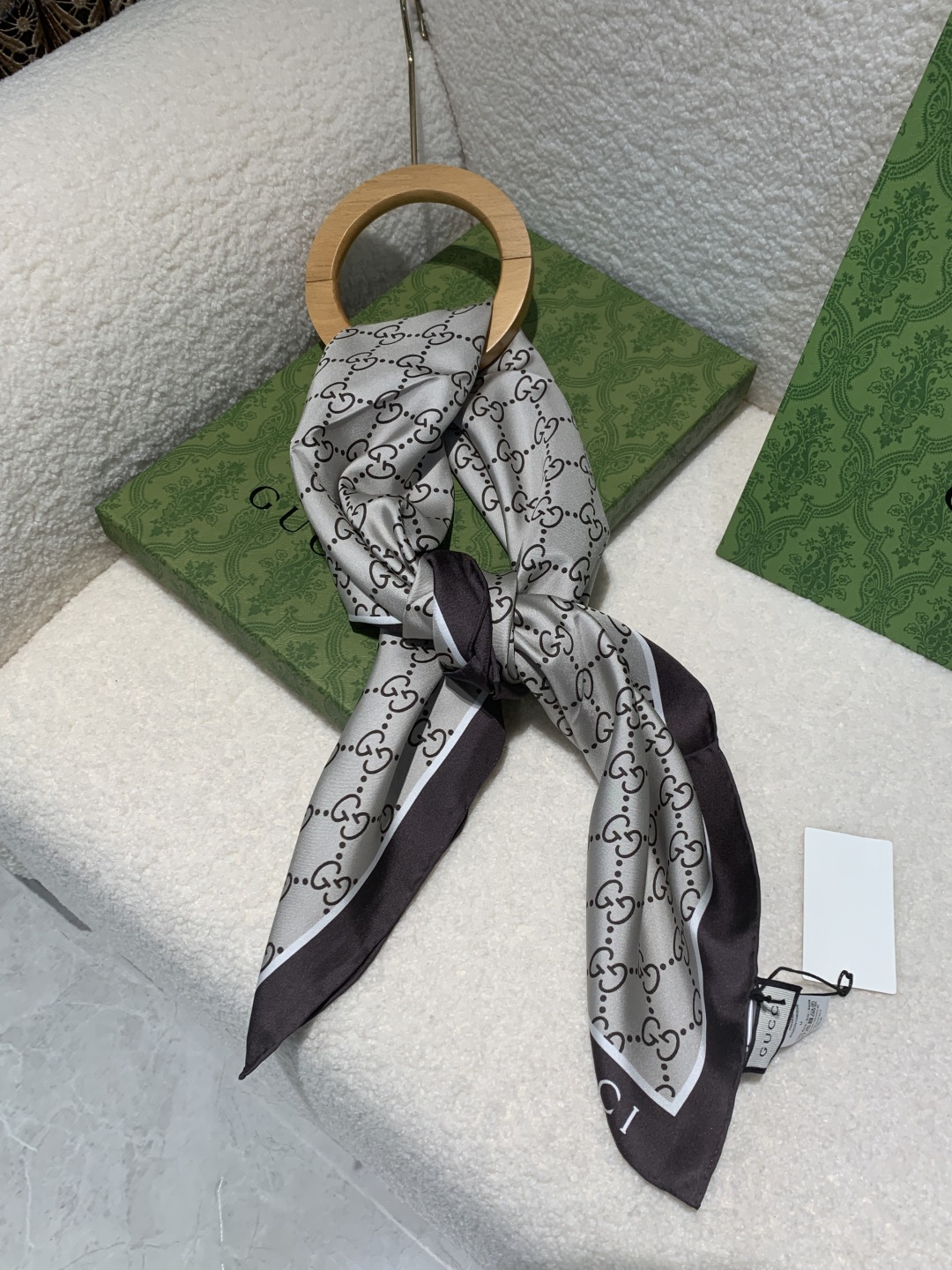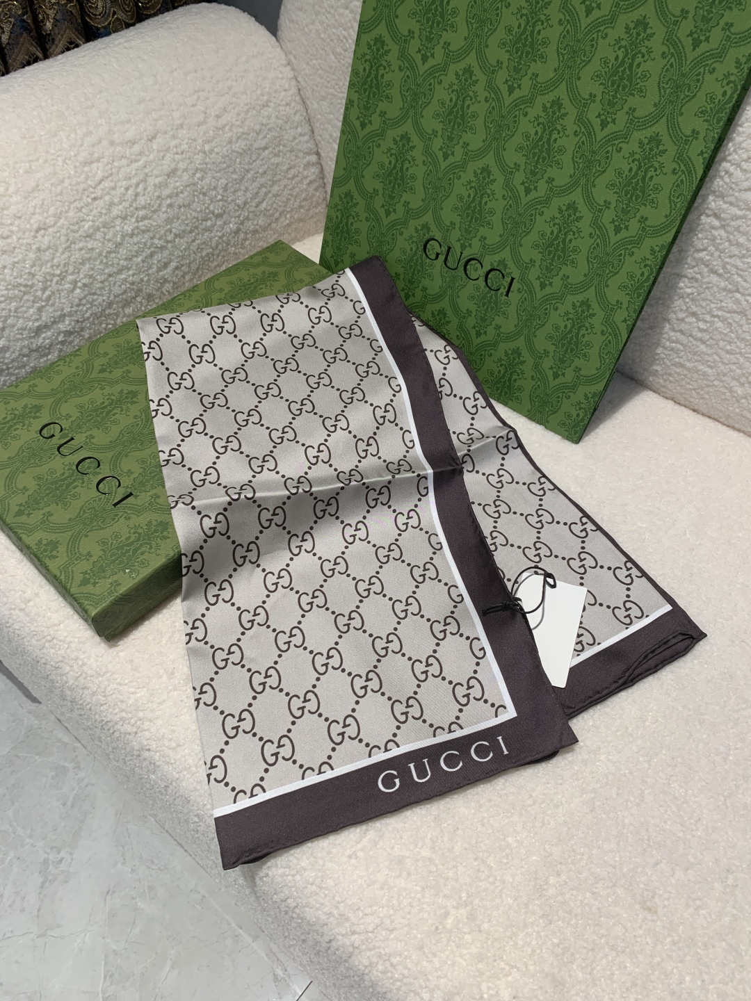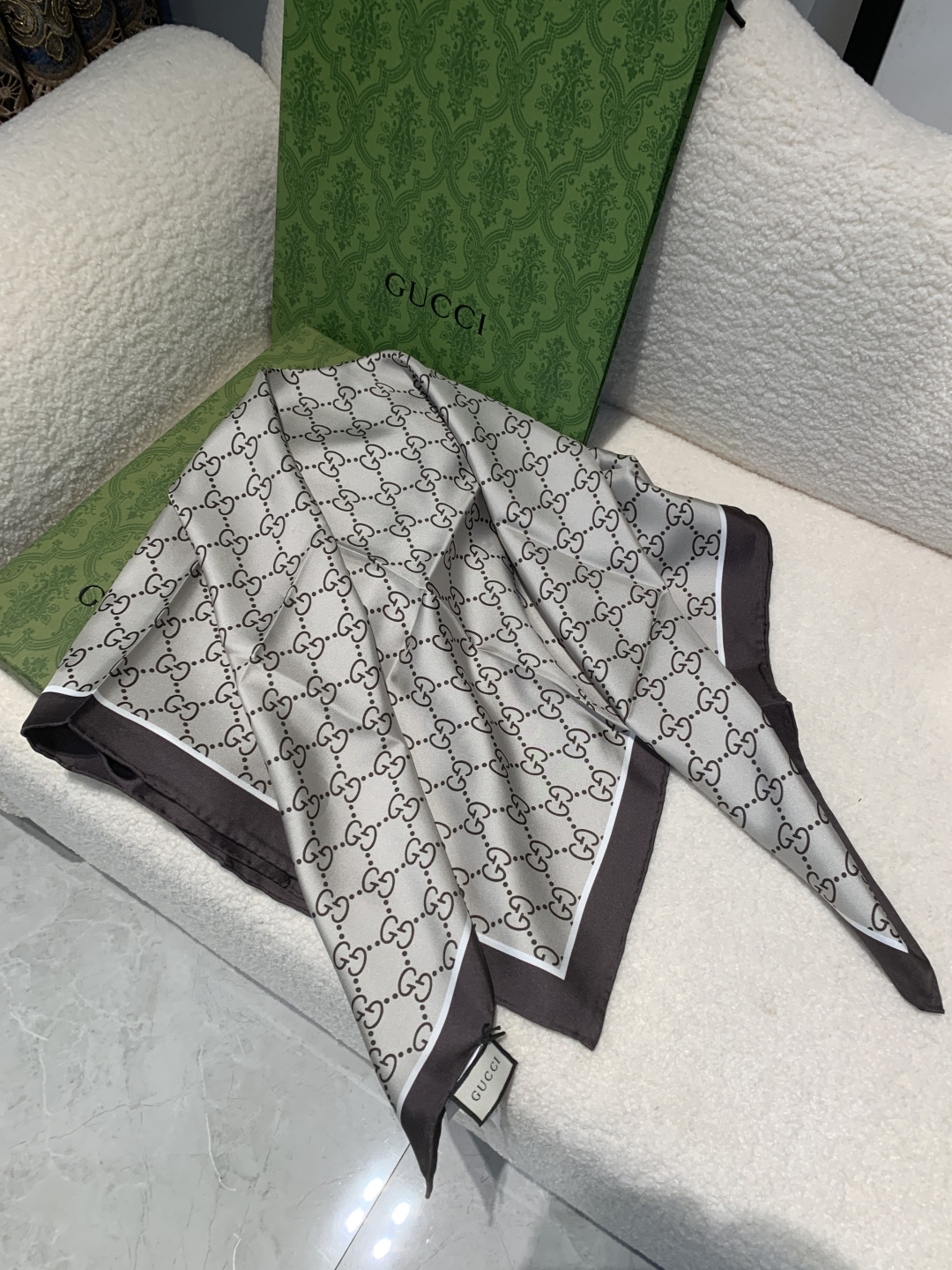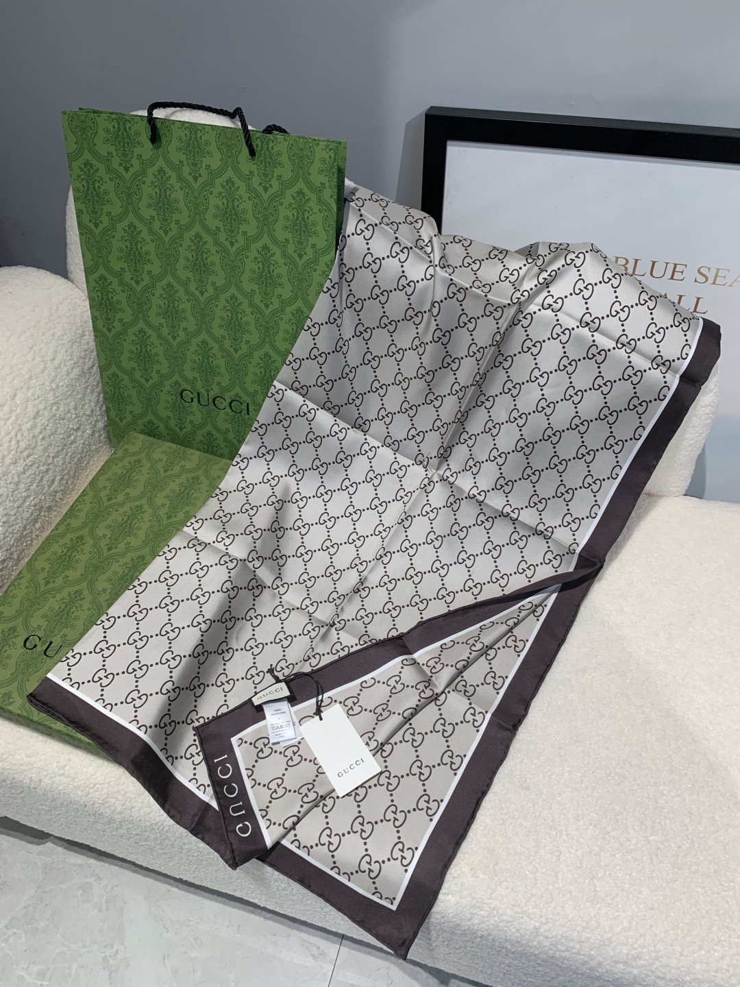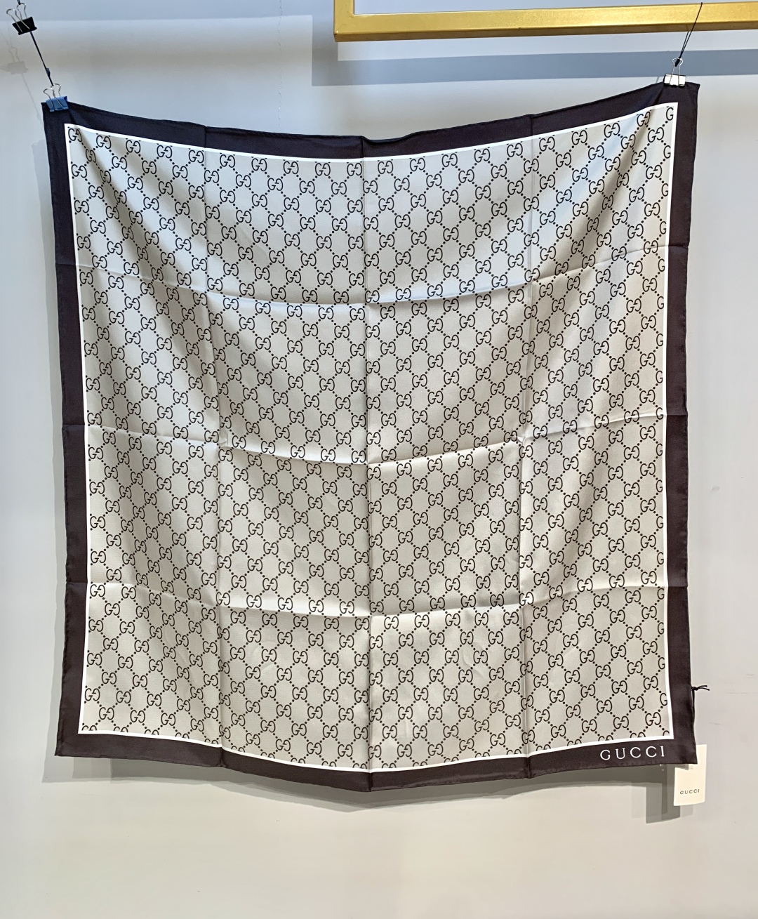新到Gucci正适合春季搭配衣服,桑蚕丝材质,光滑亲肤,能让整体搭配更加生动有层 品牌典藏图案在与全新醒目印花的衬托下熠熠生辉。这款方巾匠心经典老花印花!