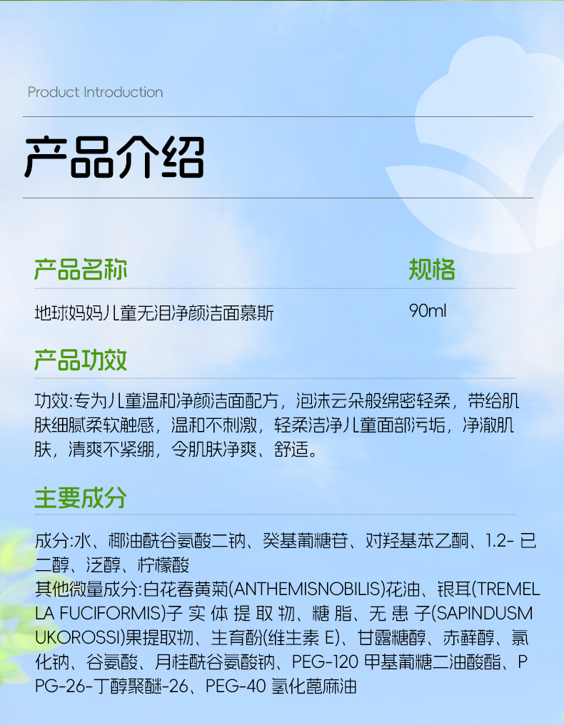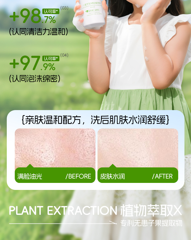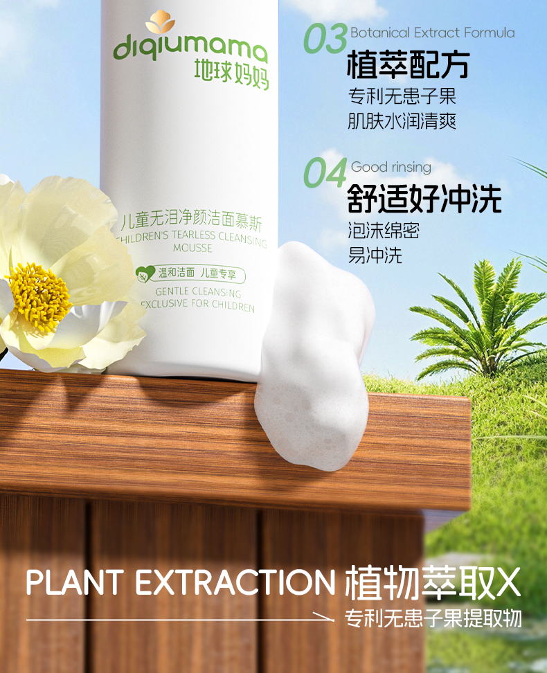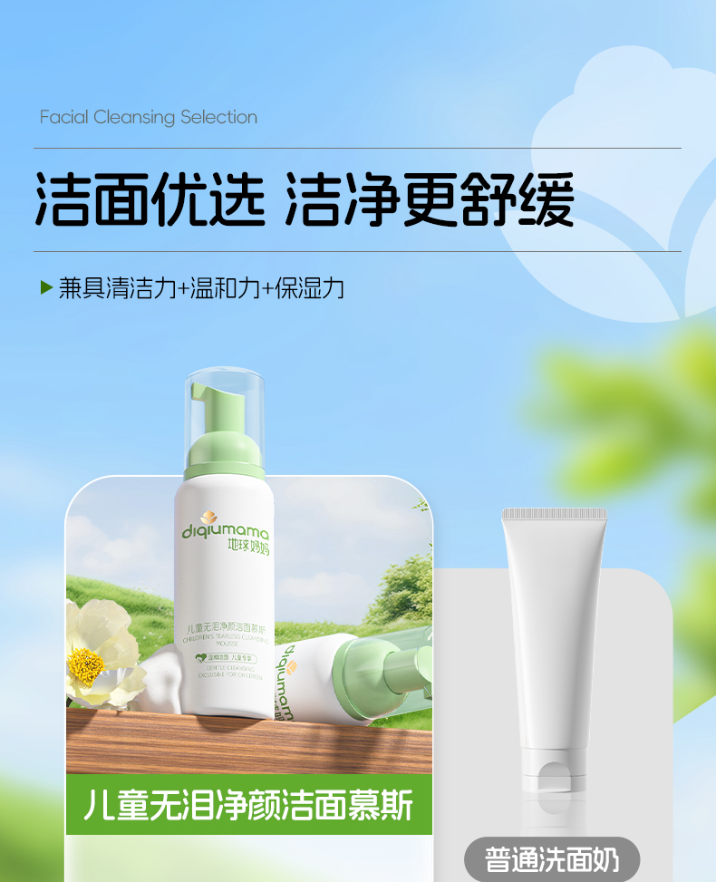 地球妈妈儿童无泪净颜洁面慕斯控油粉刺净痘螨青春期学生洗面奶