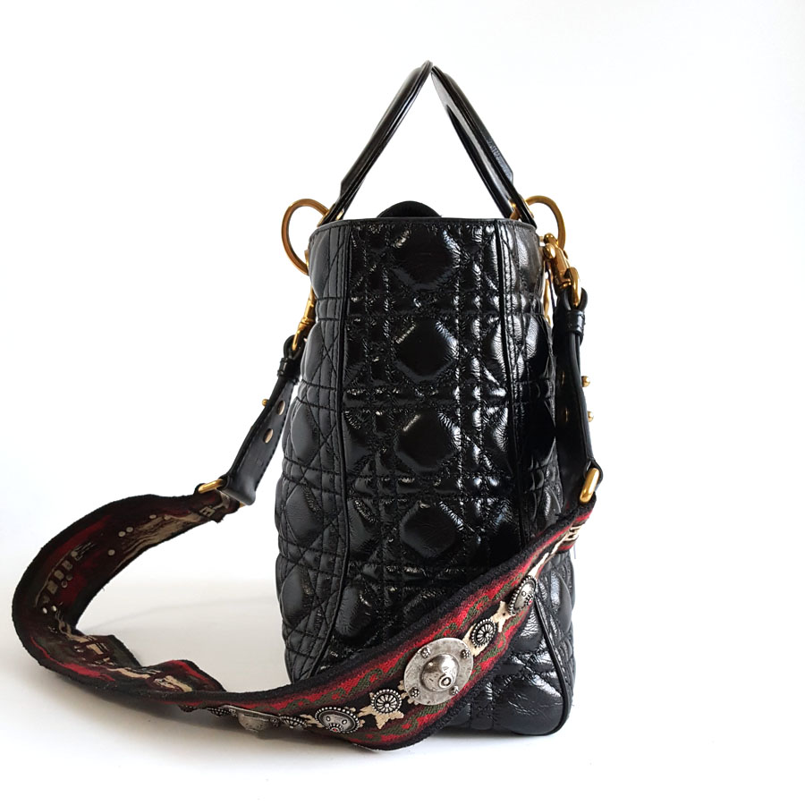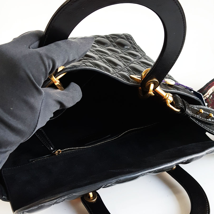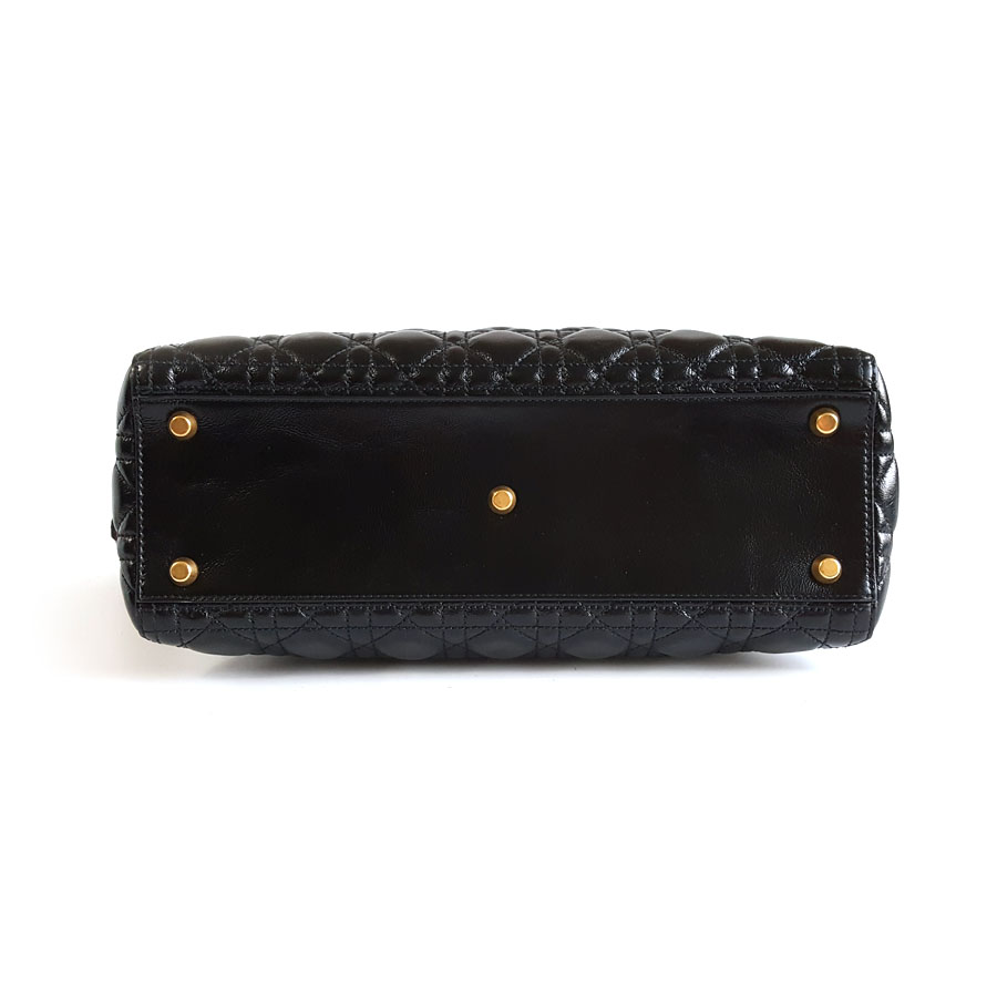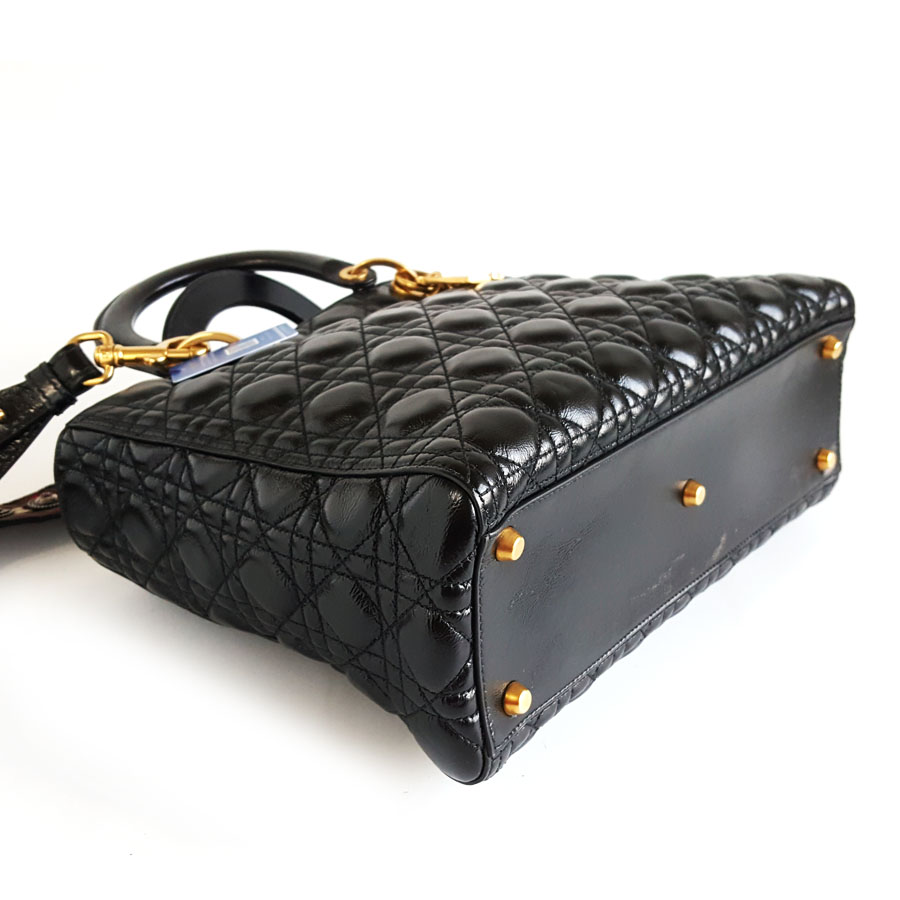 【95新】Dior迪奥Lady Dior手袋黑金油蜡皮七格戴妃金属肩带手提单肩包女士020226NJT20