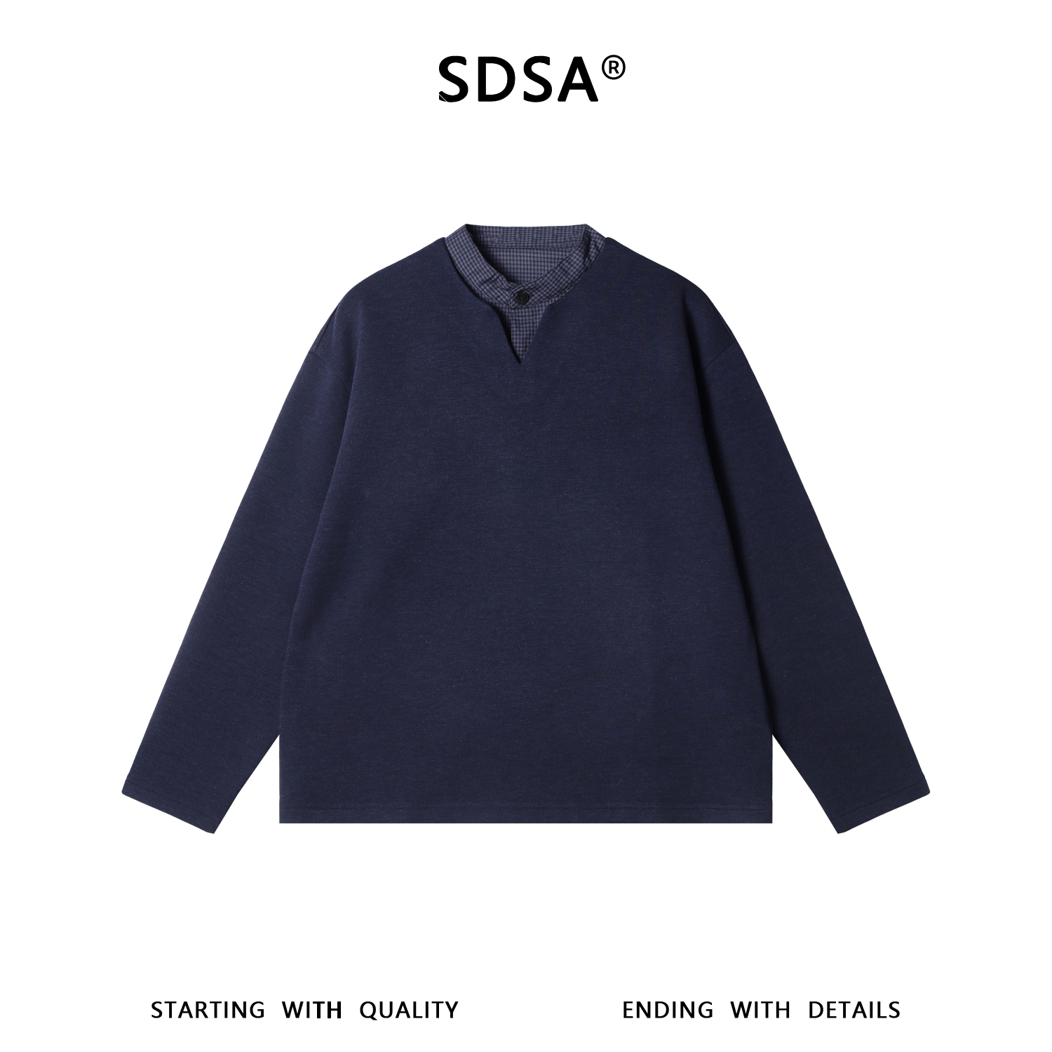SDSA男士秋冬新款痞帅男装老钱风拼接立领假两件长袖T恤百搭时尚