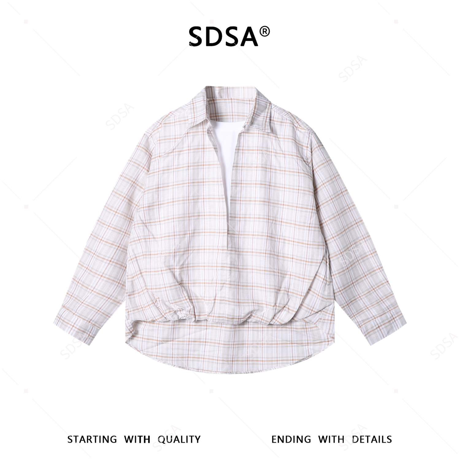 2645SDSA男装2026新款高贵轻奢众设计感格纹衬衫前短后长设计套头衬衣