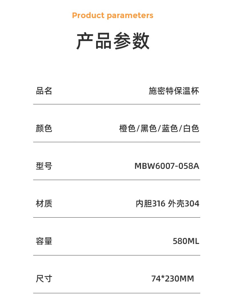 施密特(simita) 德国新款网红闷茶杯316不锈钢老白茶焖泡杯男女随行水杯礼品刻字 MBW6007-058A(316不锈钢)