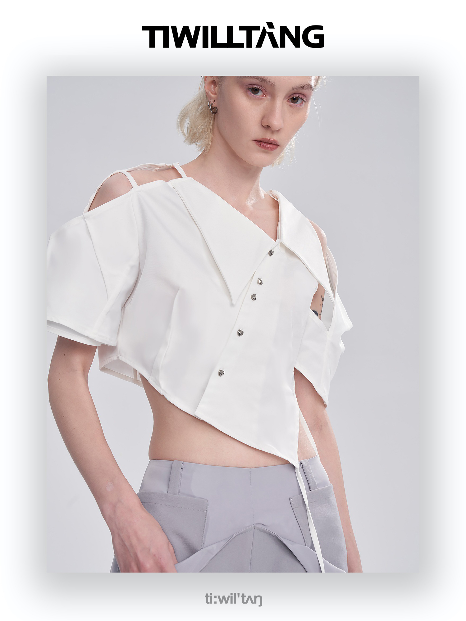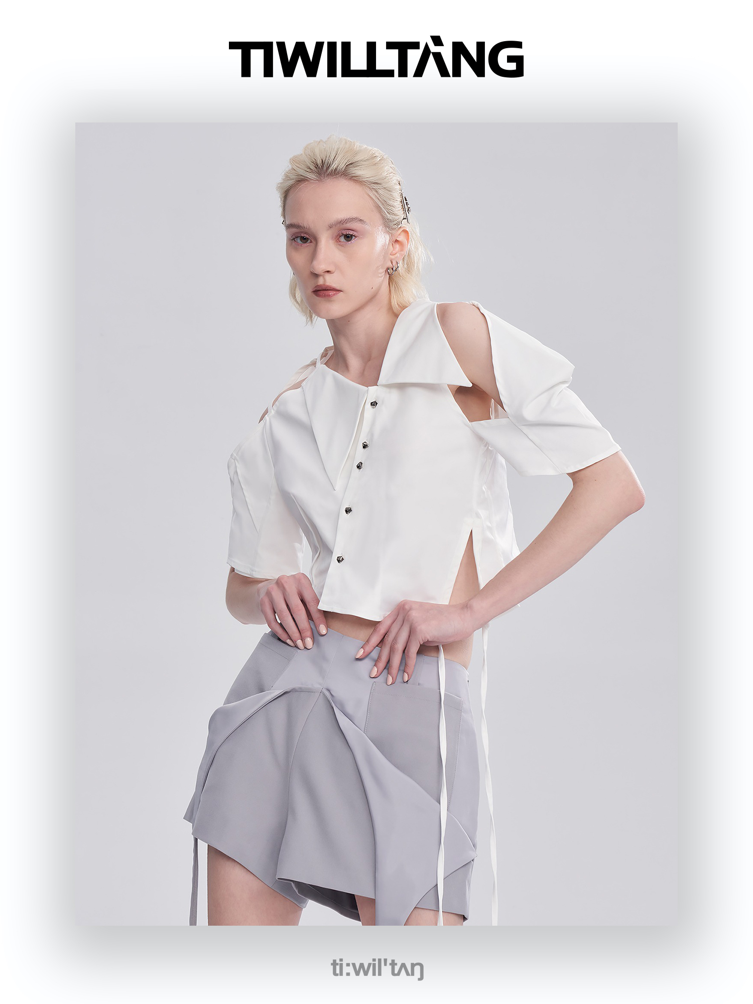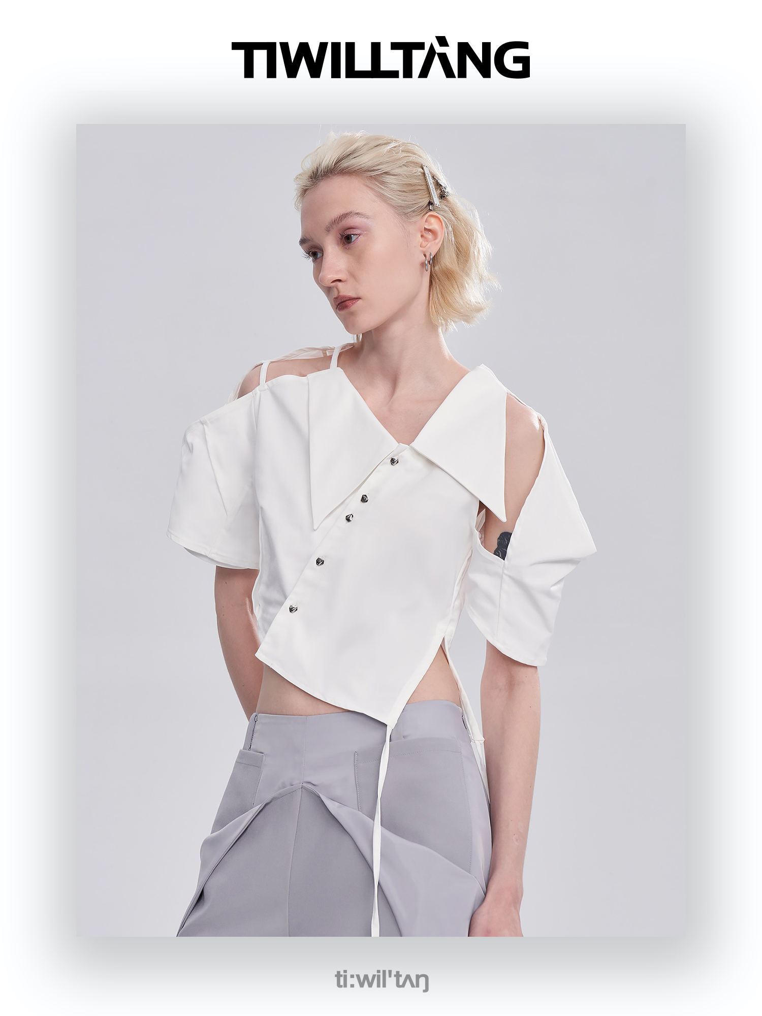 启世录TIWILLTANG“雾铂弥光”翻折袖简约衬衫