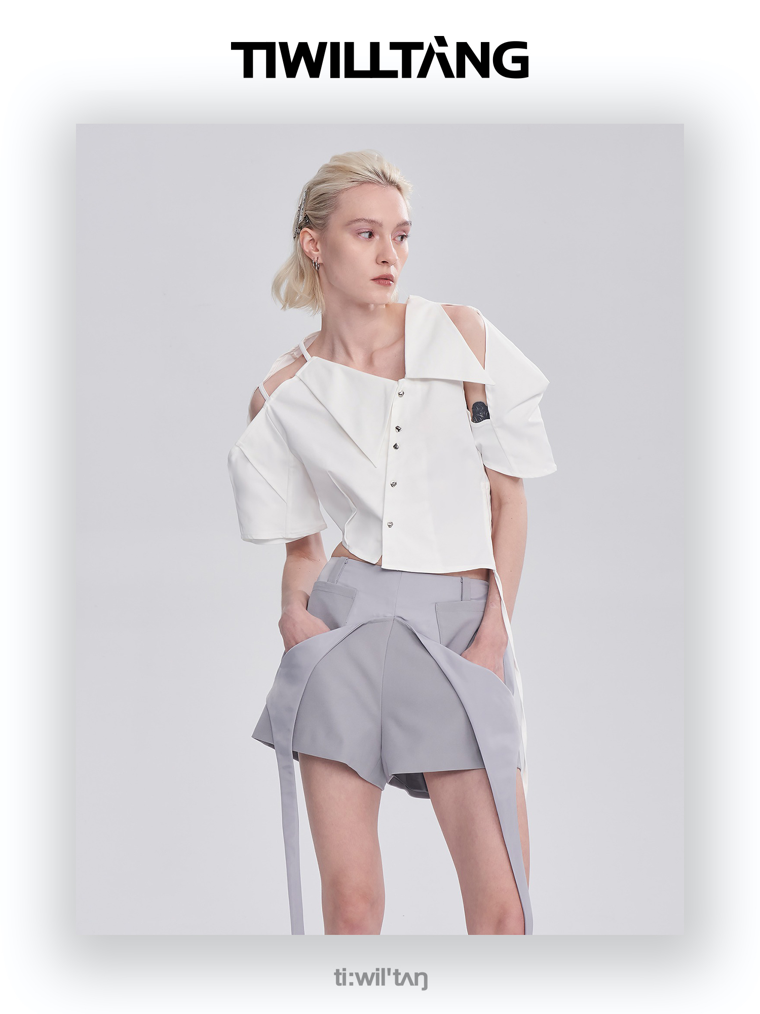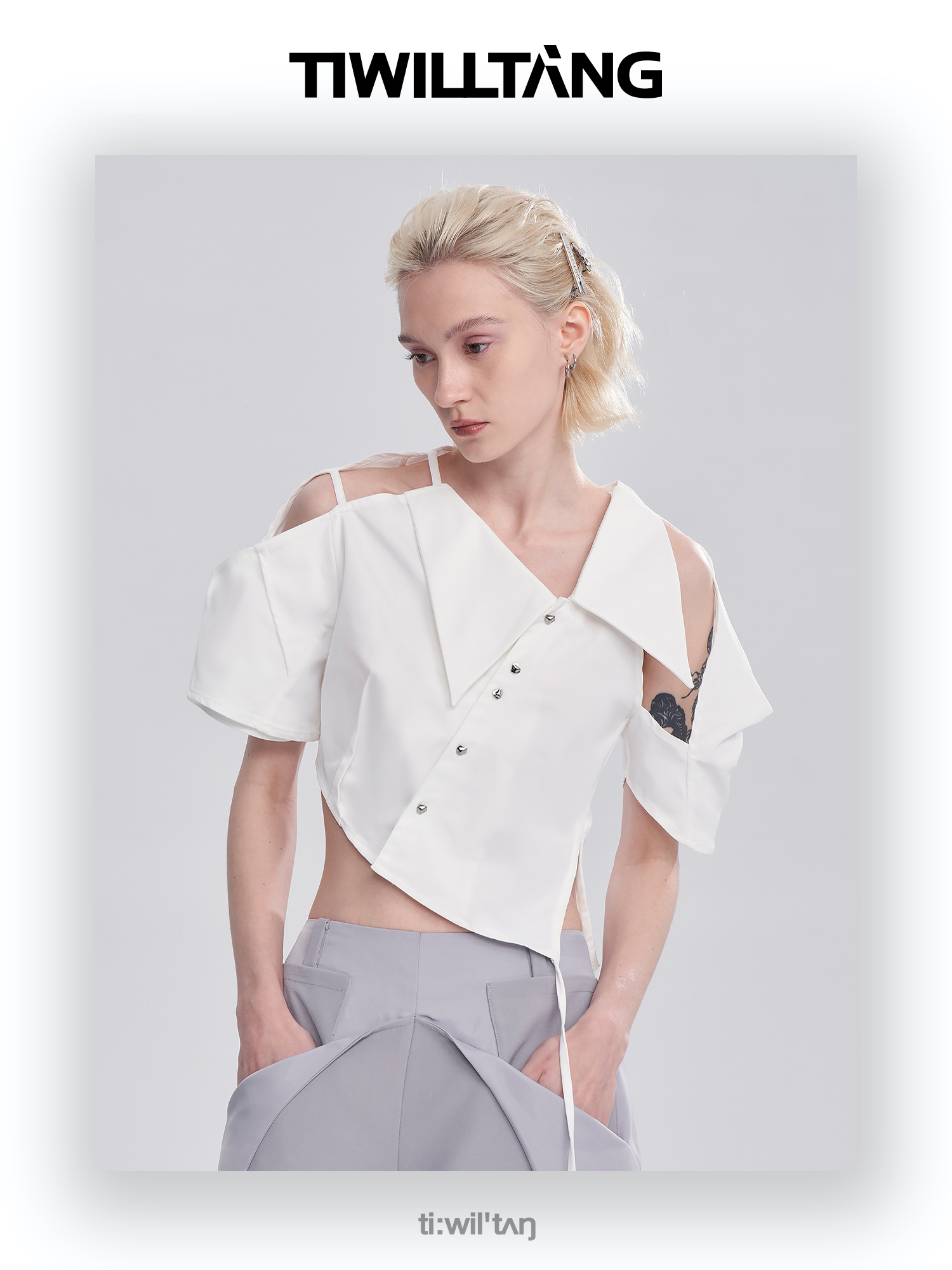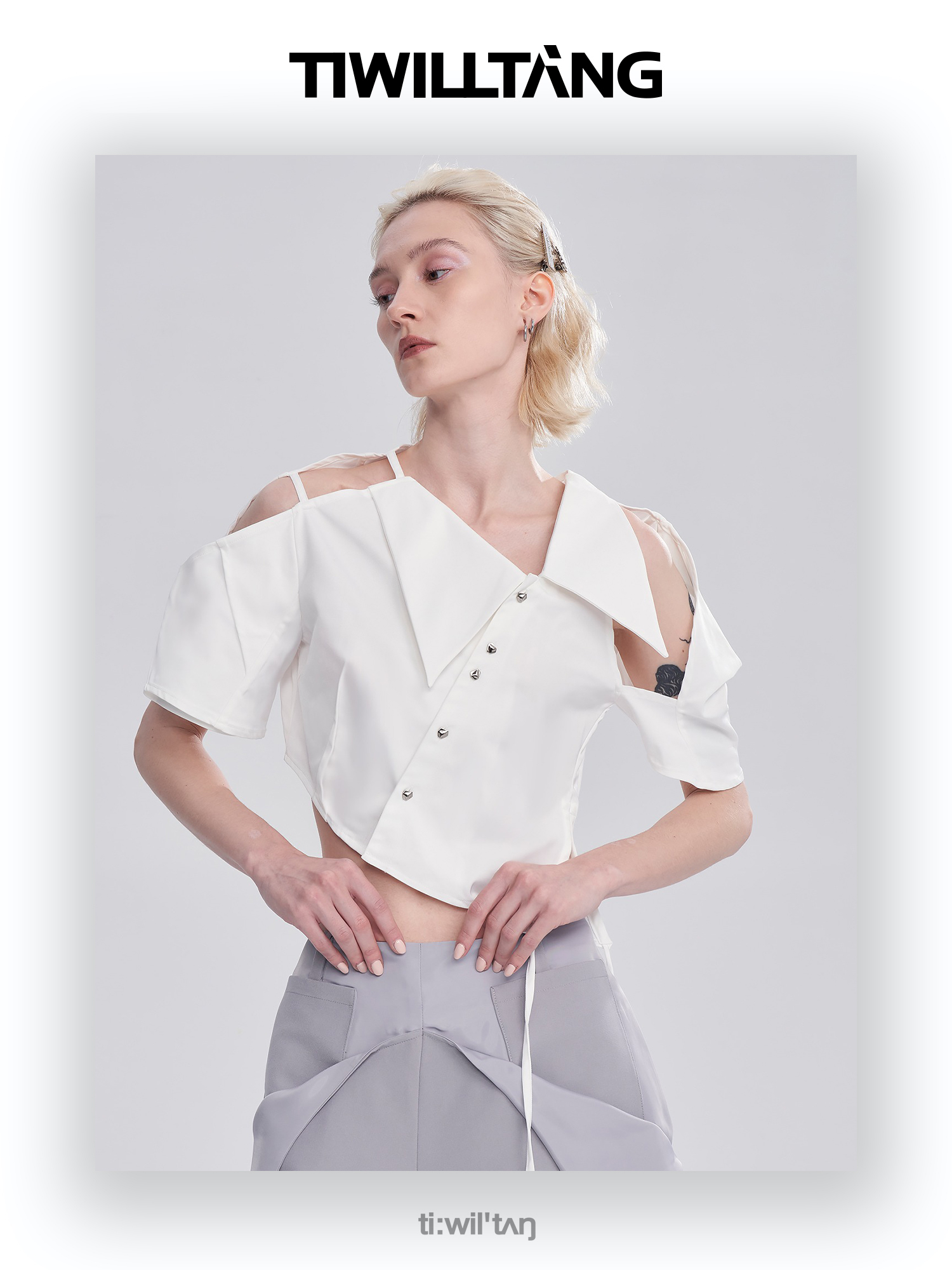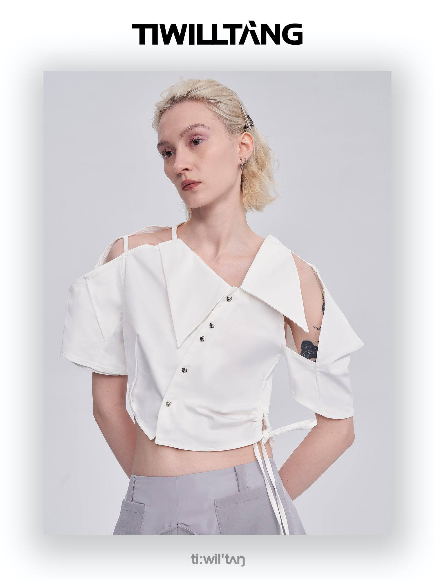 启世录TIWILLTANG“雾铂弥光”翻折袖简约衬衫