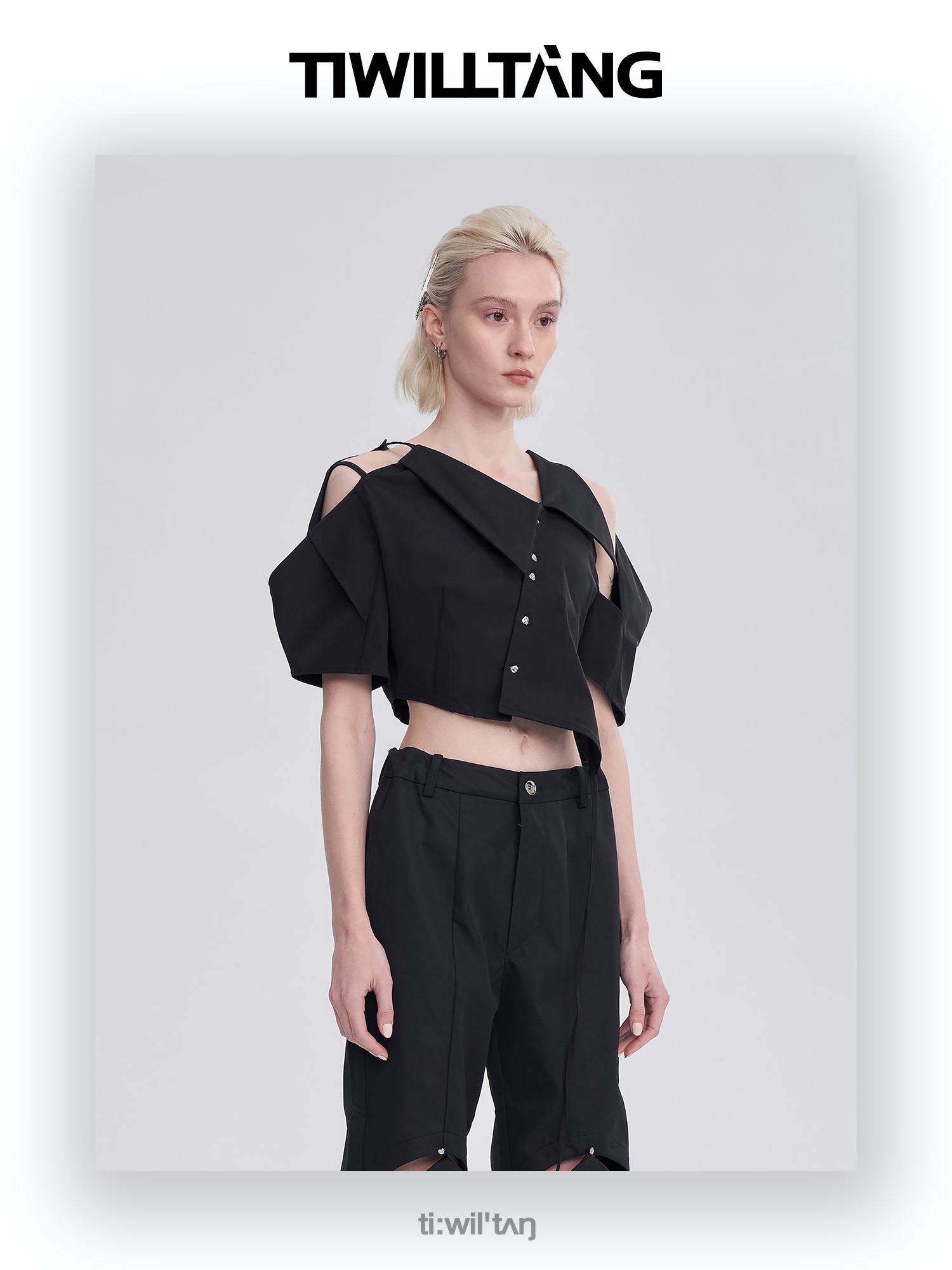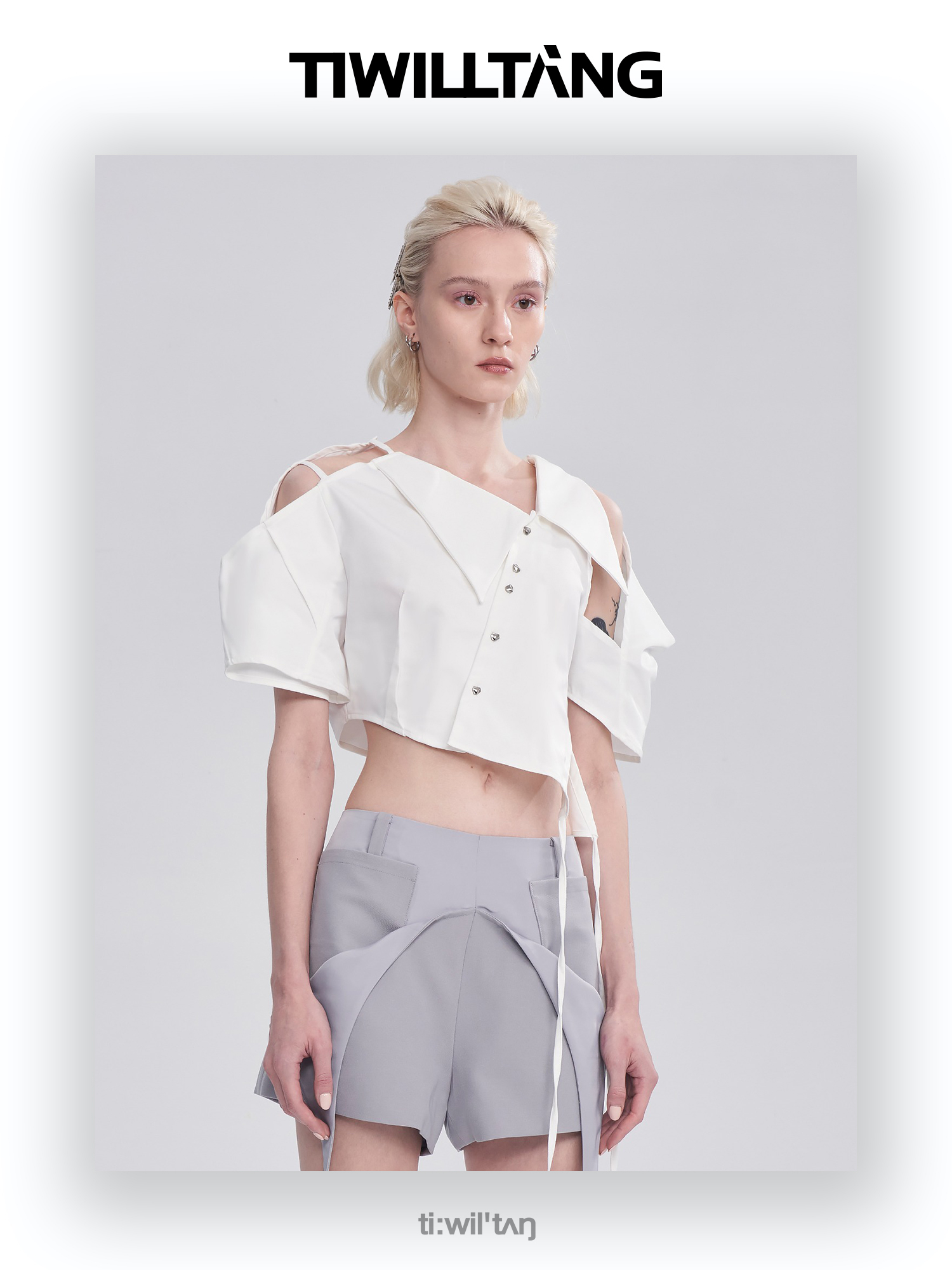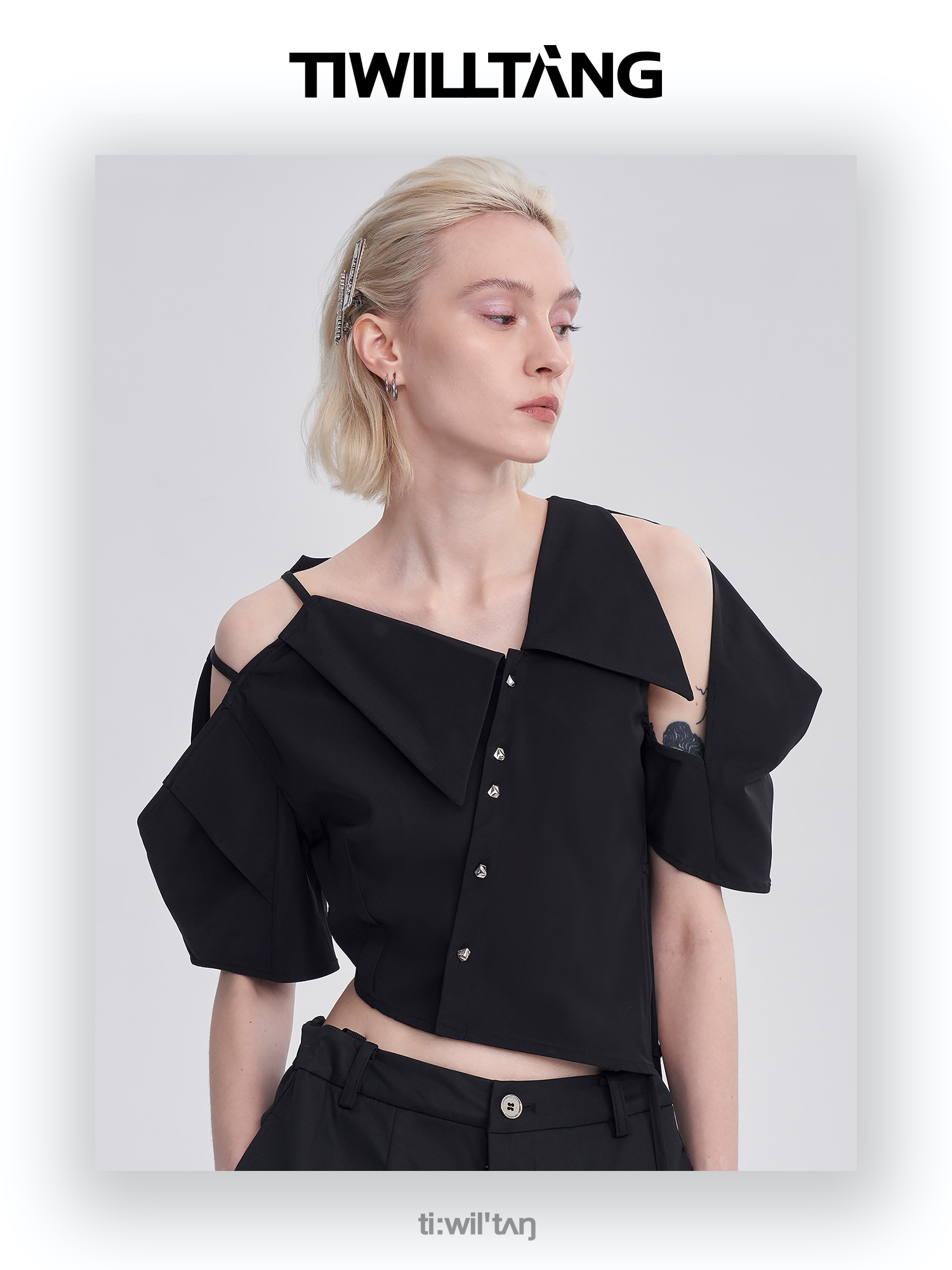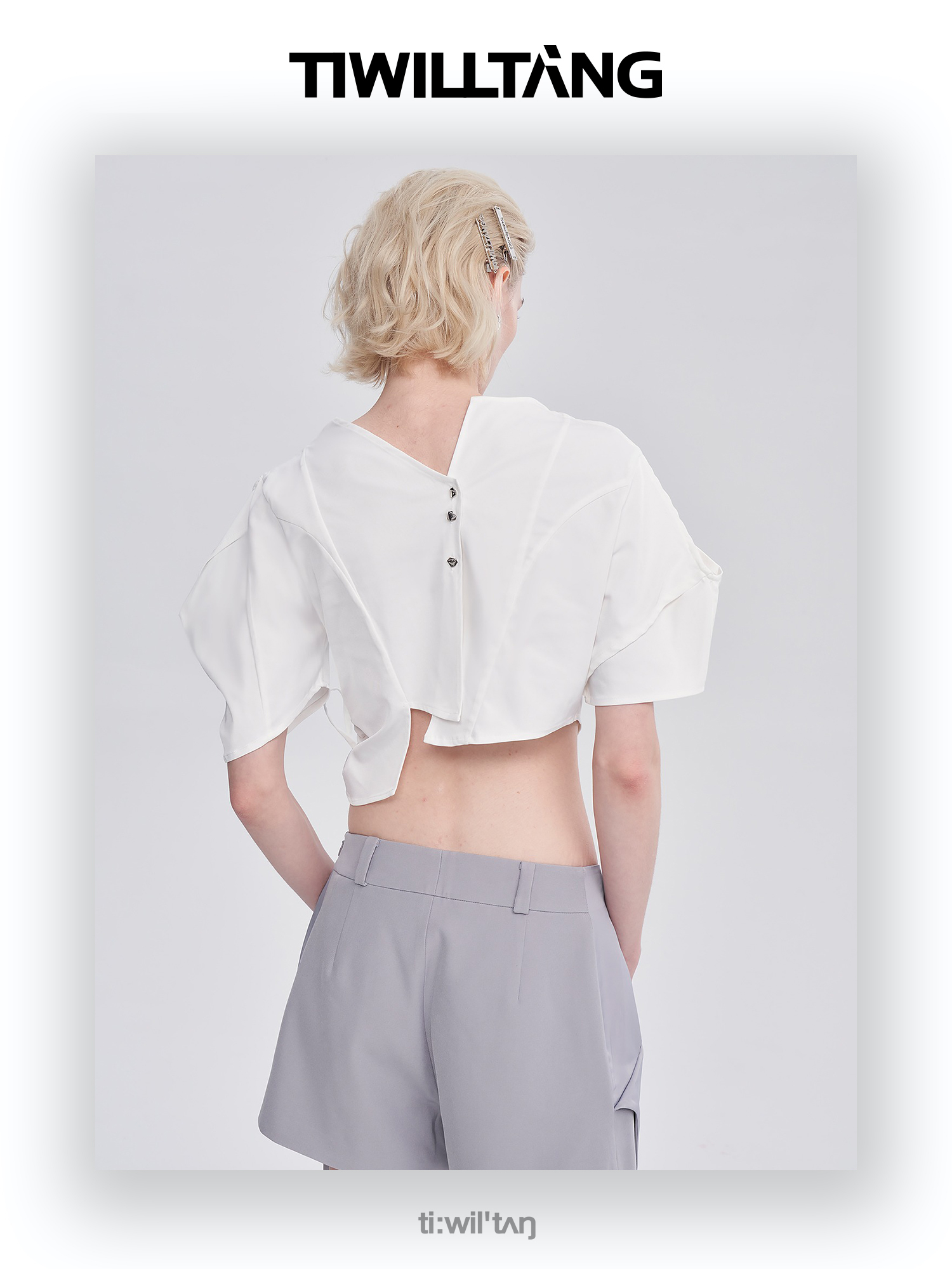 启世录TIWILLTANG“维度转折”多维立体翻折短袖上衣个性设计感女