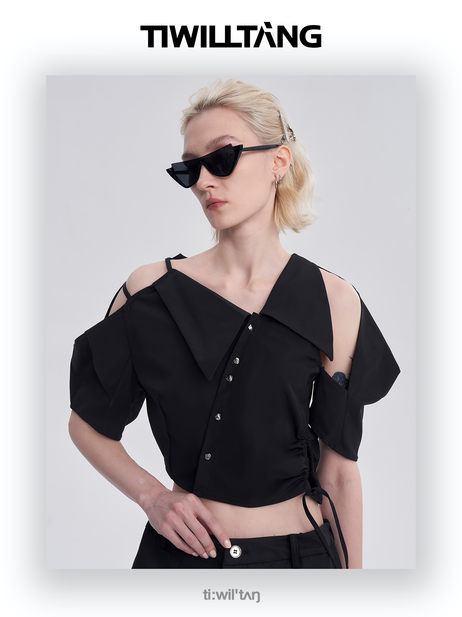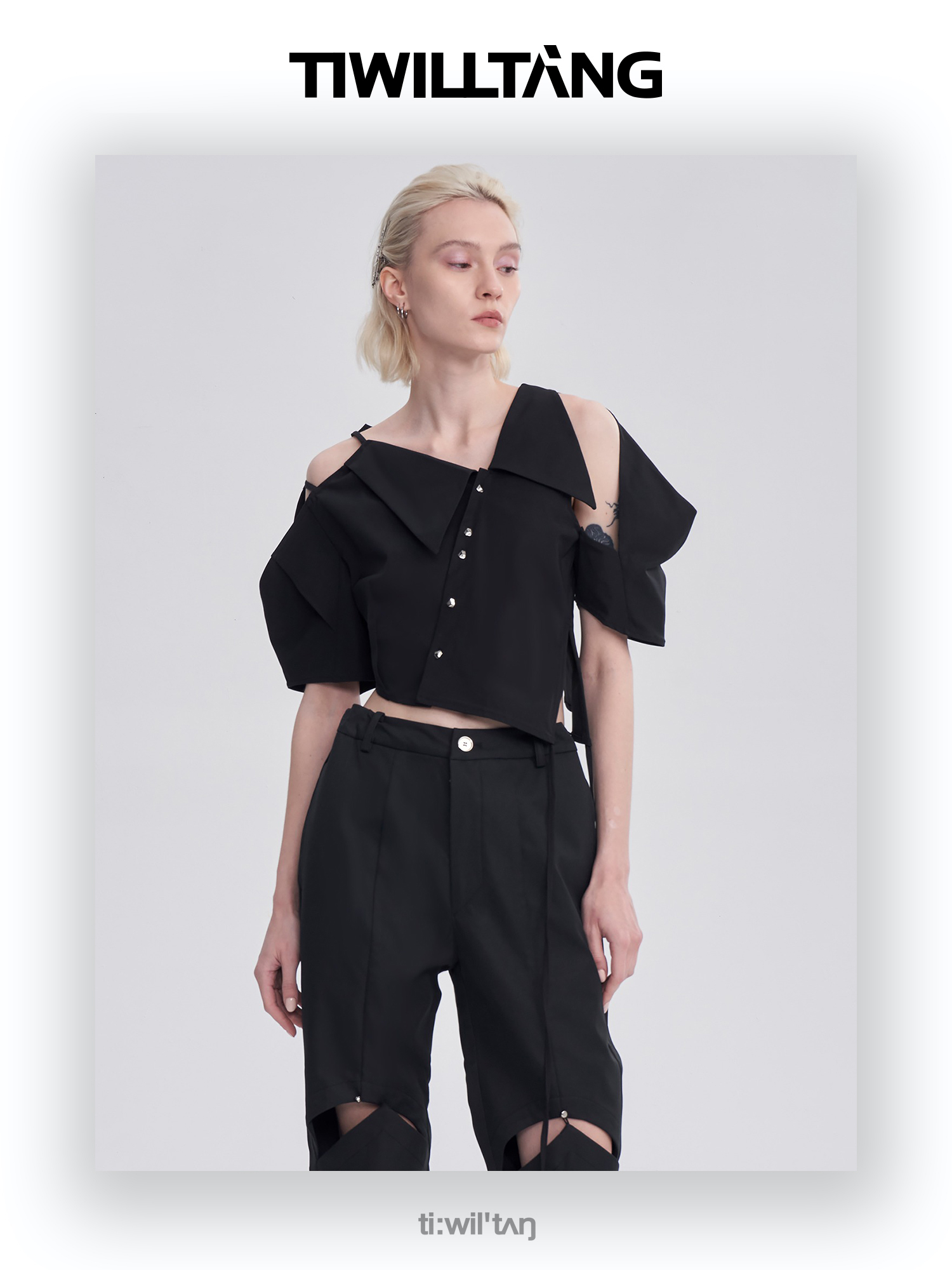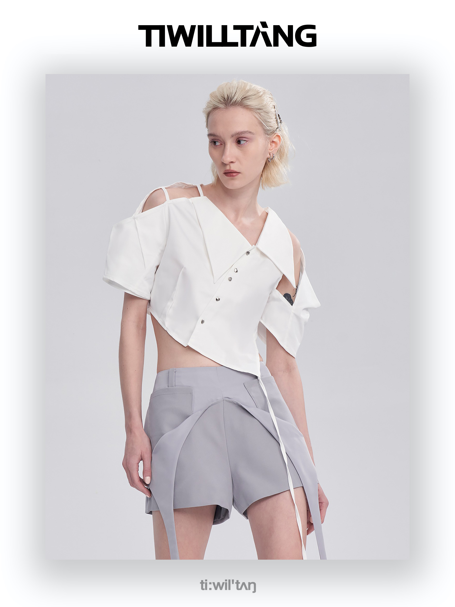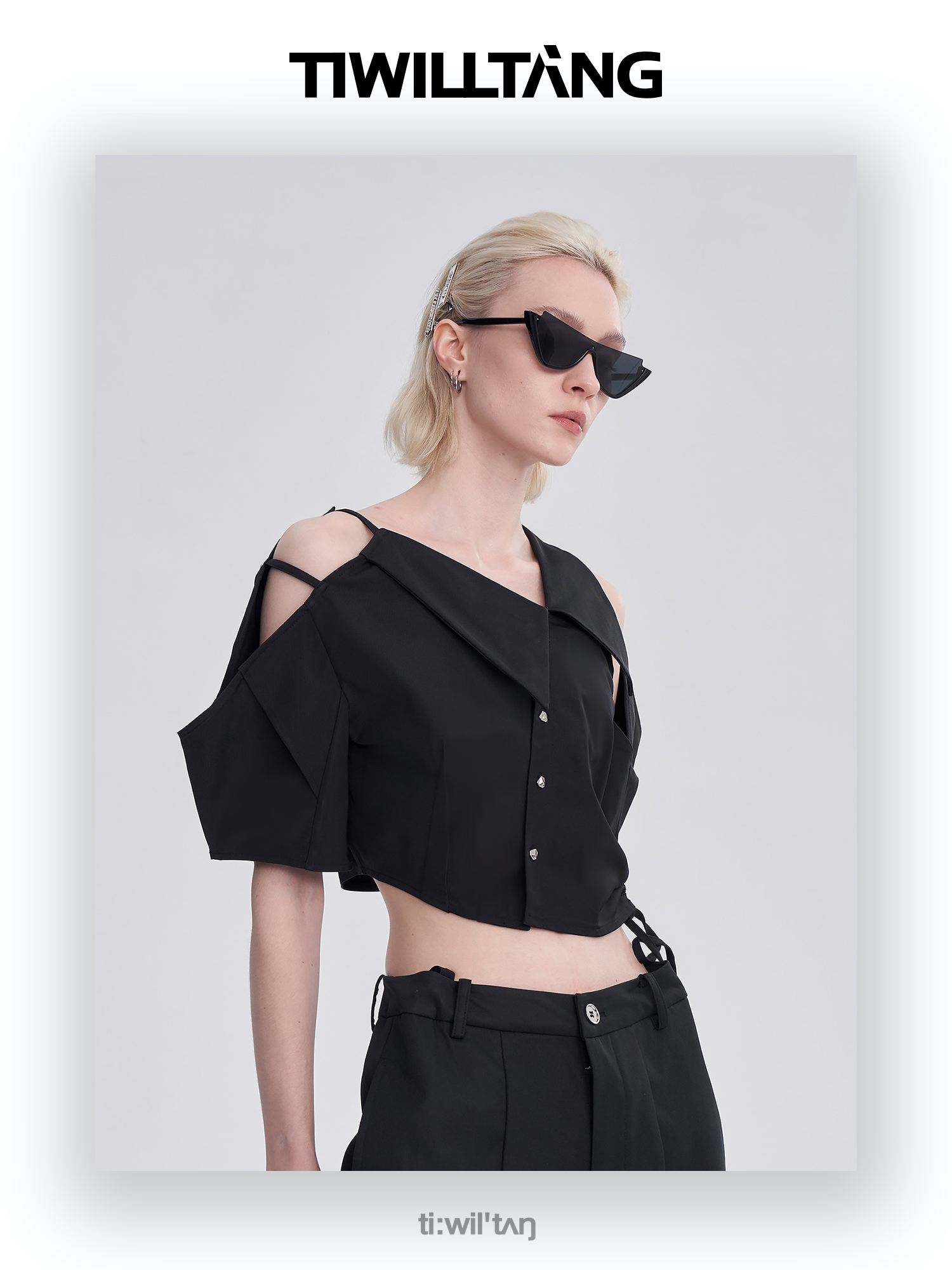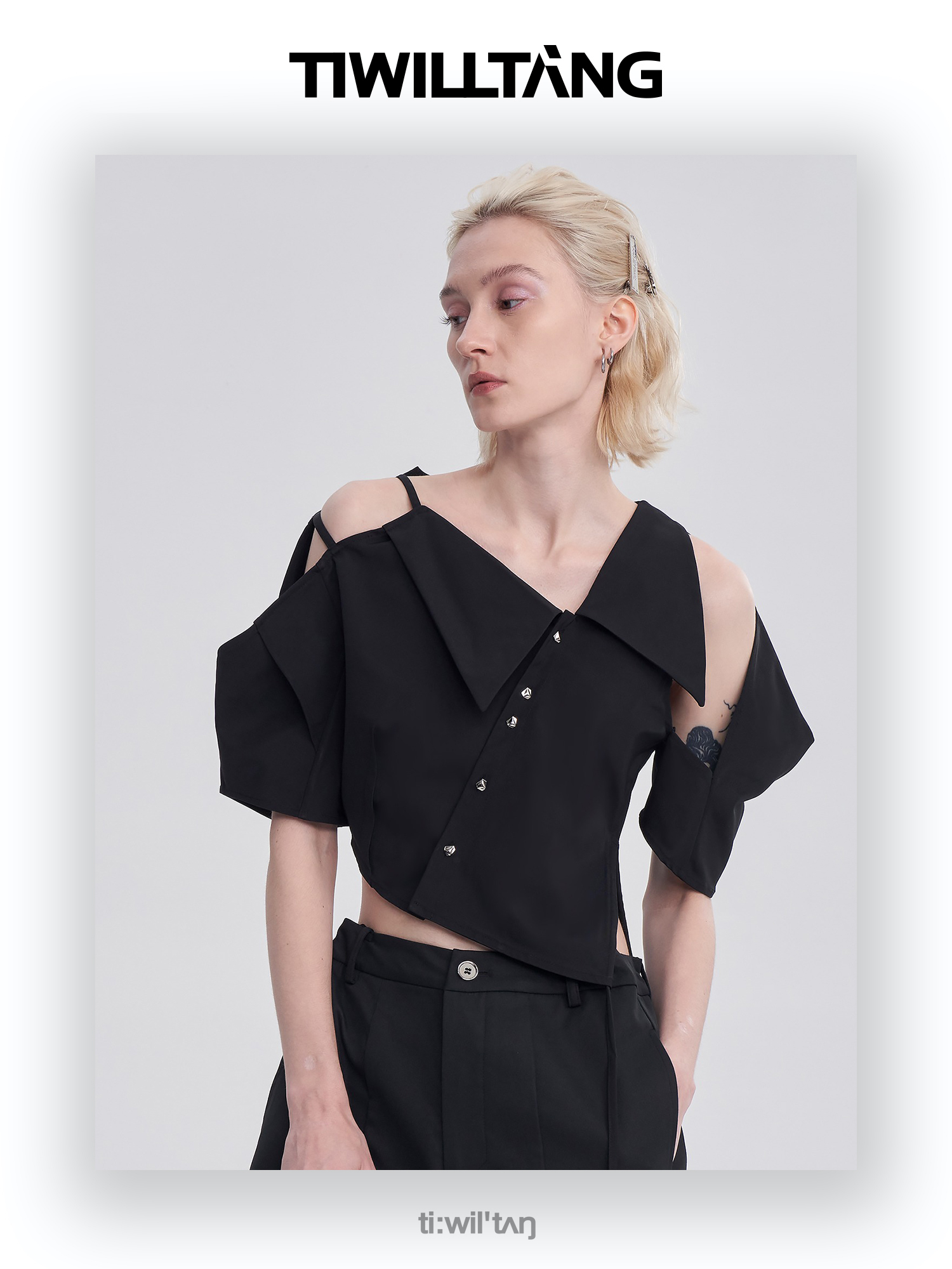 启世录TIWILLTANG“维度转折”多维立体翻折短袖上衣个性设计感女