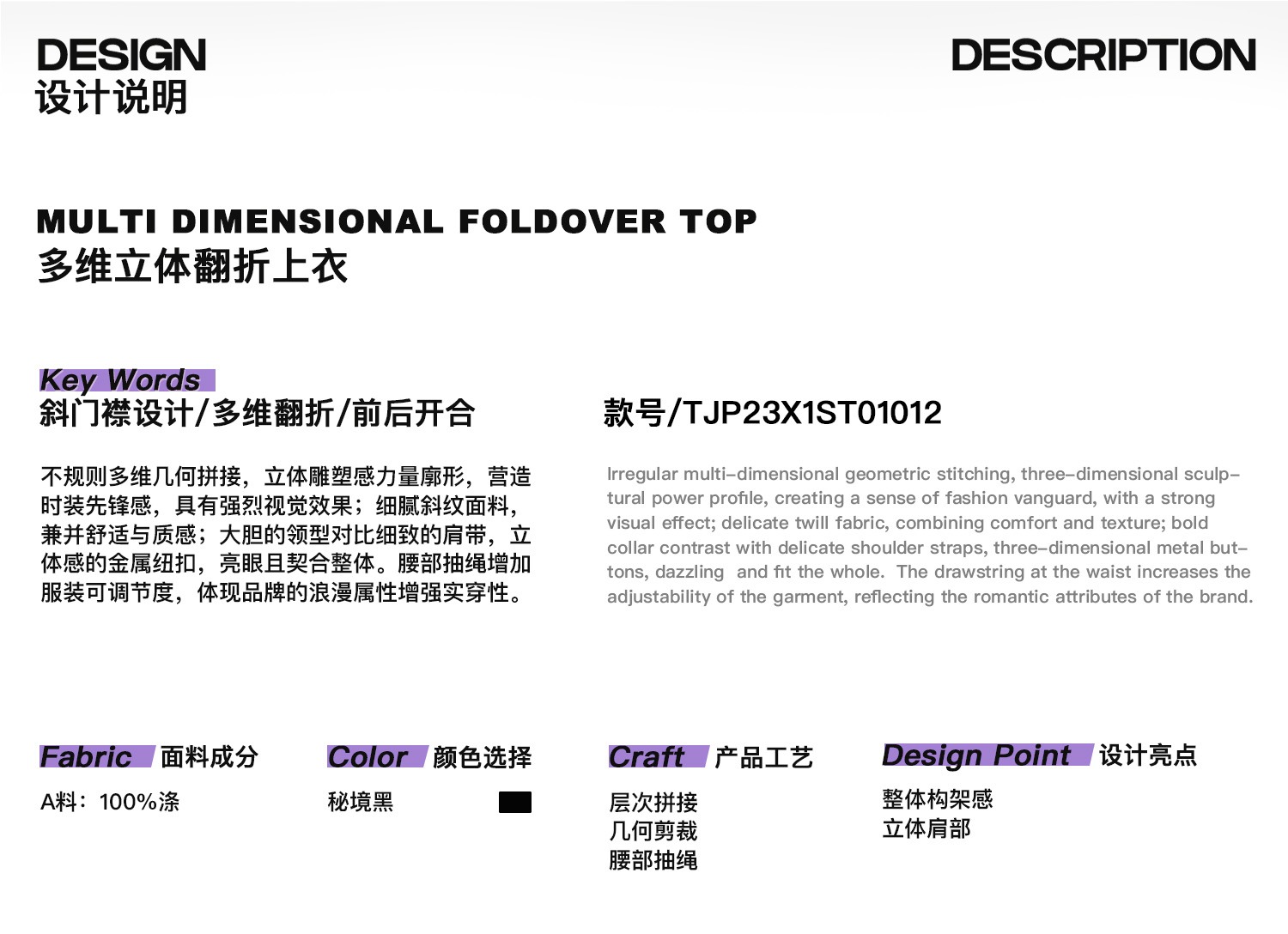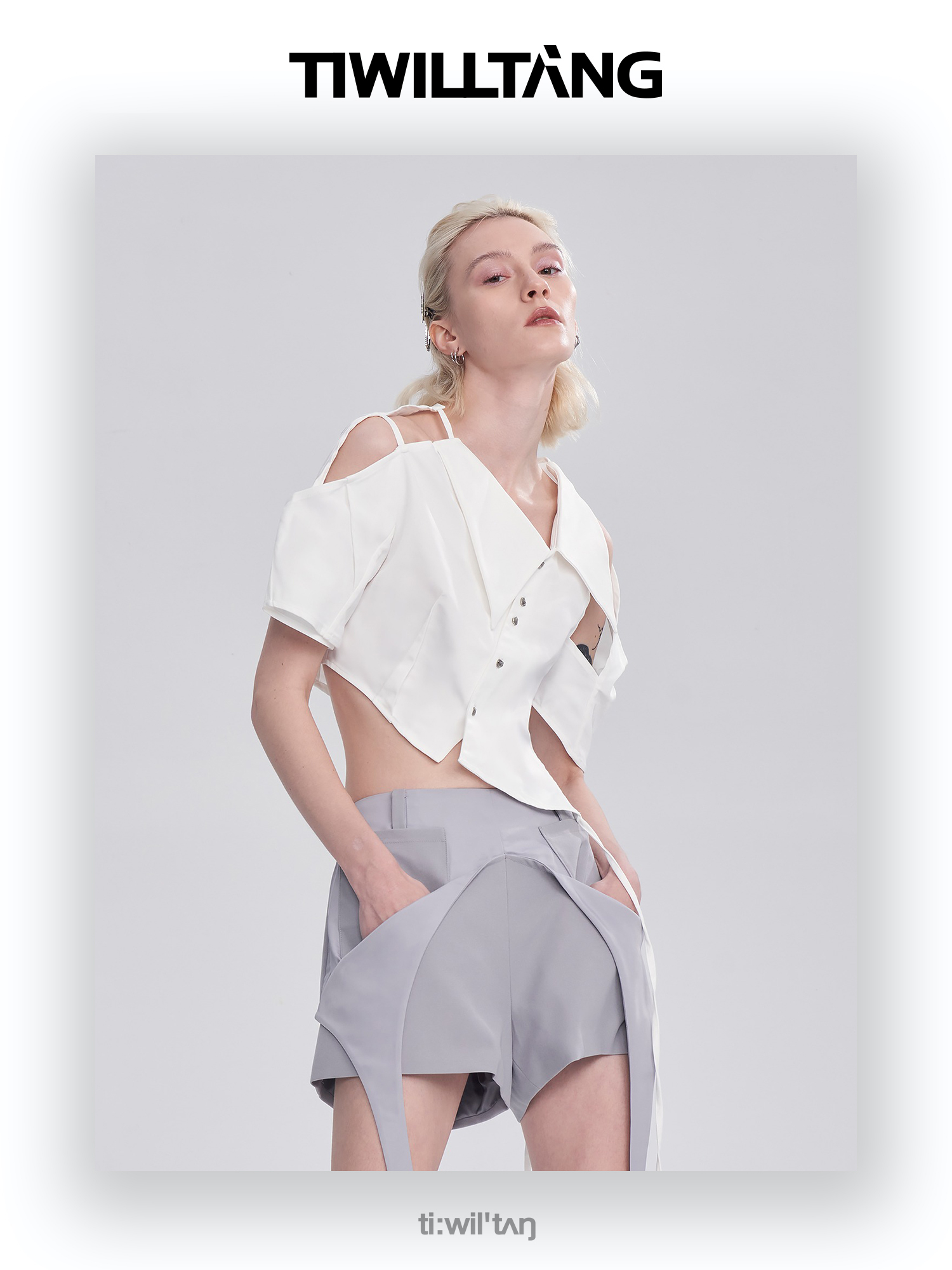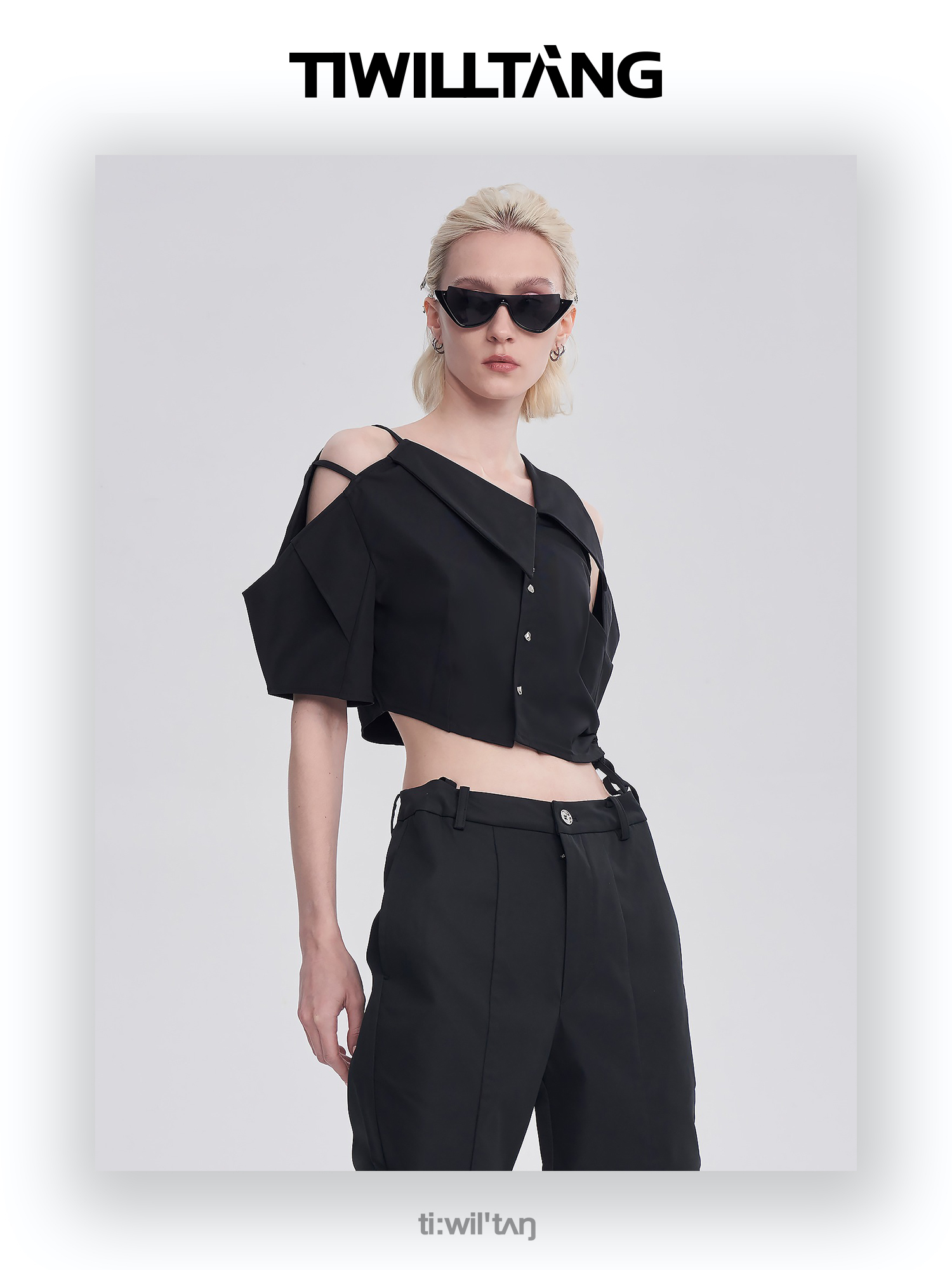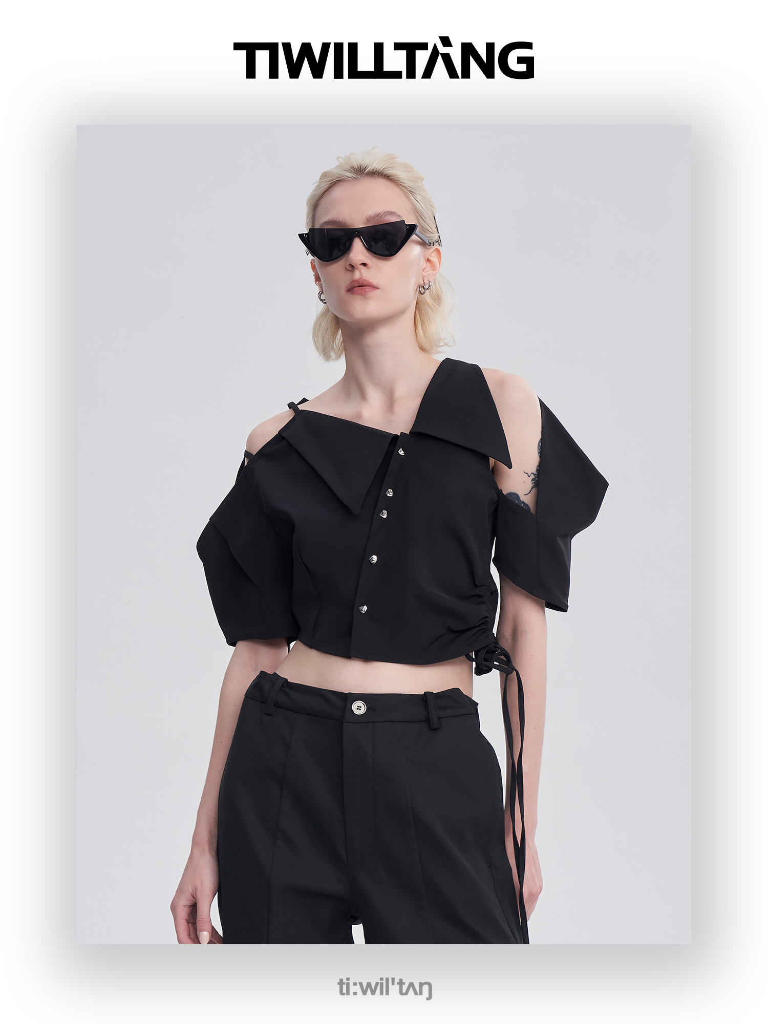 启世录TIWILLTANG“维度转折”多维立体翻折短袖上衣个性设计感女